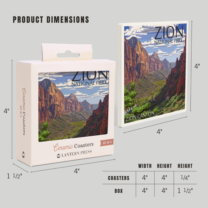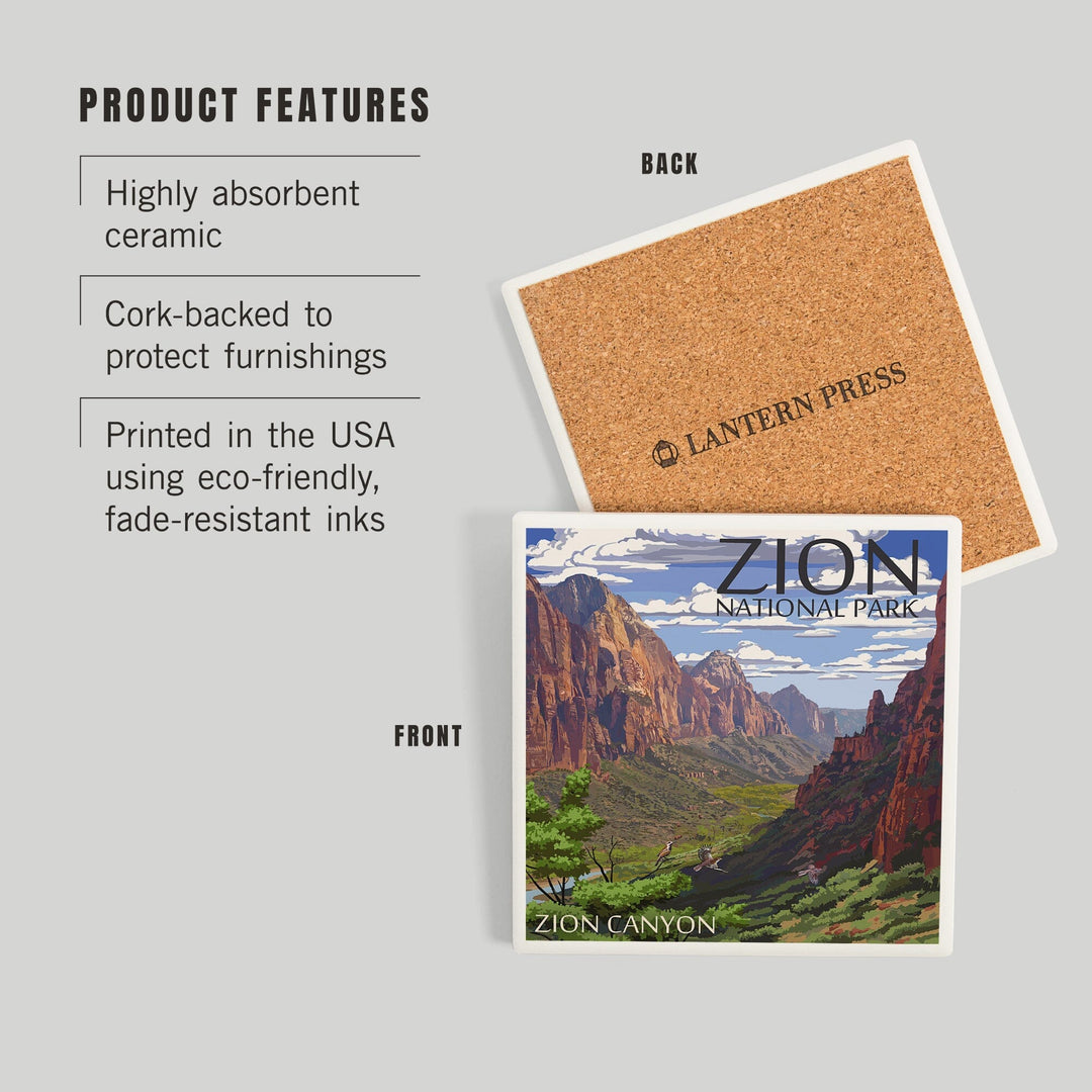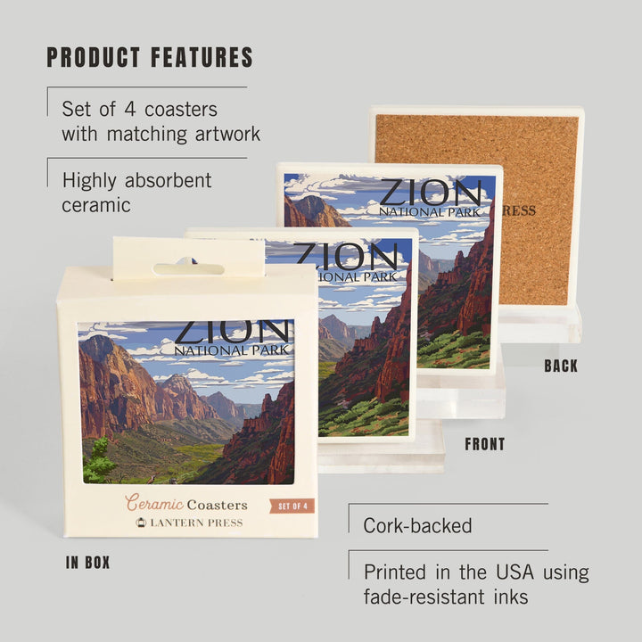 Zion National Park, Utah, Zion Canyon View, Coasters Coasters Lantern Press