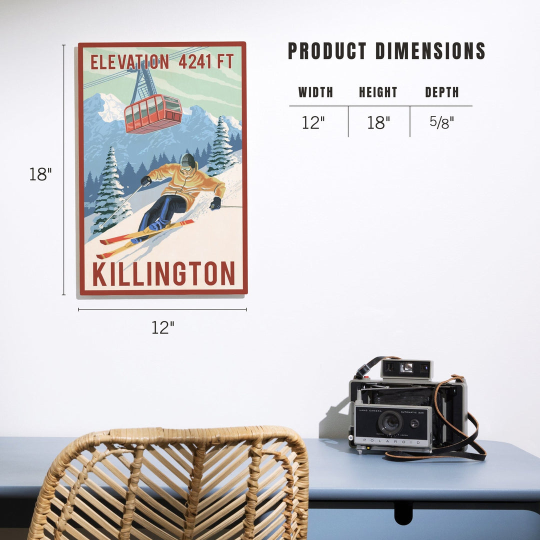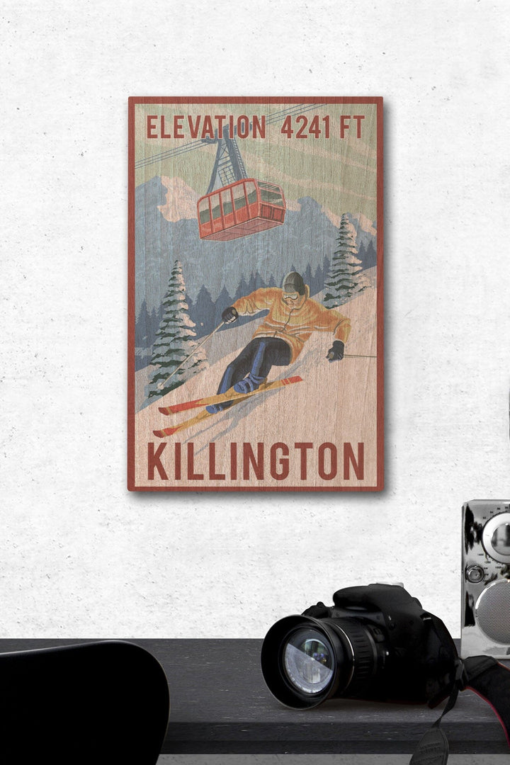 Killington, Vermont, Elevation, Skier & Tram, Lantern Press Artwork, Wood Signs and Postcards