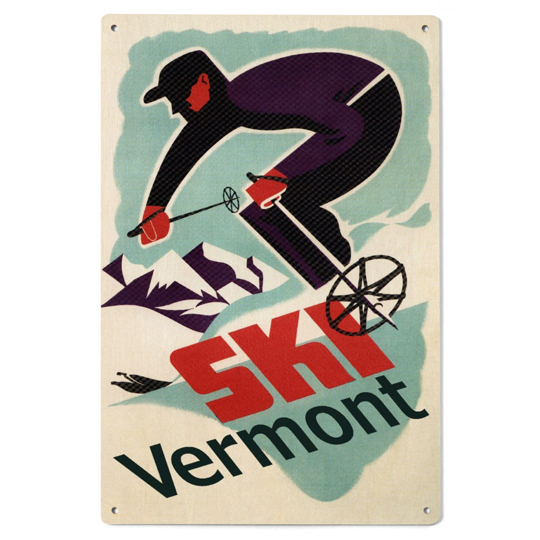 Ski Vermont, Retro Skier, Lantern Press Artwork, Wood Signs and Postcards