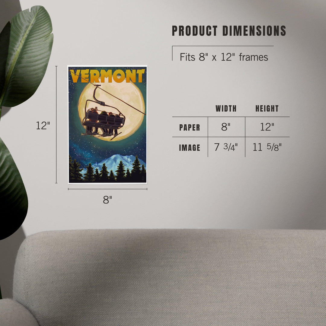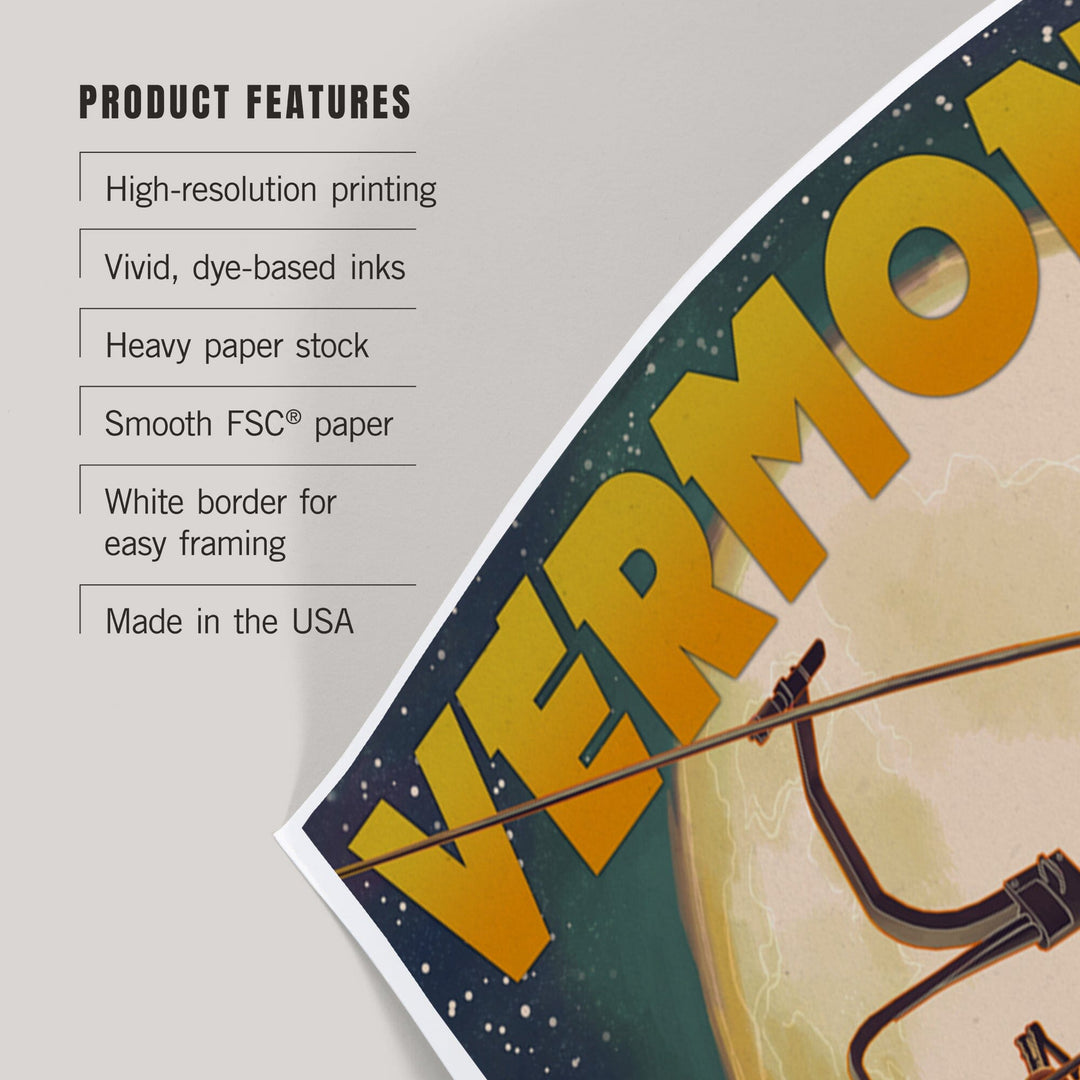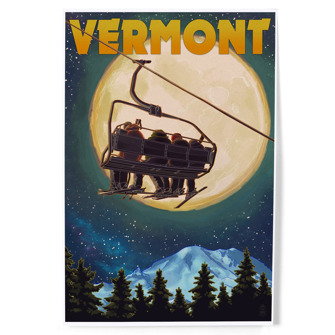 Vermont, Ski Lift and Full Moon, Art & Giclee Prints Art Lantern Press