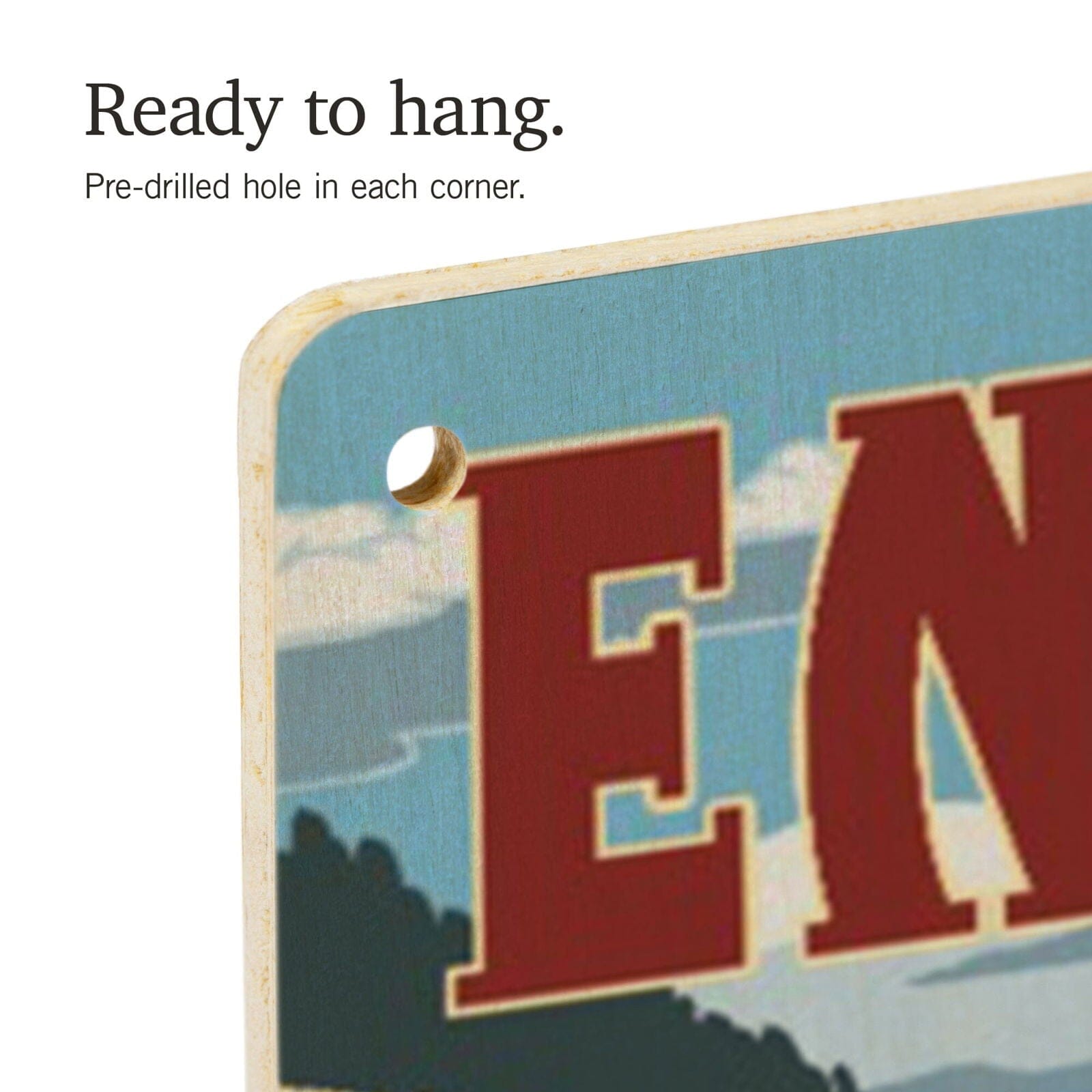 • Hole in each corner, ready to hang