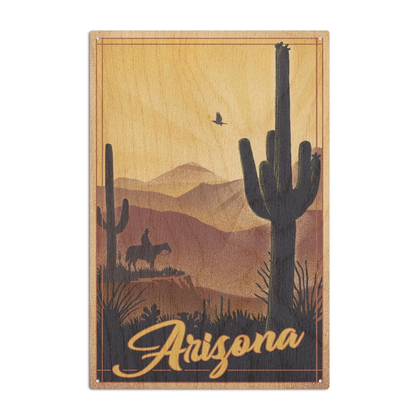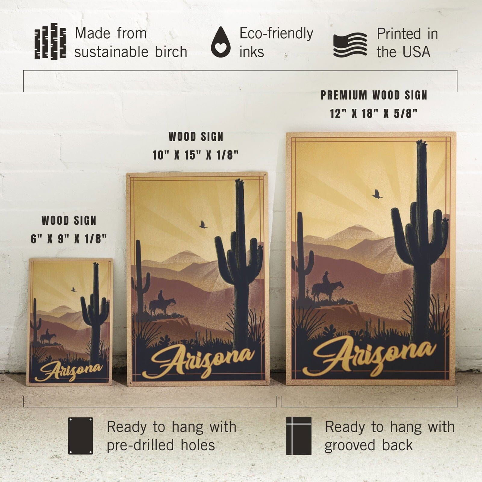 Arizona, Desert Scene, Lithograph, Lantern Press Artwork, Wood Signs and Postcards Wood Lantern Press