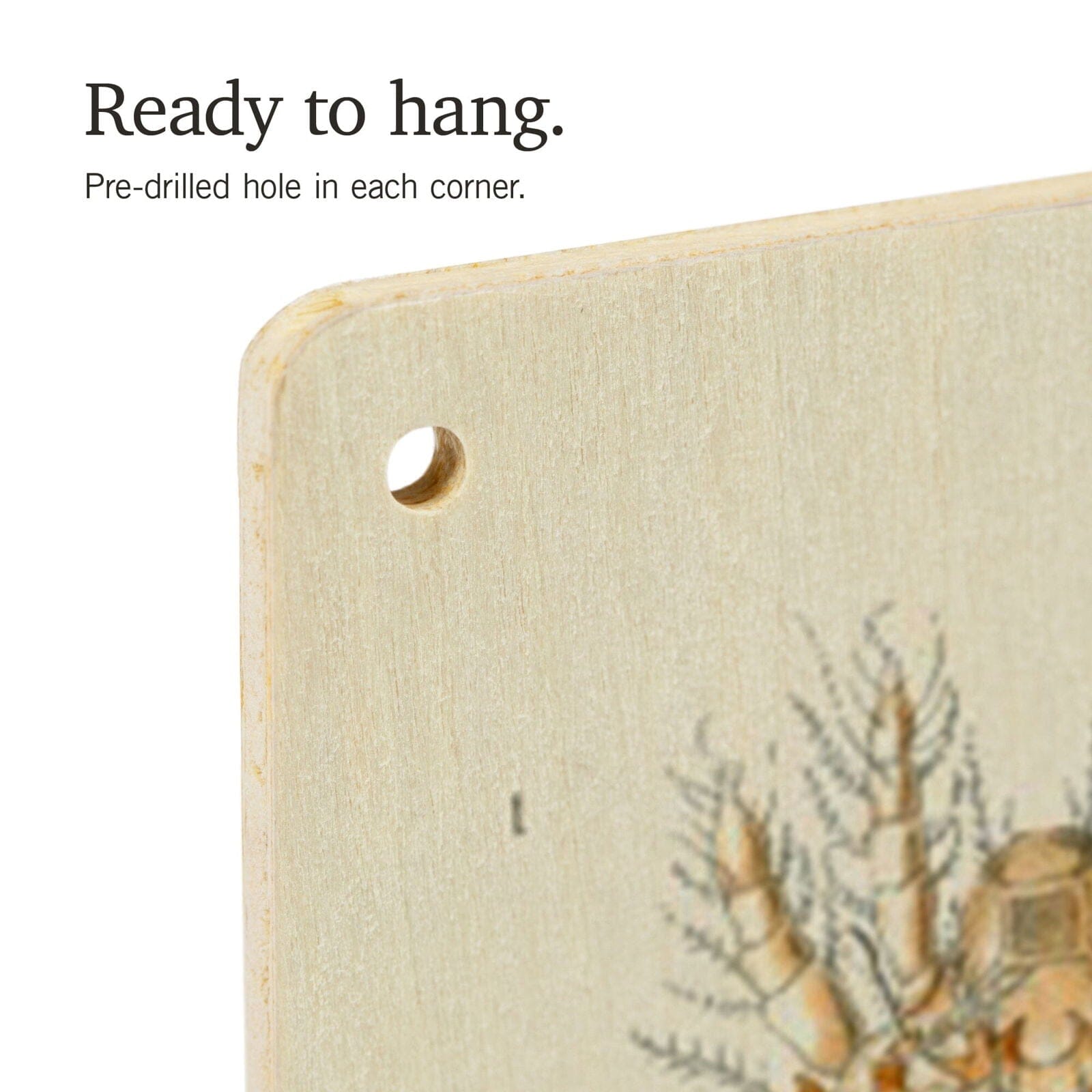 • Hole in each corner, ready to hang
