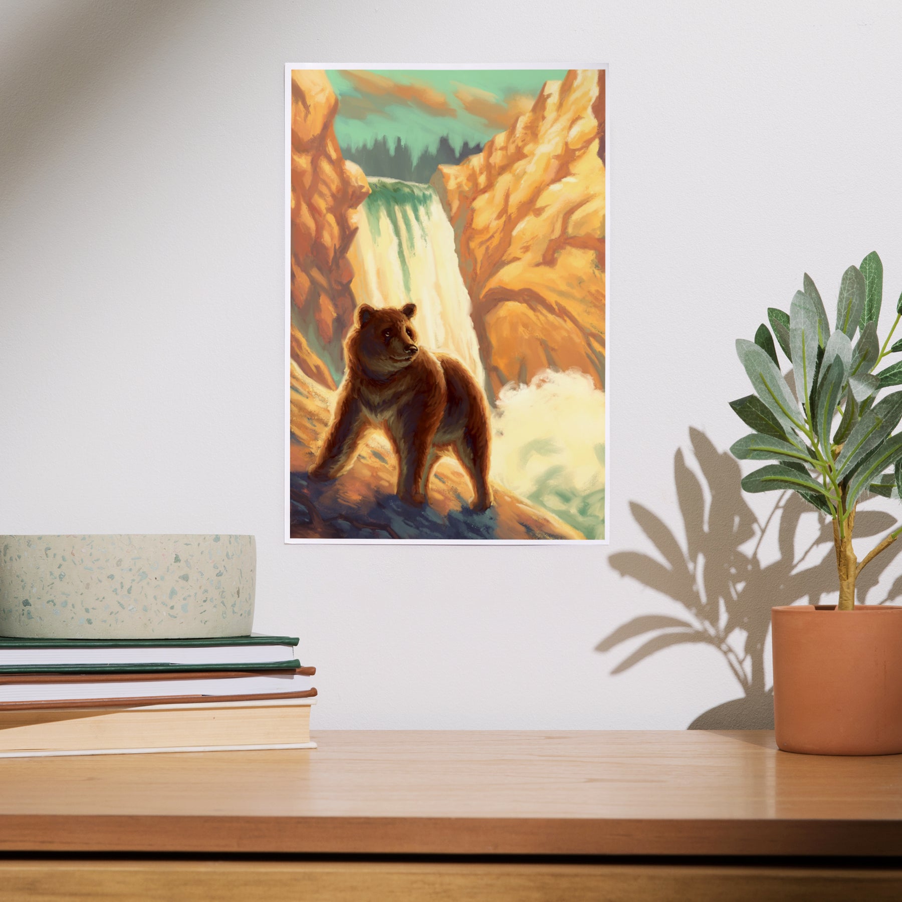 Bear, Falls, Oil Painting, Art & Giclee Prints Art Lantern Press