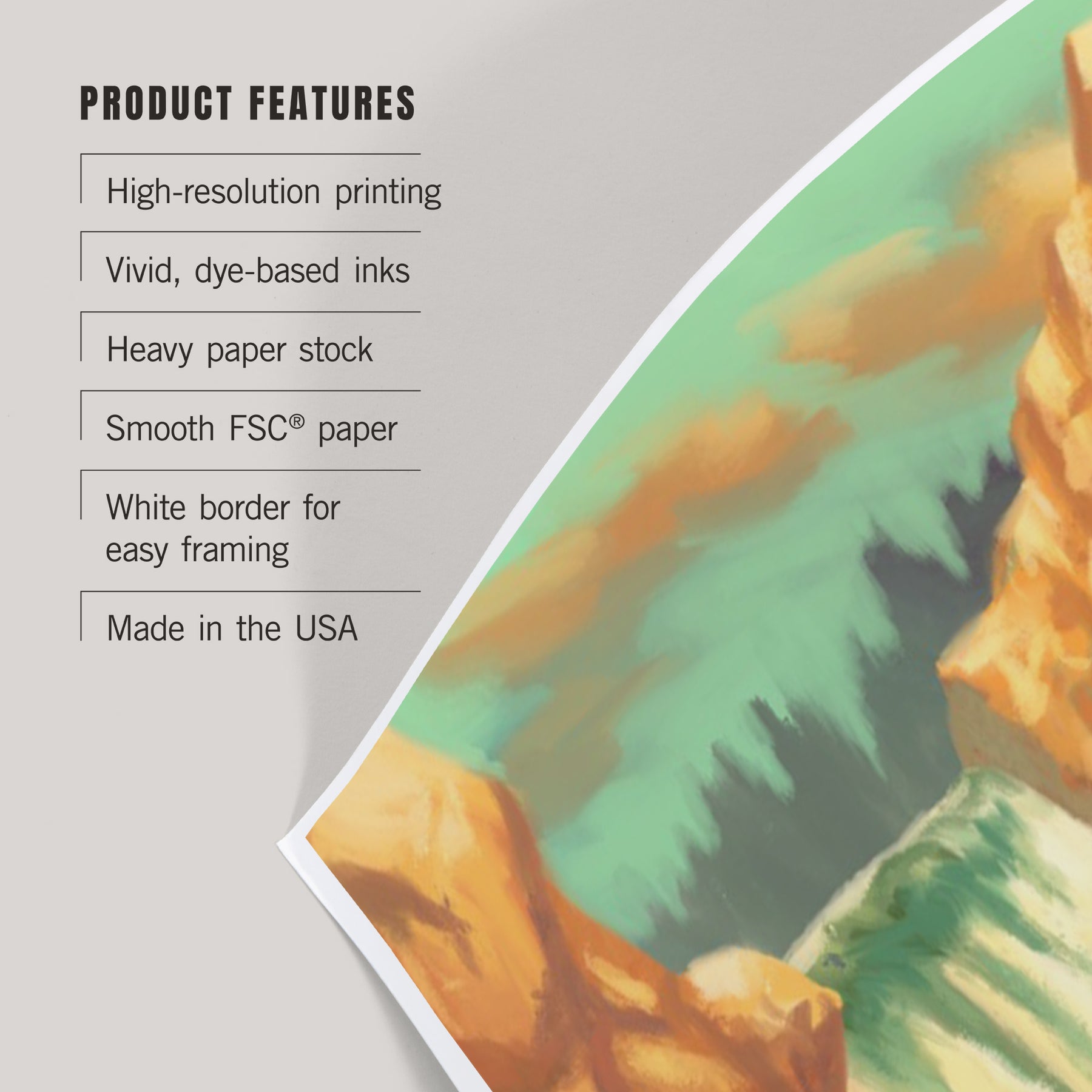 • 11x14 Matted Print: Image size measures 7.5 by 10.5 inches with an added 3.5 inch beveled edge mat board. Total size of art print measures 11 by 14 inches