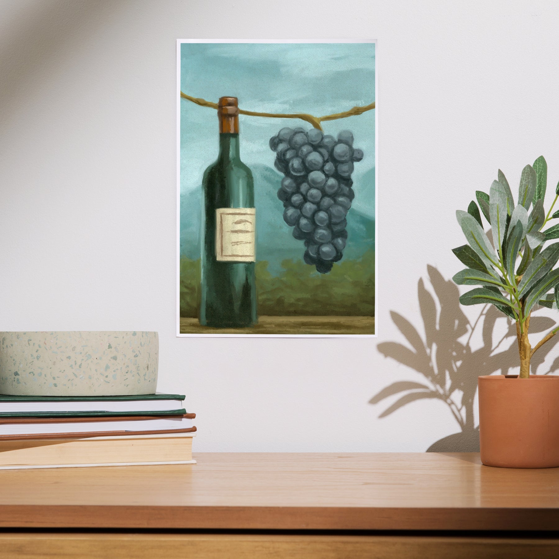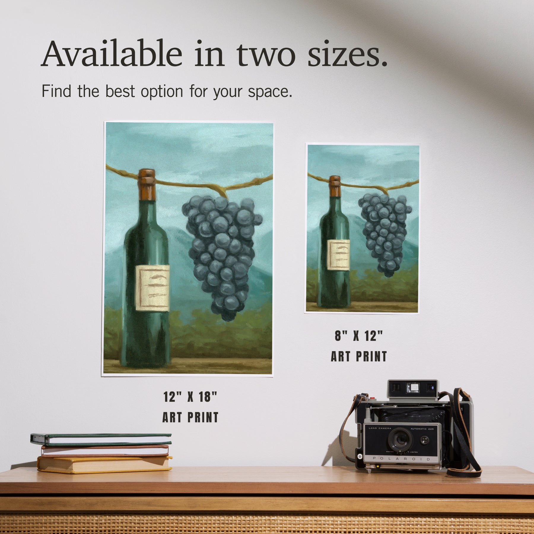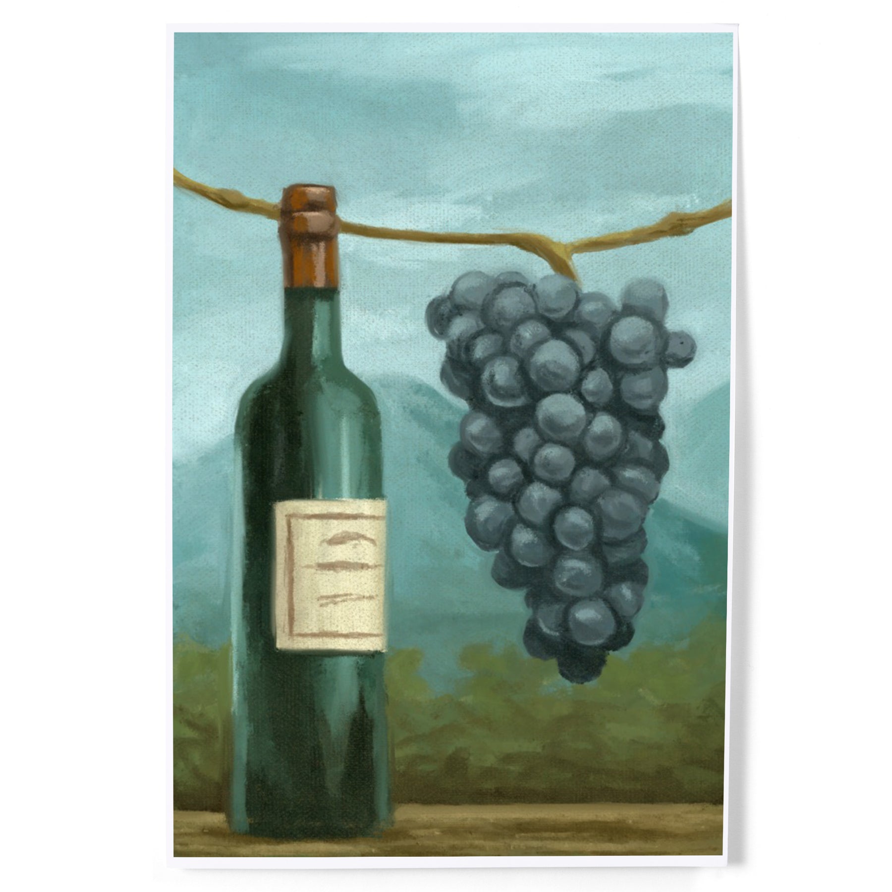 Blue Grapes and Wine Bottle, Oil Painting, Art & Giclee Prints Art Lantern Press