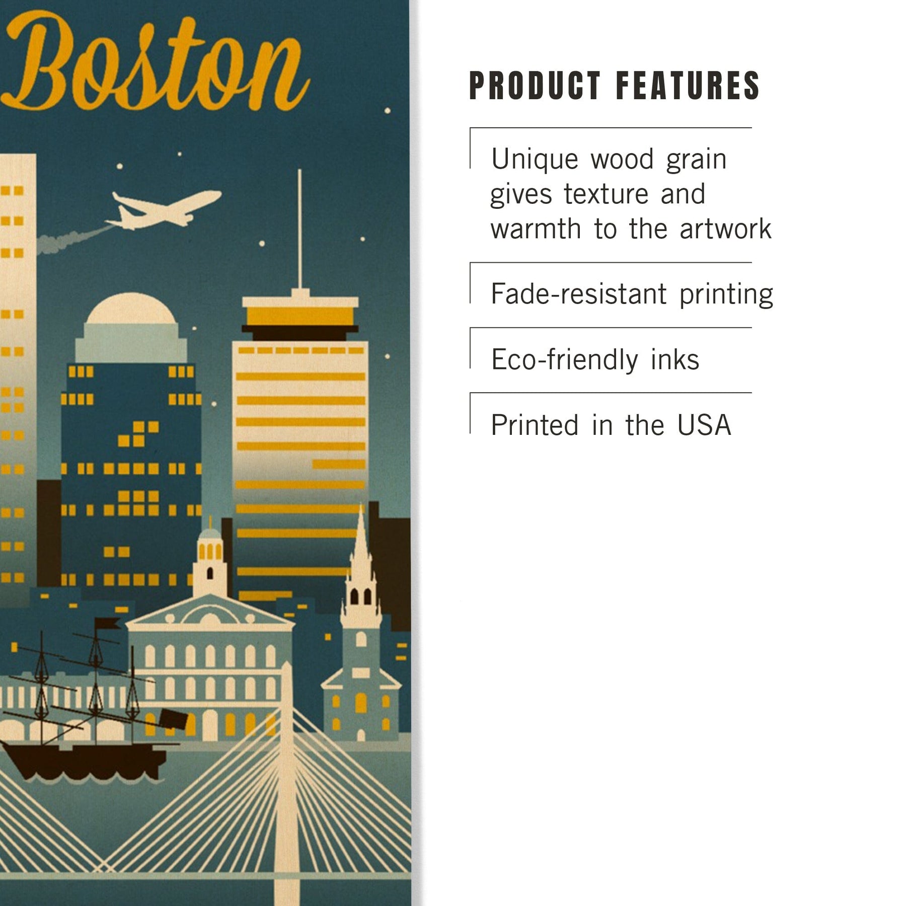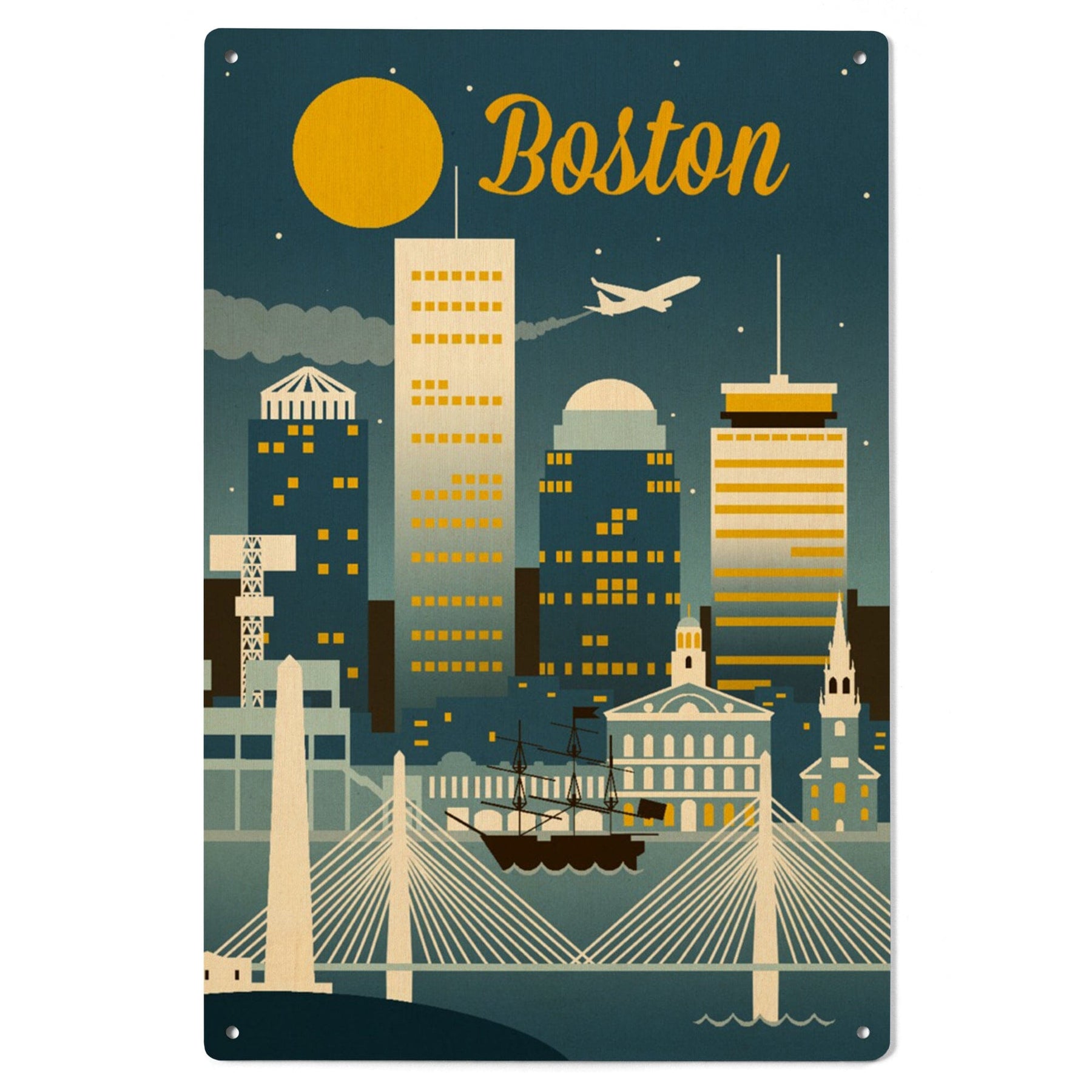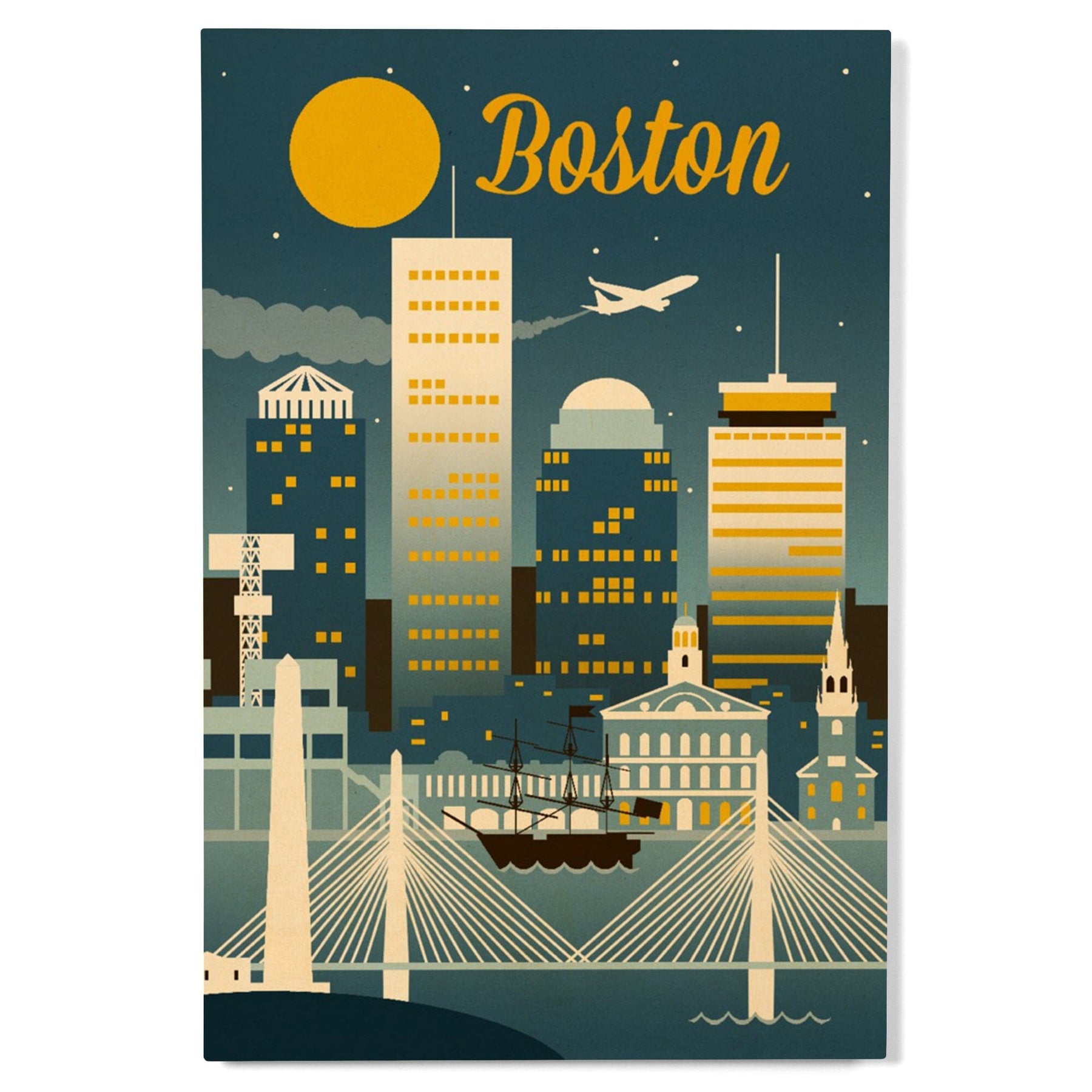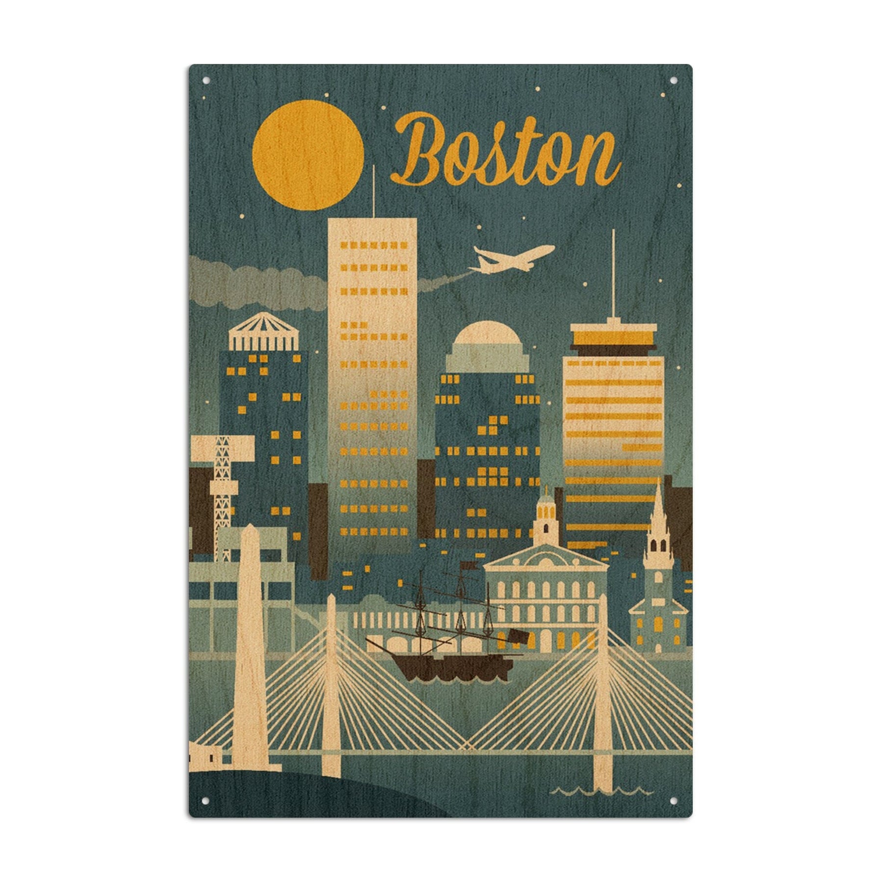 Boston, Massachusetts, Retro Skyline Classic, Lantern Press Artwork, Wood Signs and Postcards