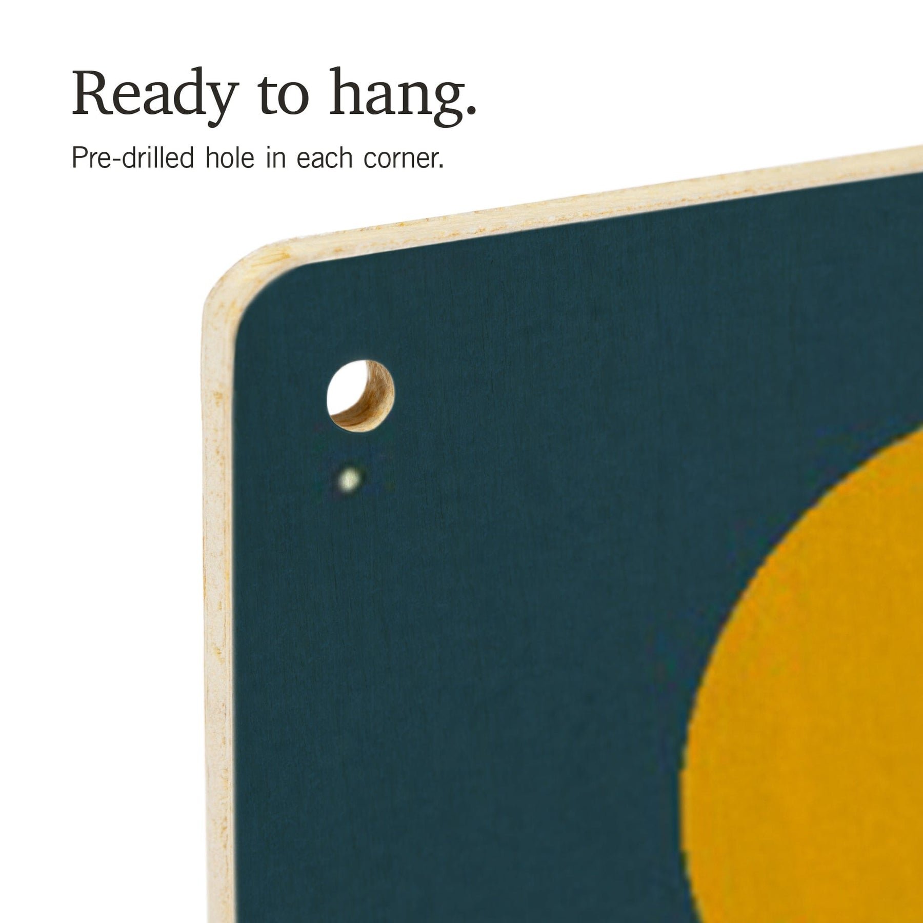 • Hole in each corner, ready to hang