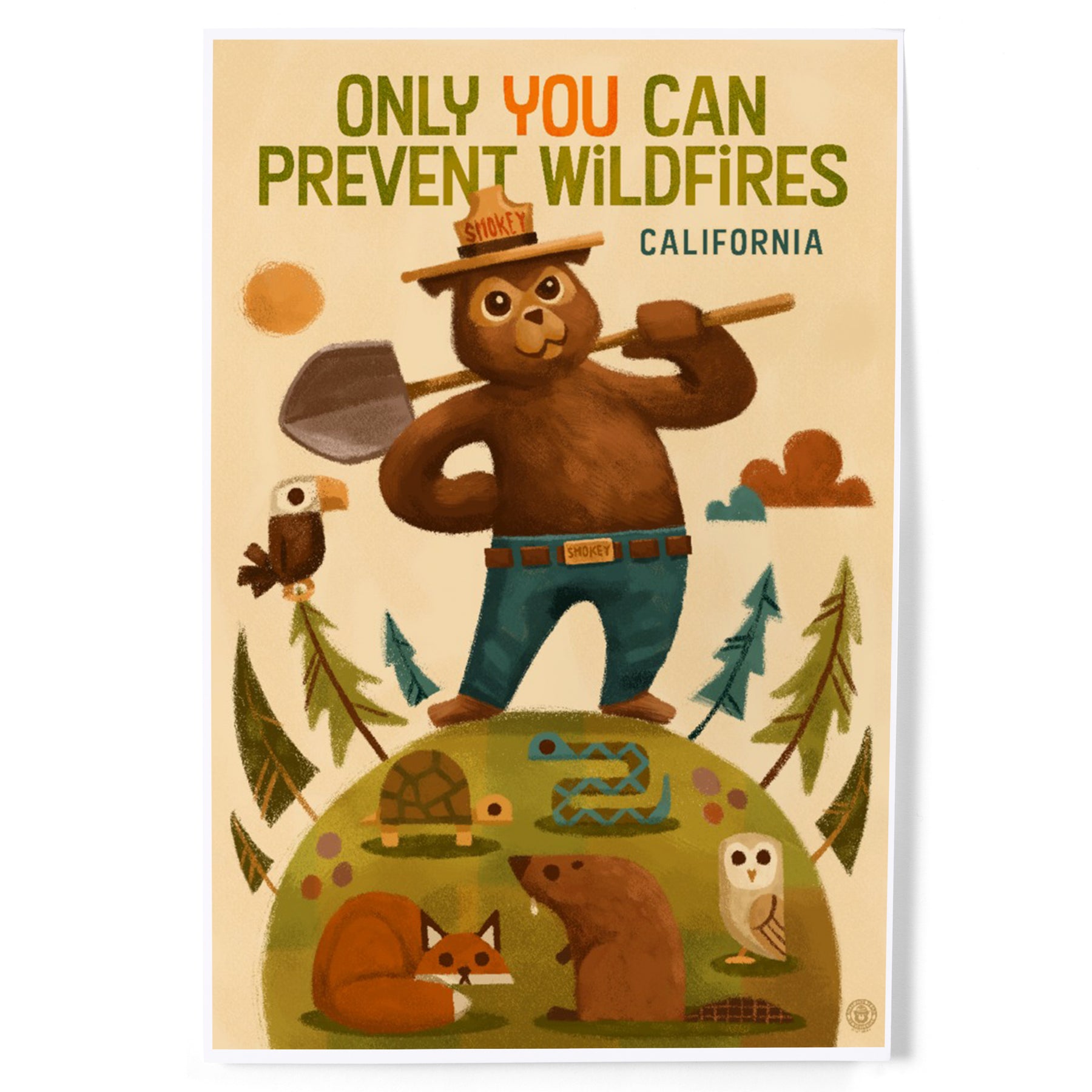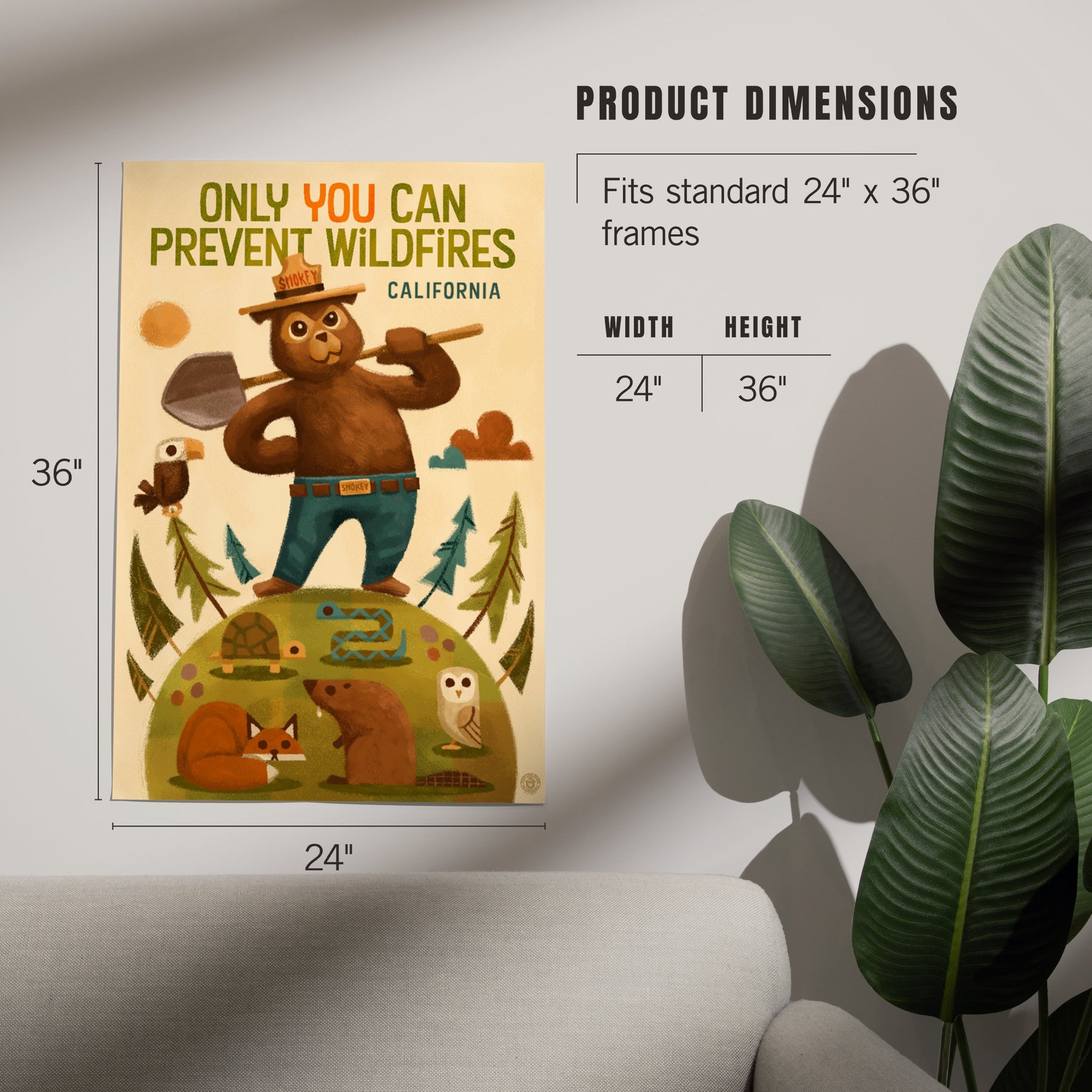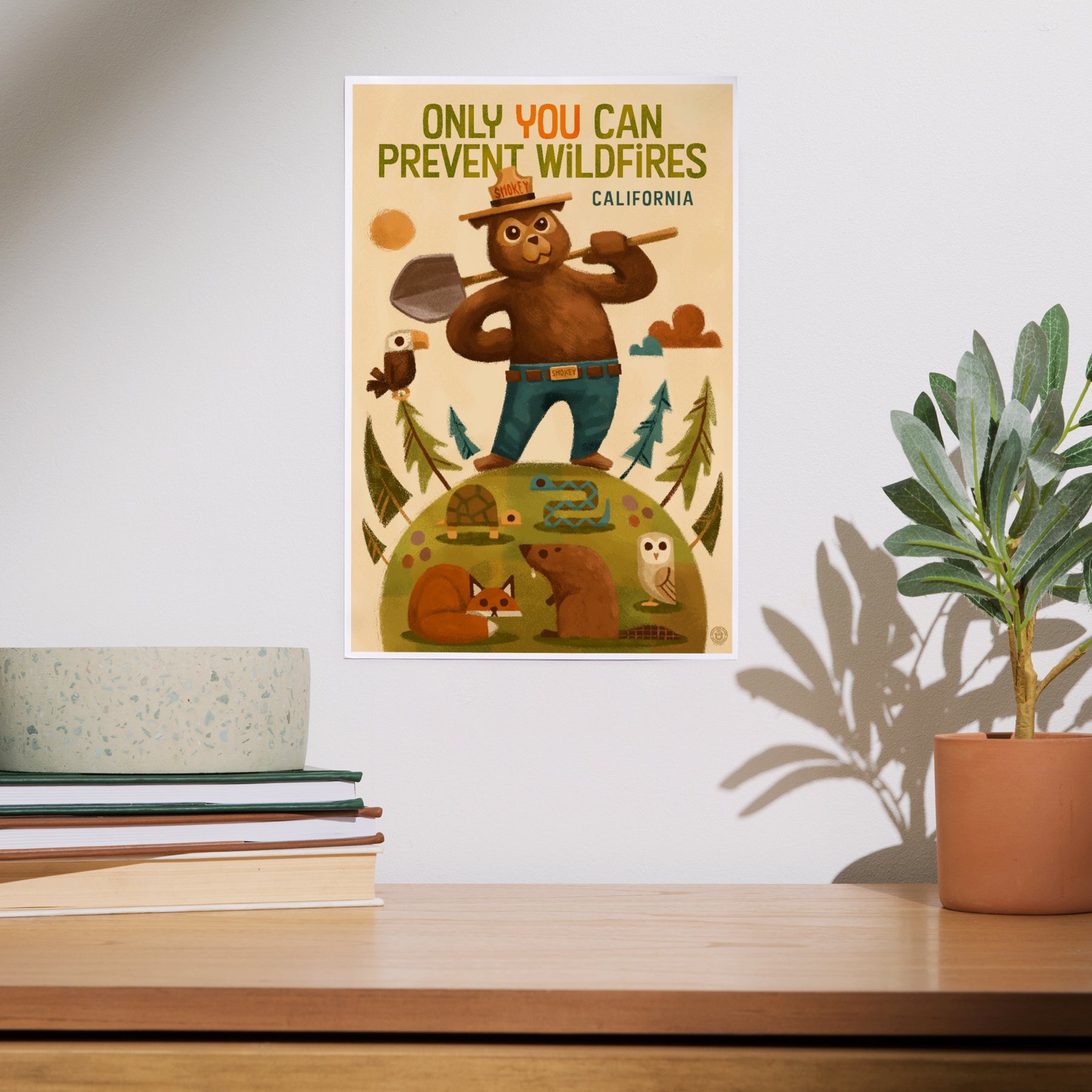 California, Smokey Bear with Shovel, Only You can prevent Wildfires, Art & Giclee Prints Art Lantern Press