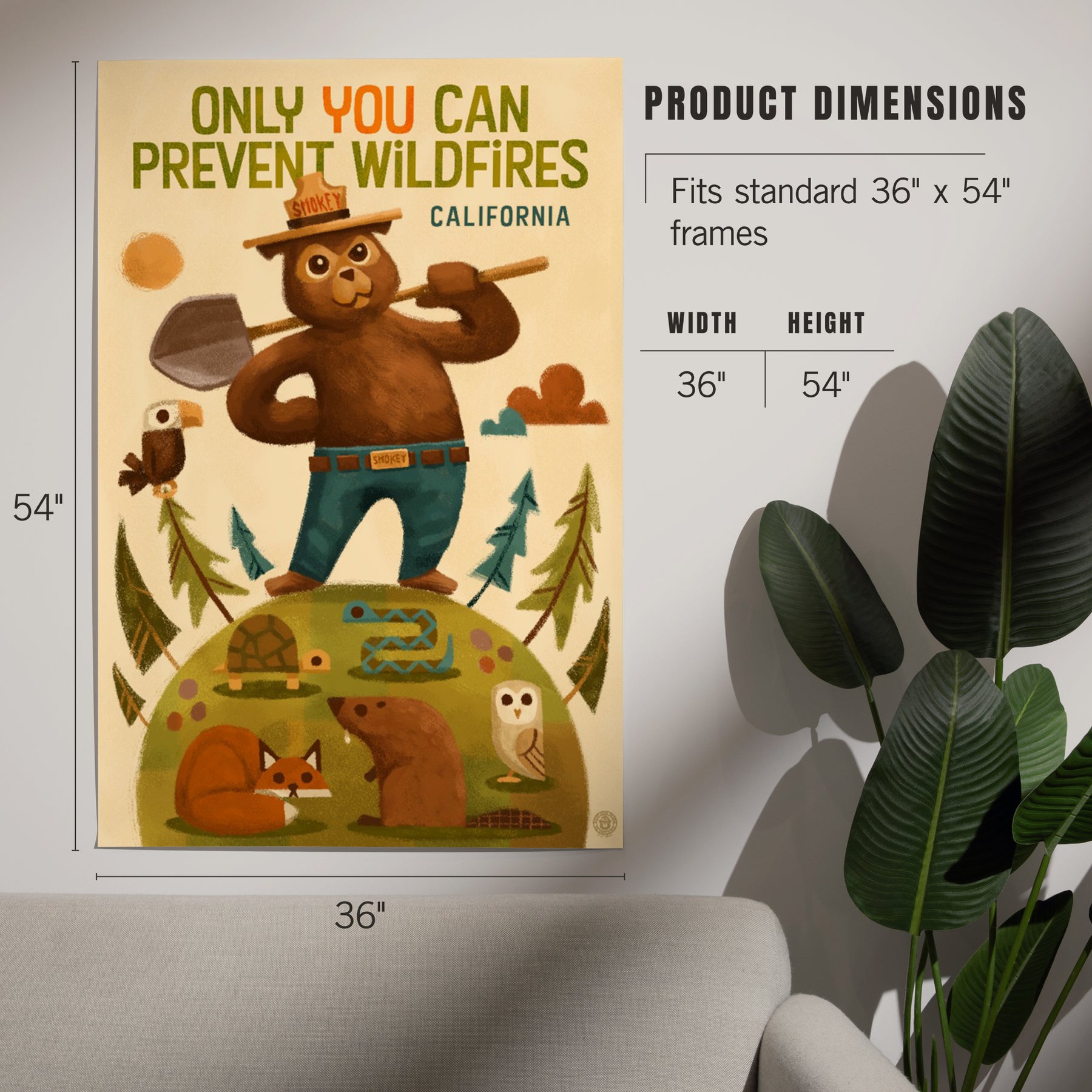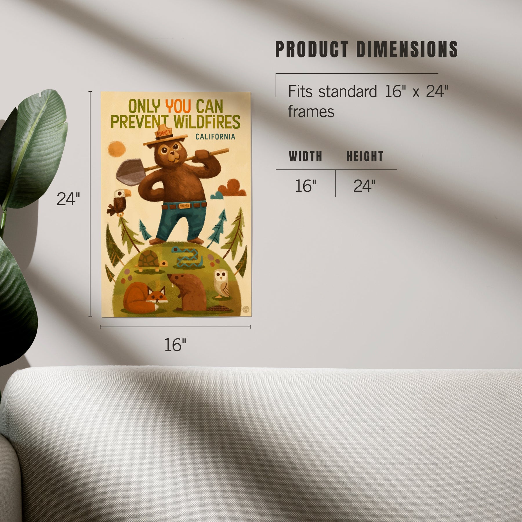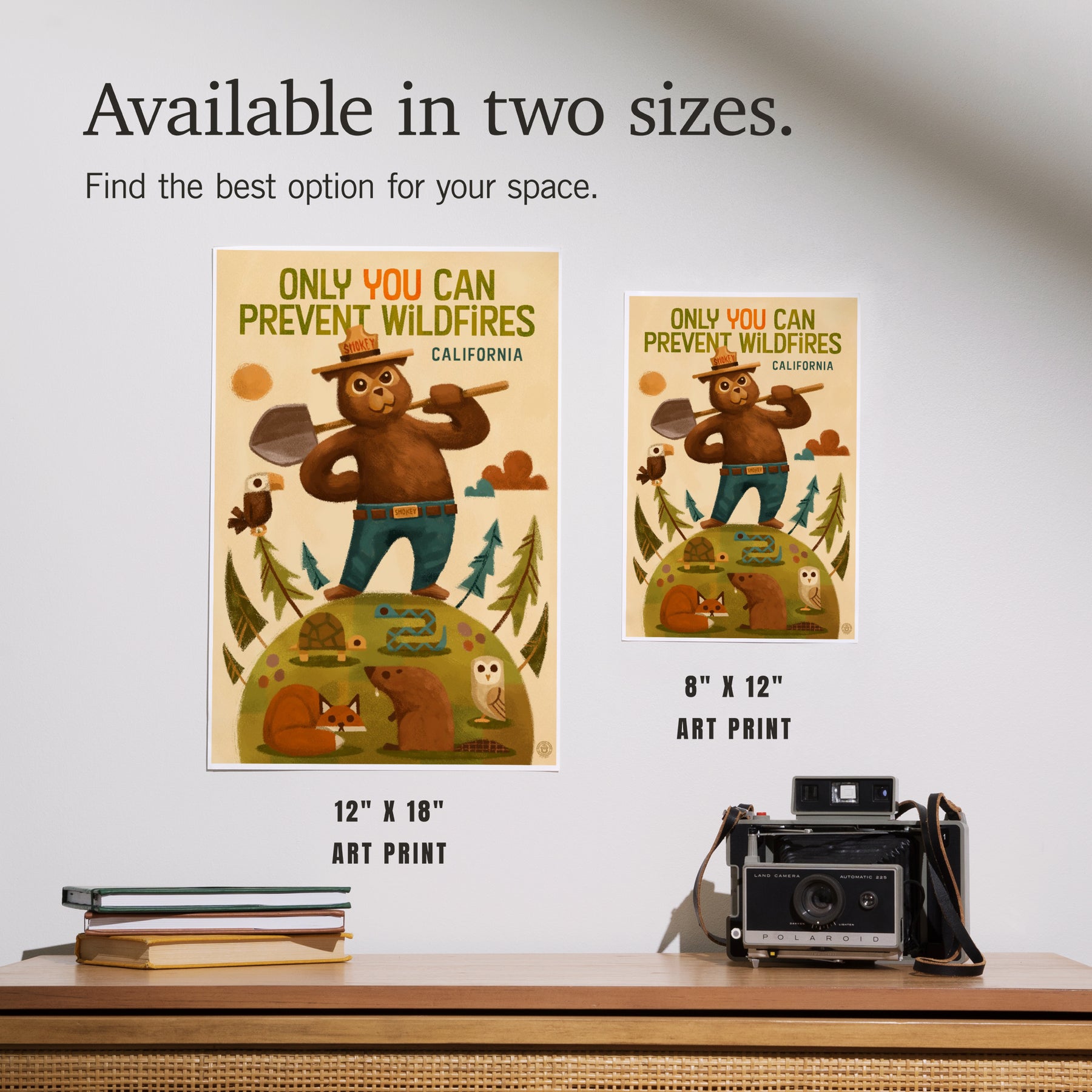 California, Smokey Bear with Shovel, Only You can prevent Wildfires, Art & Giclee Prints Art Lantern Press