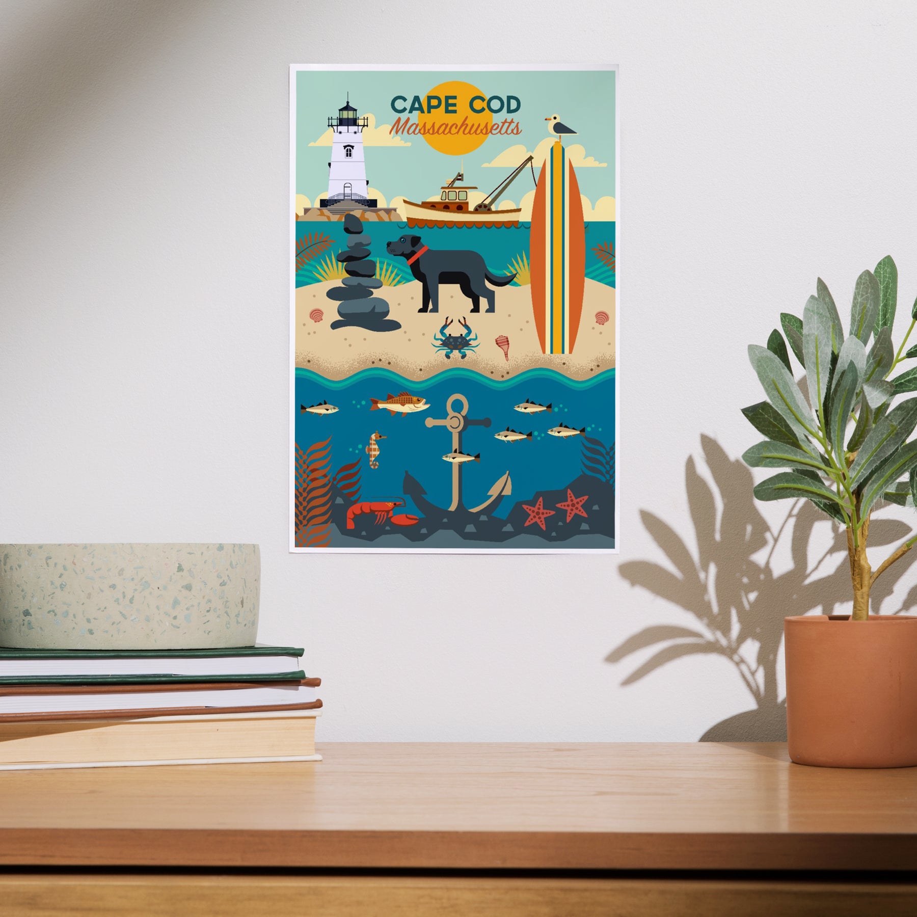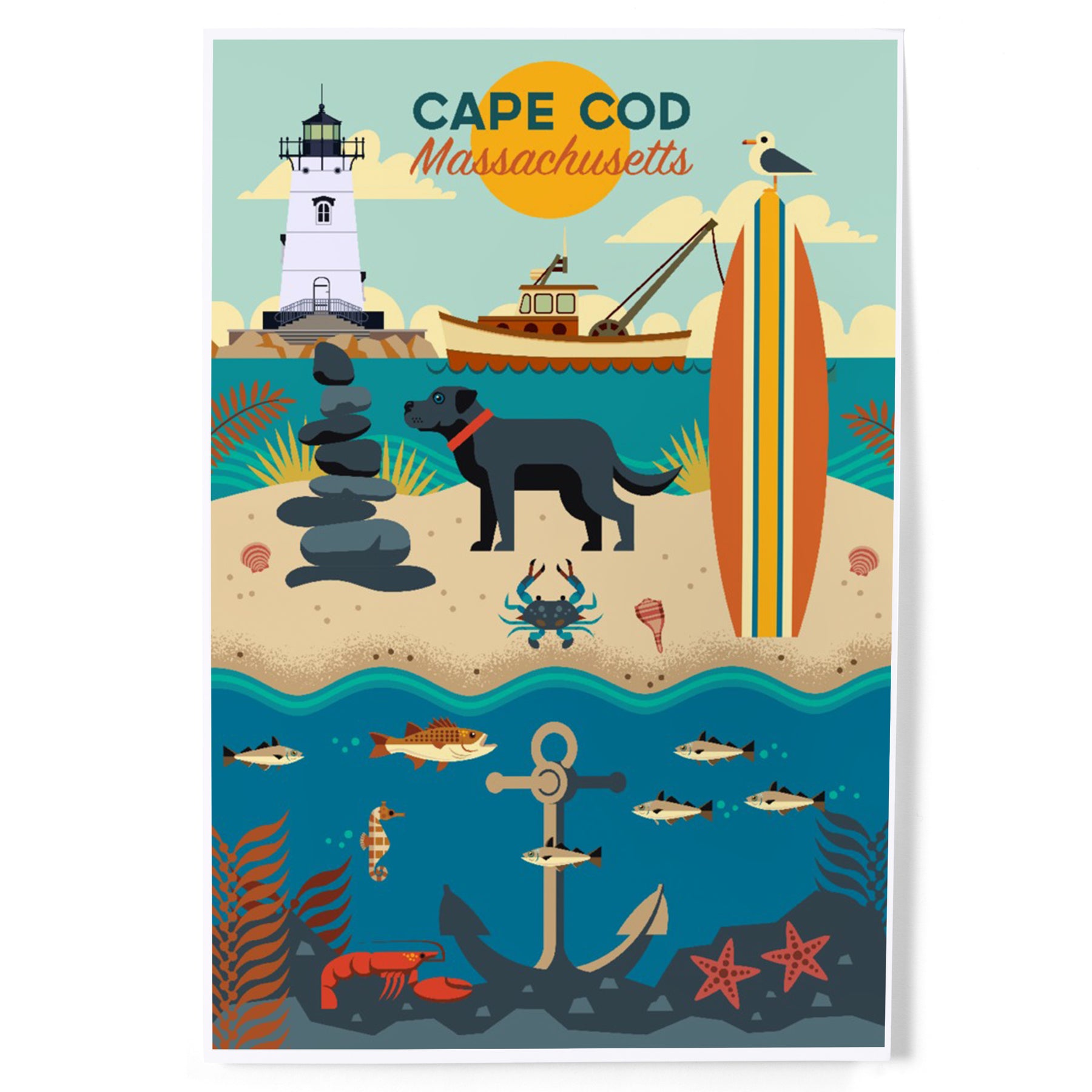Cape Cod, Massachusetts, Geometric, Beach and Lighthouse, Art & Giclee Prints