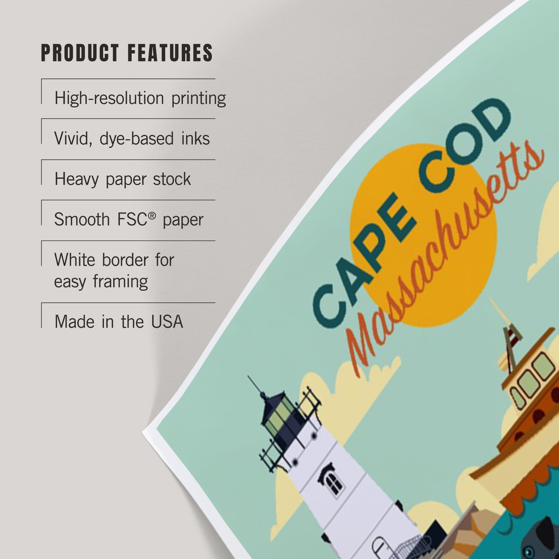 Cape Cod, Massachusetts, Geometric, Beach and Lighthouse, Art & Giclee Prints Art Lantern Press