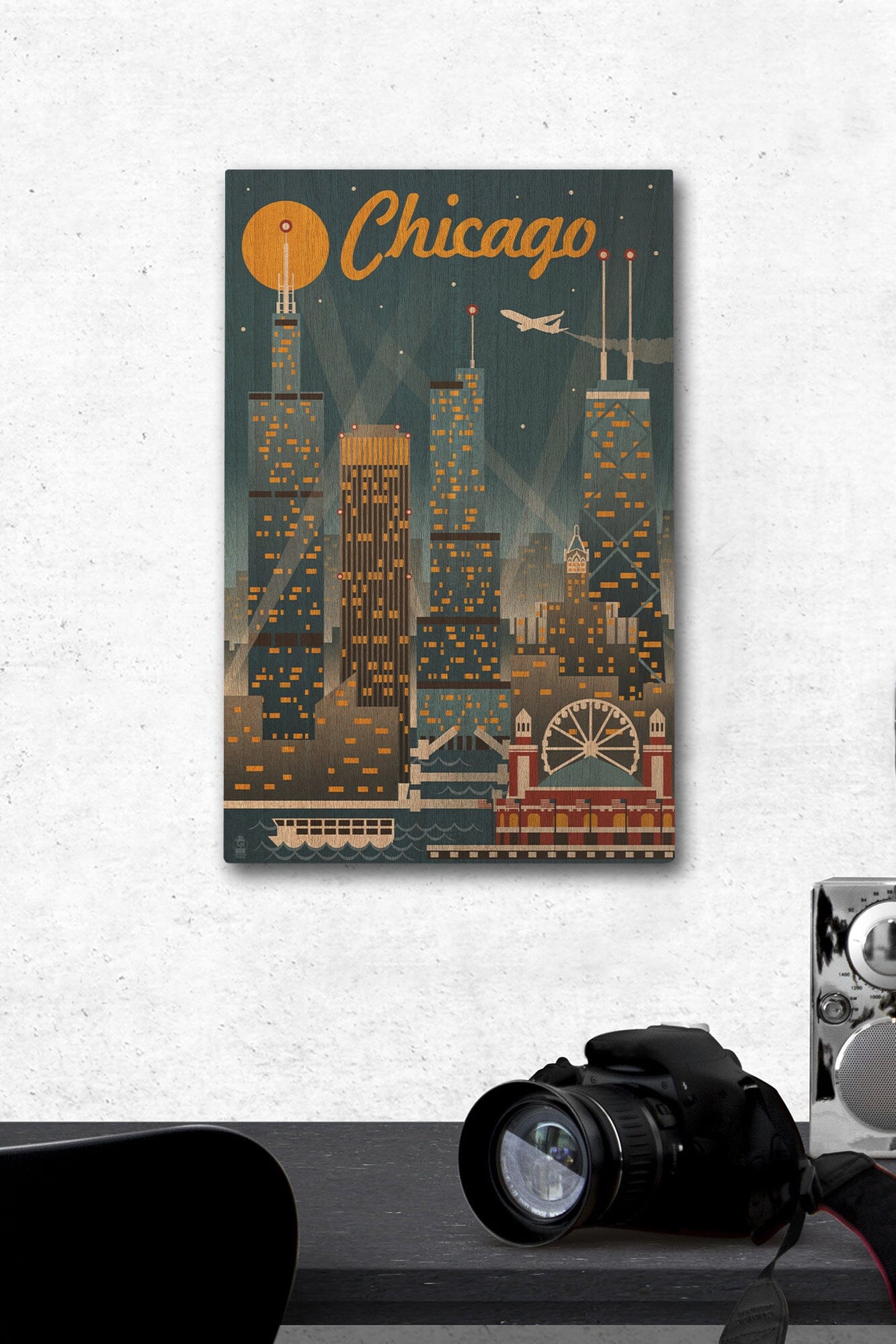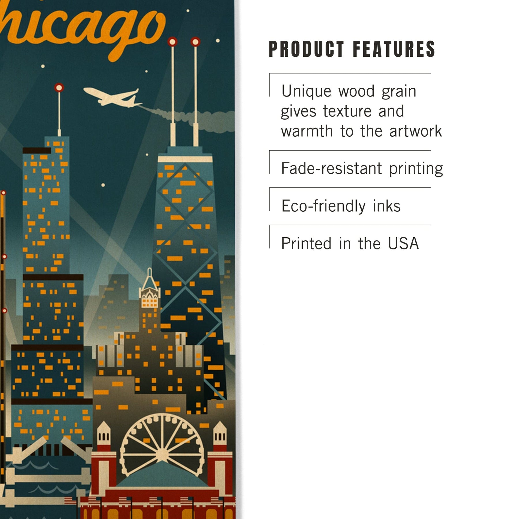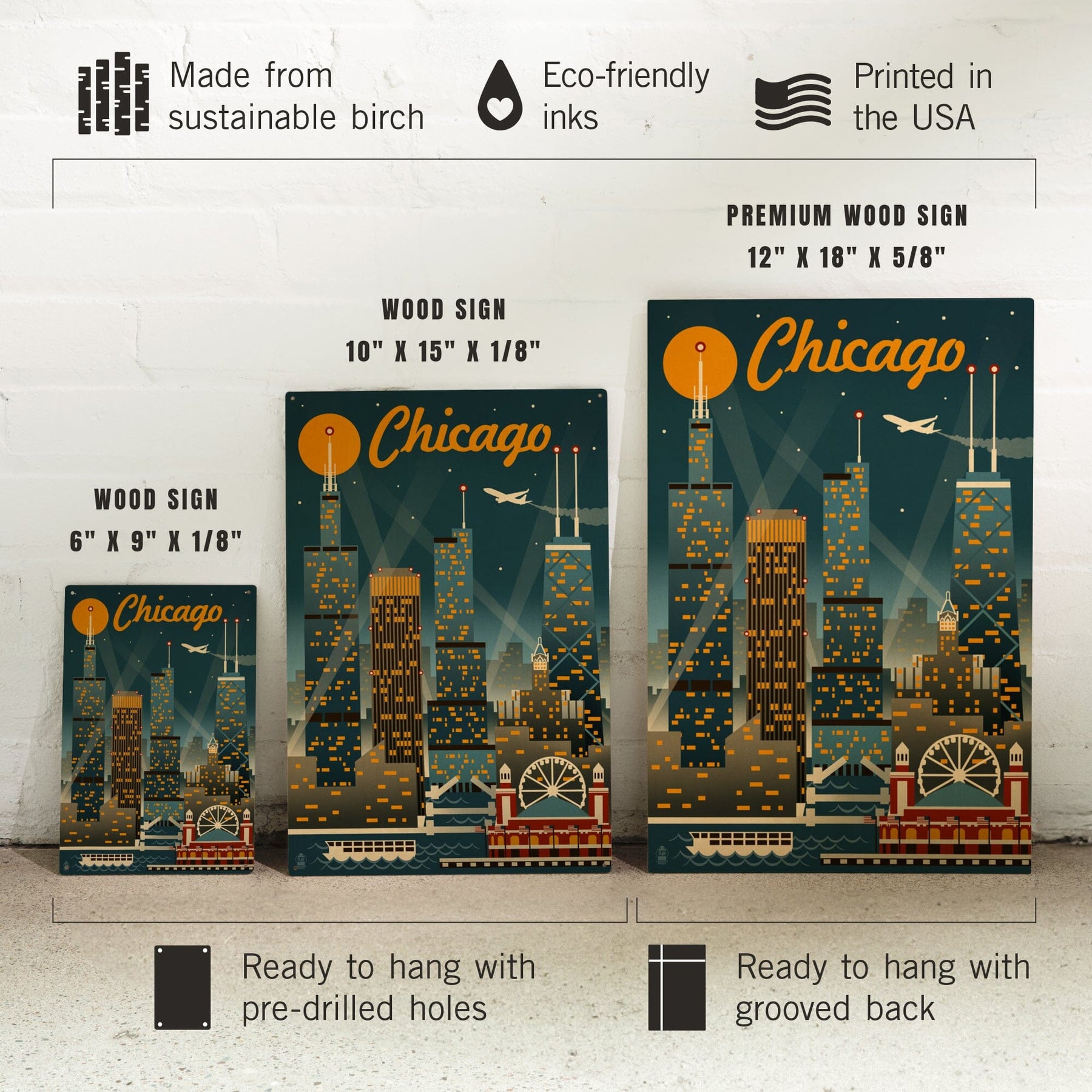 Chicago, Illinois, Retro Skyline, Lantern Press Artwork, Wood Signs and Postcards