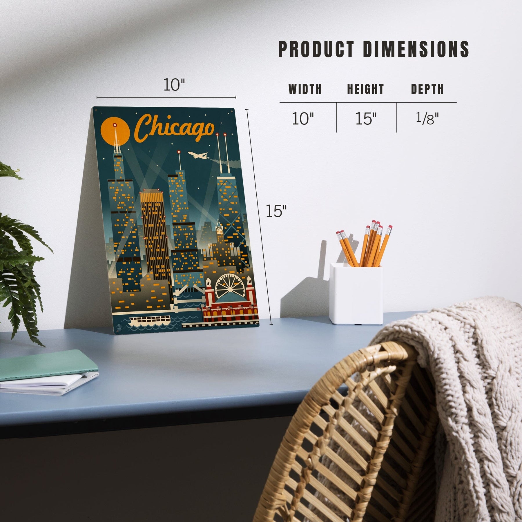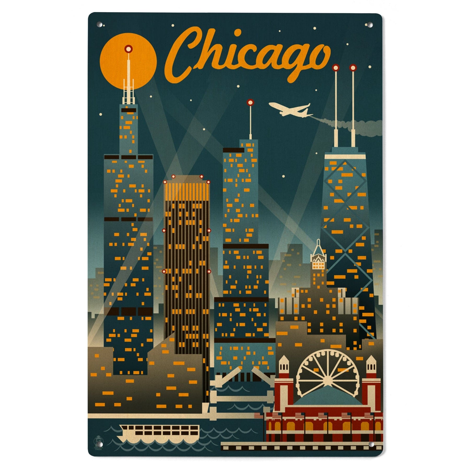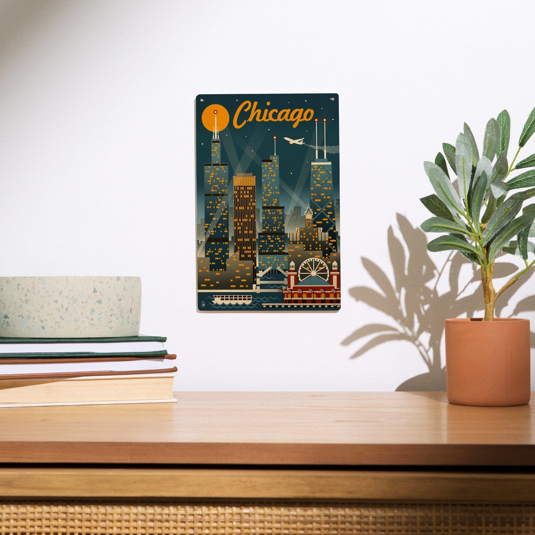 Chicago, Illinois, Retro Skyline, Lantern Press Artwork, Wood Signs and Postcards