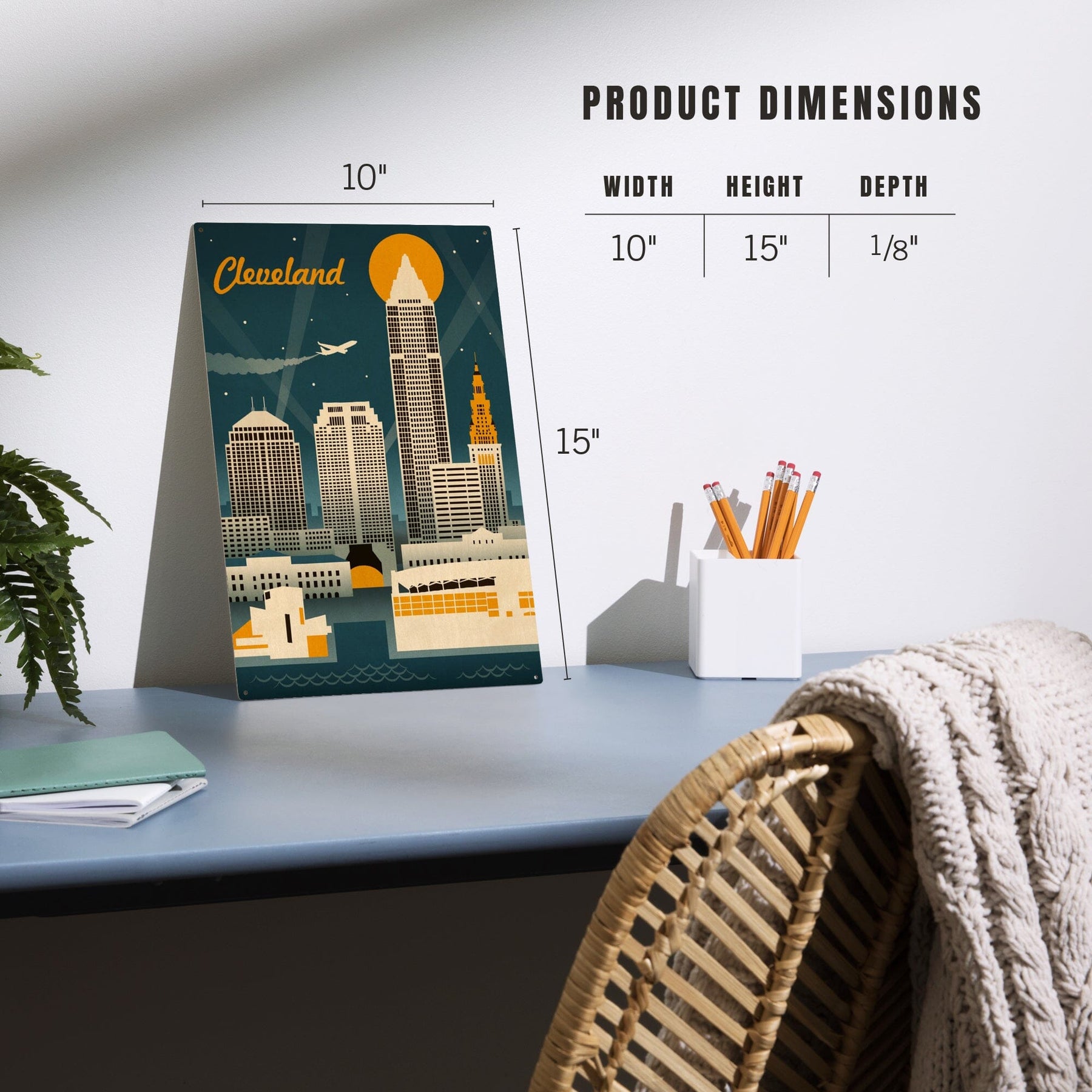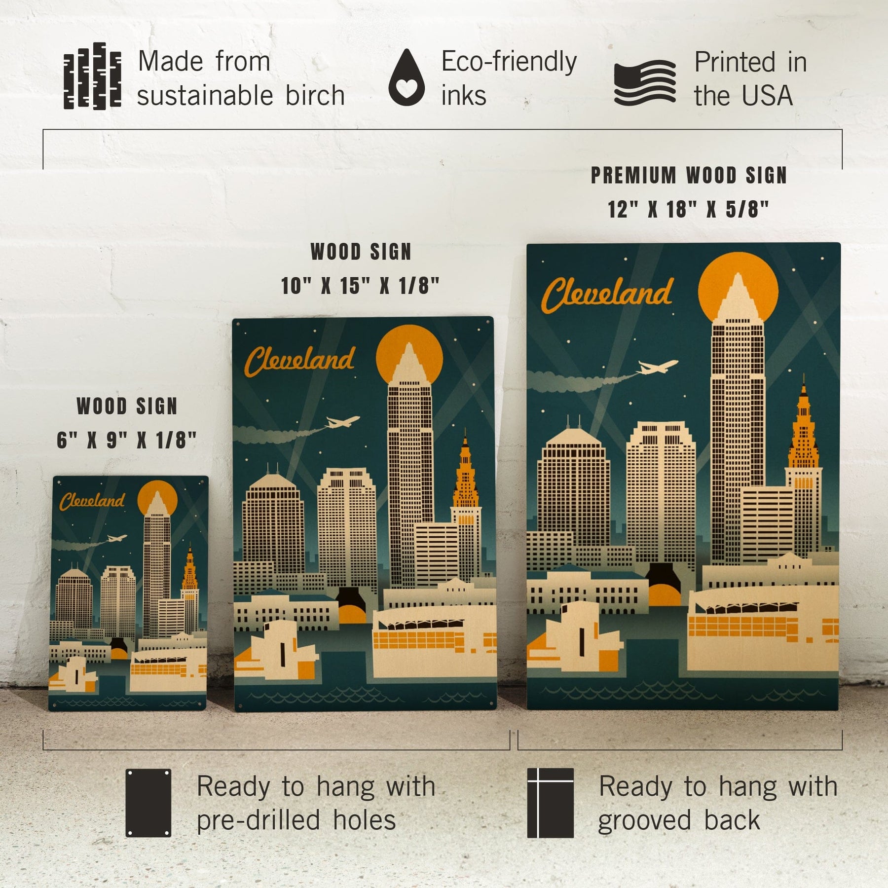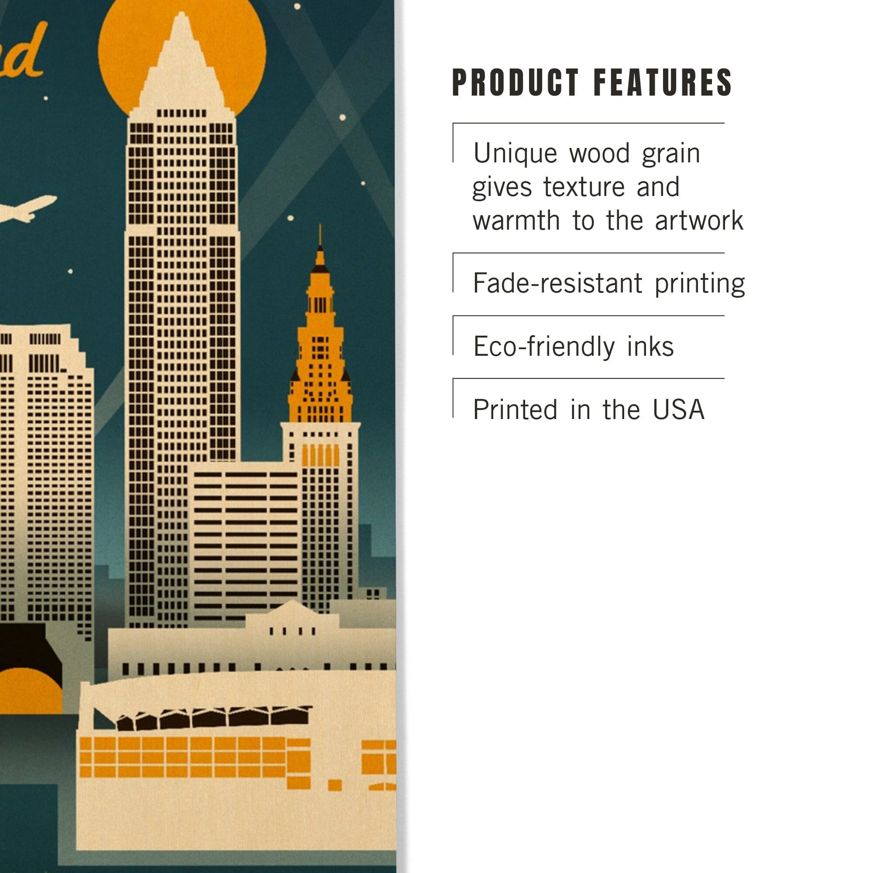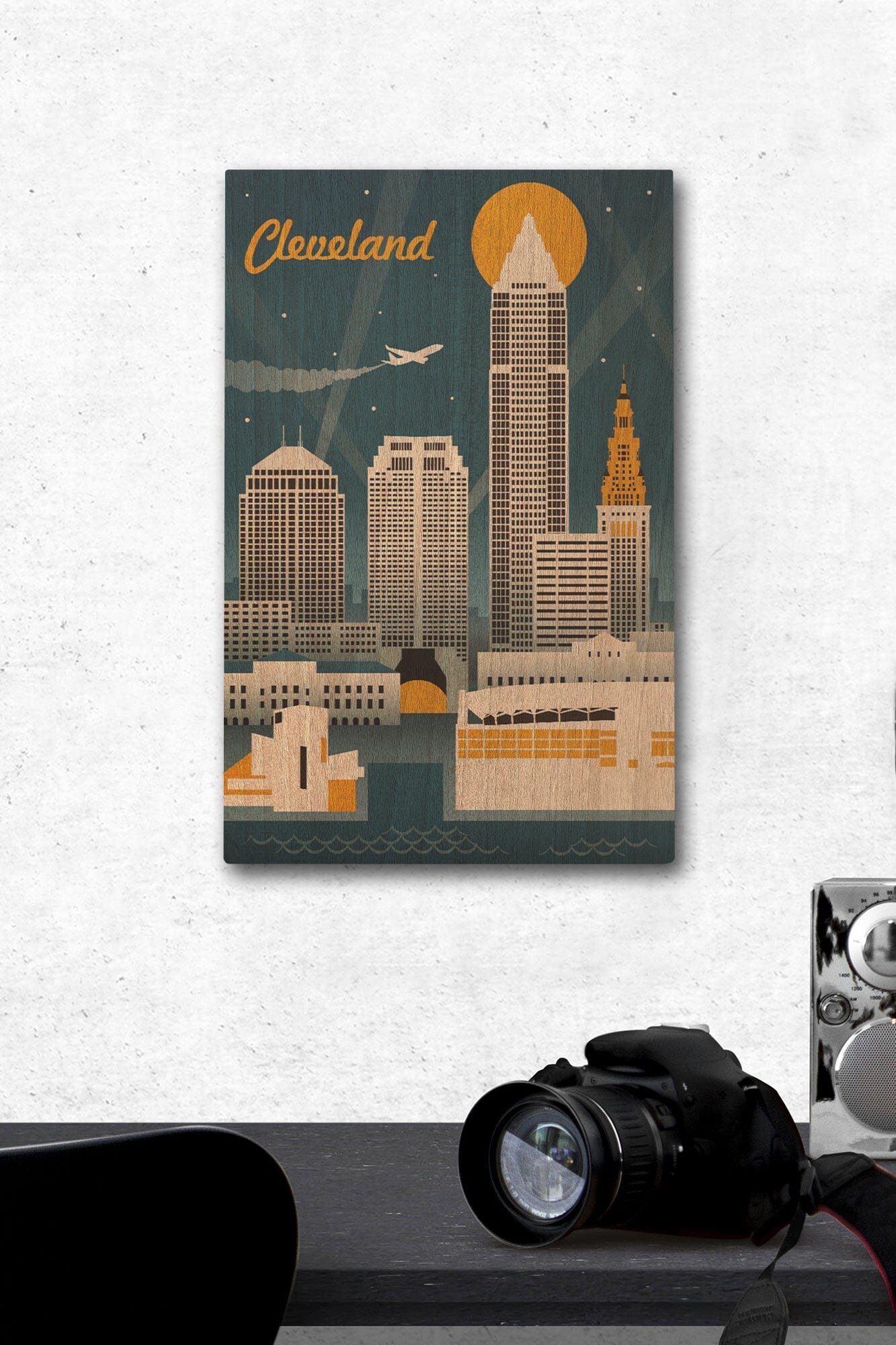 Cleveland, Ohio, Retro Skyline, Lantern Press Artwork, Wood Signs and Postcards