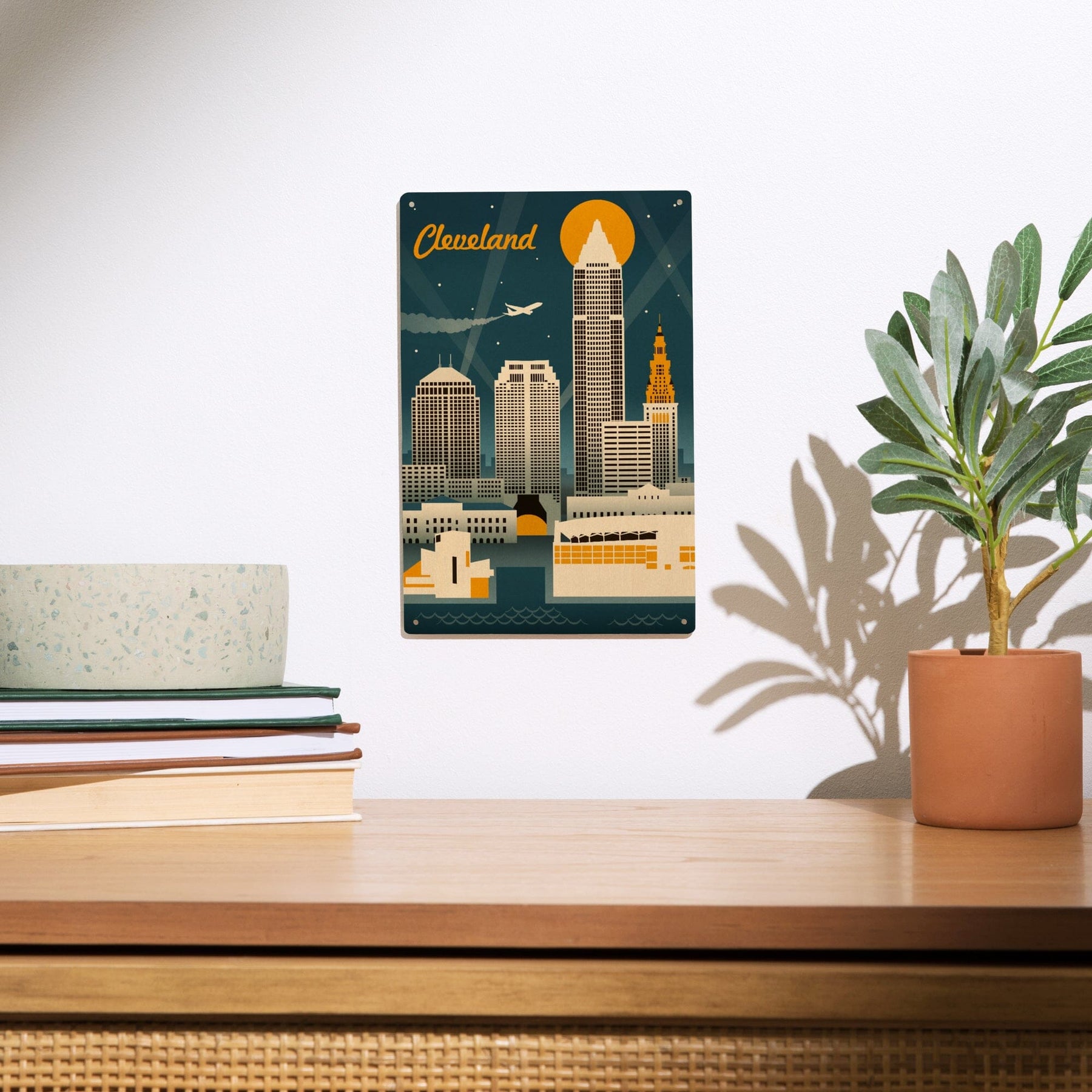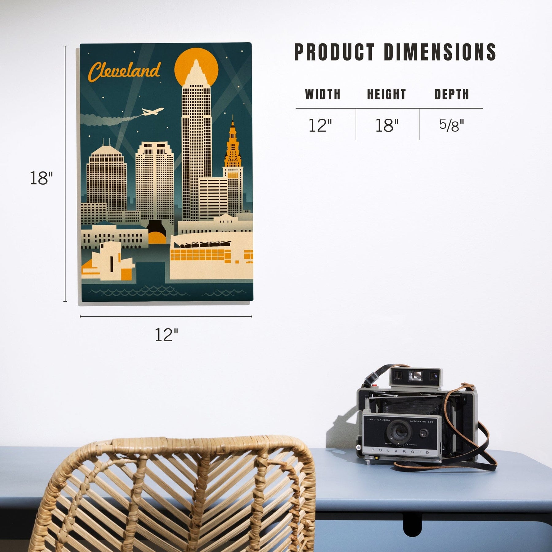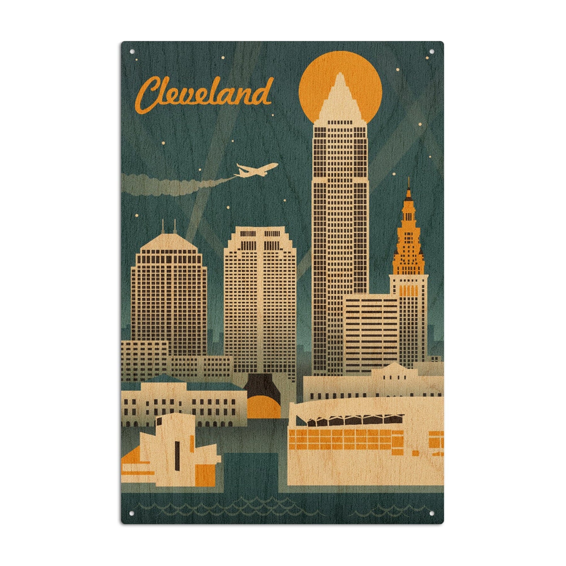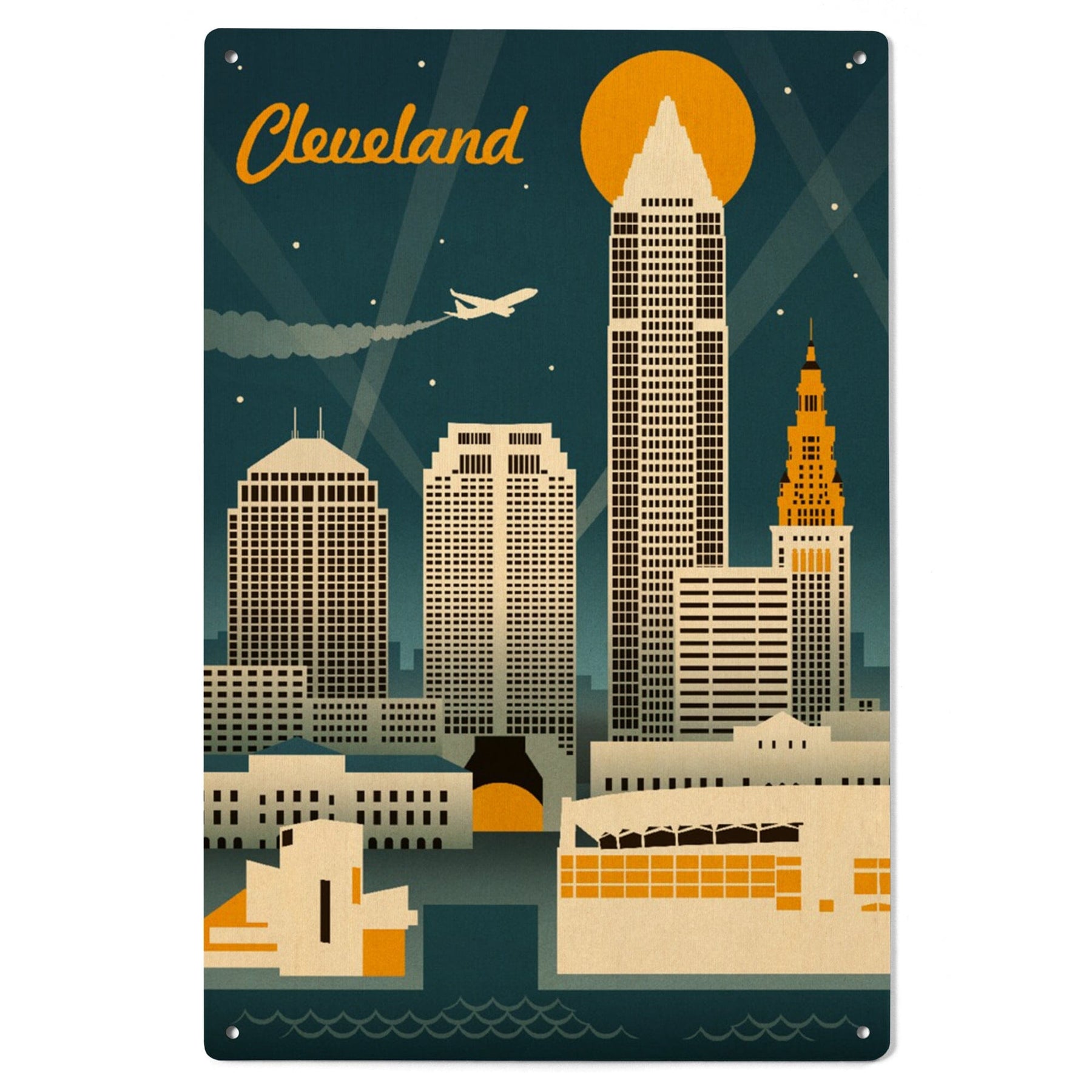 Cleveland, Ohio, Retro Skyline, Lantern Press Artwork, Wood Signs and Postcards