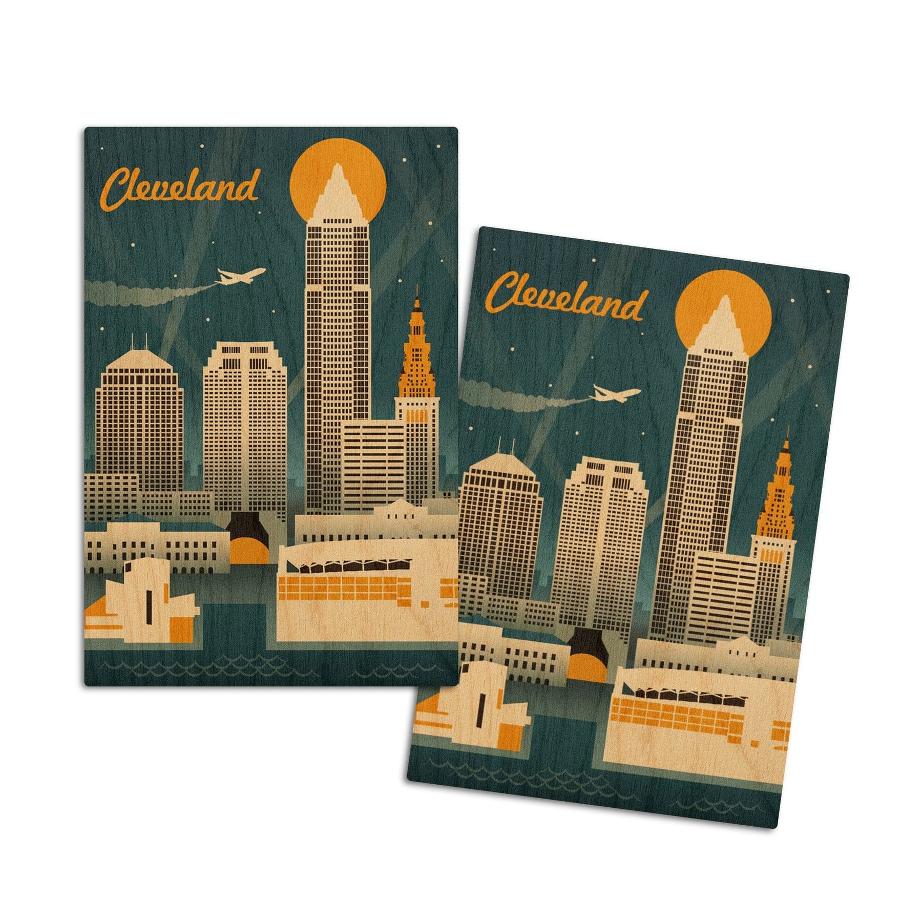 Cleveland, Ohio, Retro Skyline, Lantern Press Artwork, Wood Signs and Postcards - Lantern Press