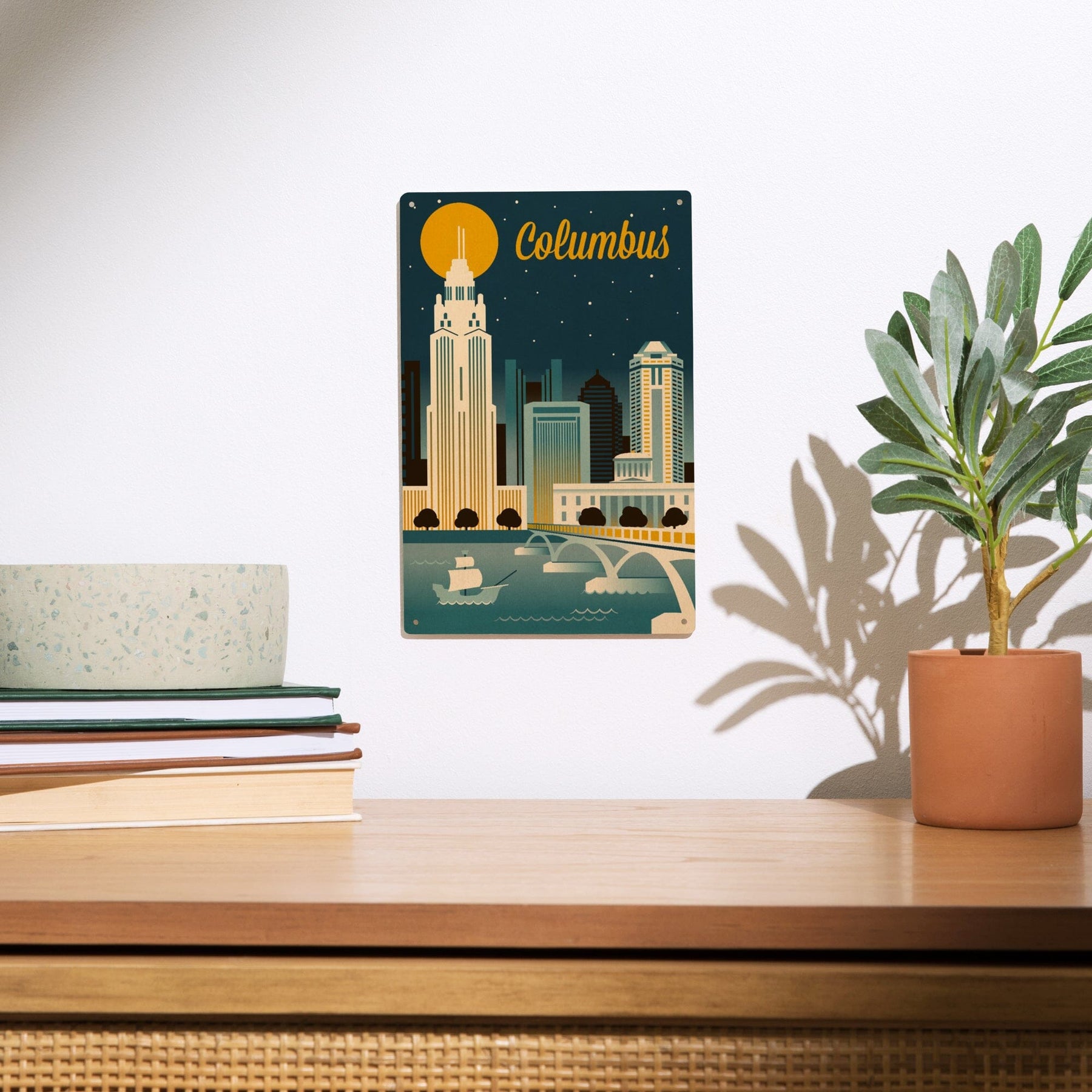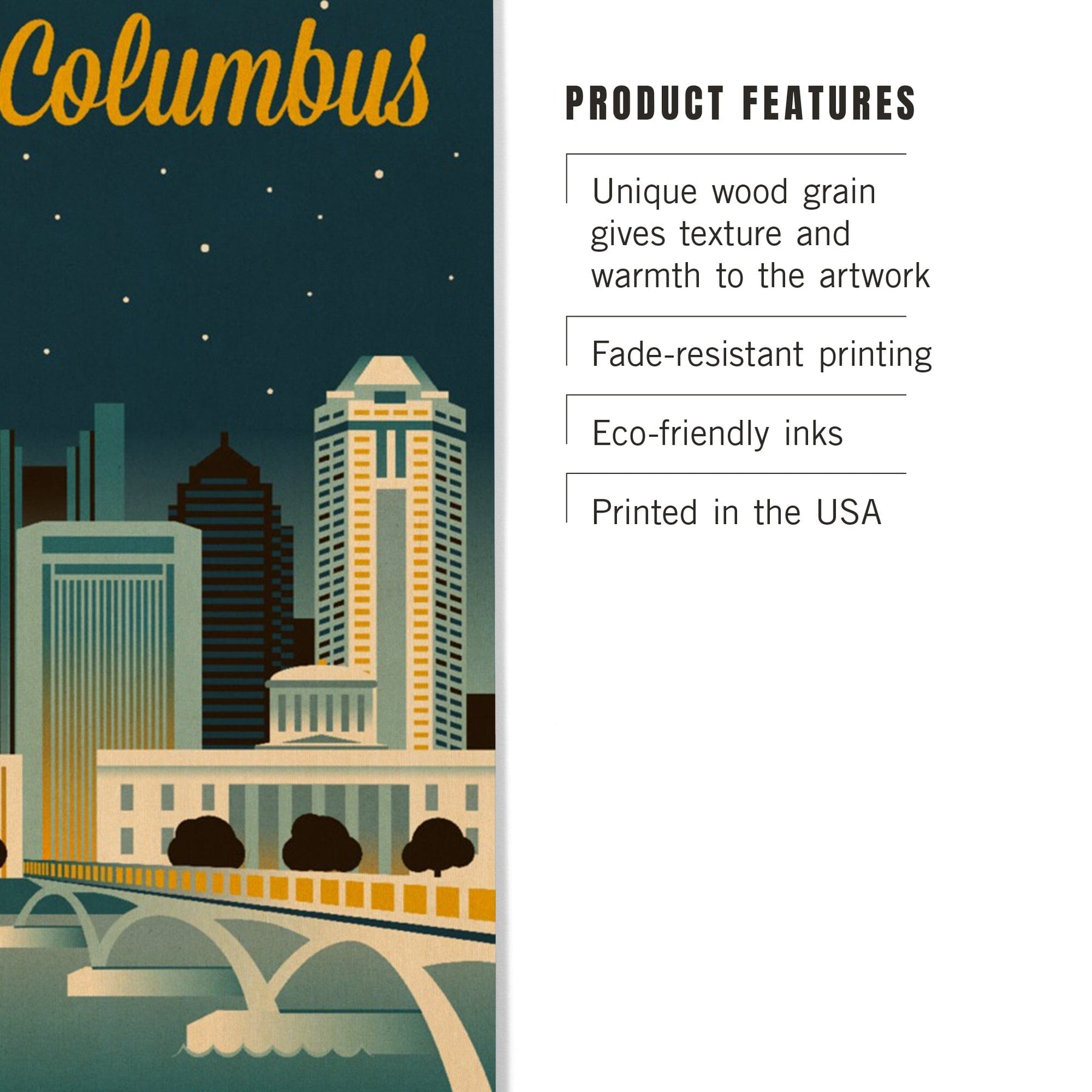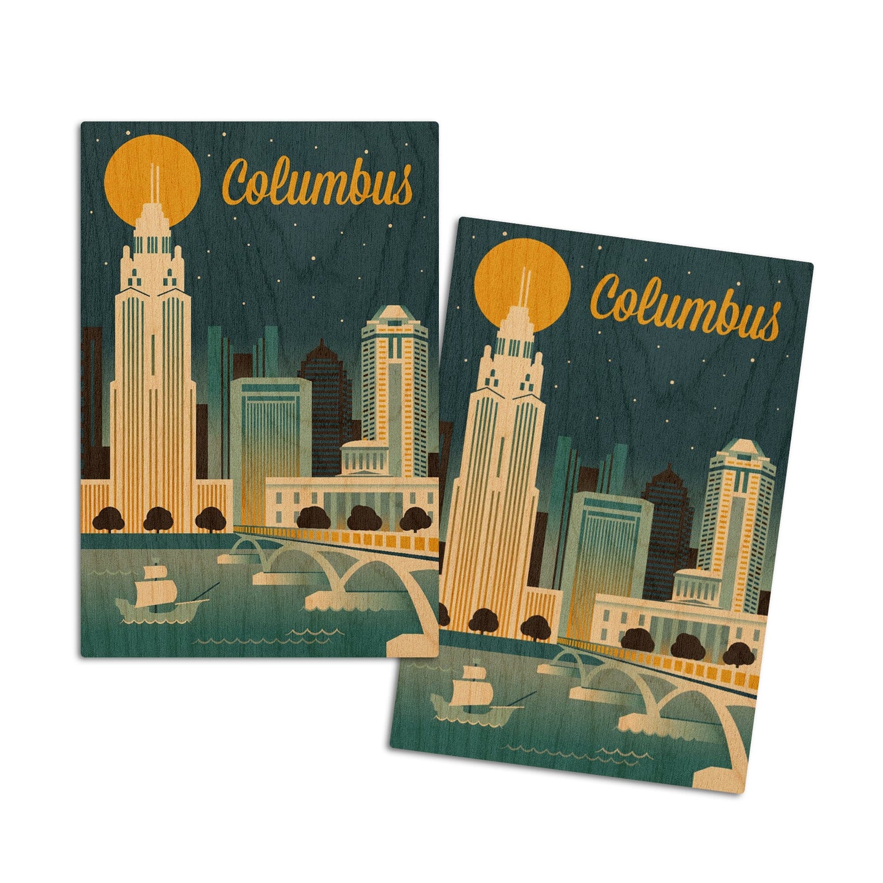 Columbus, Ohio, Retro Skyline Series, Lantern Press Artwork, Wood Signs and Postcards