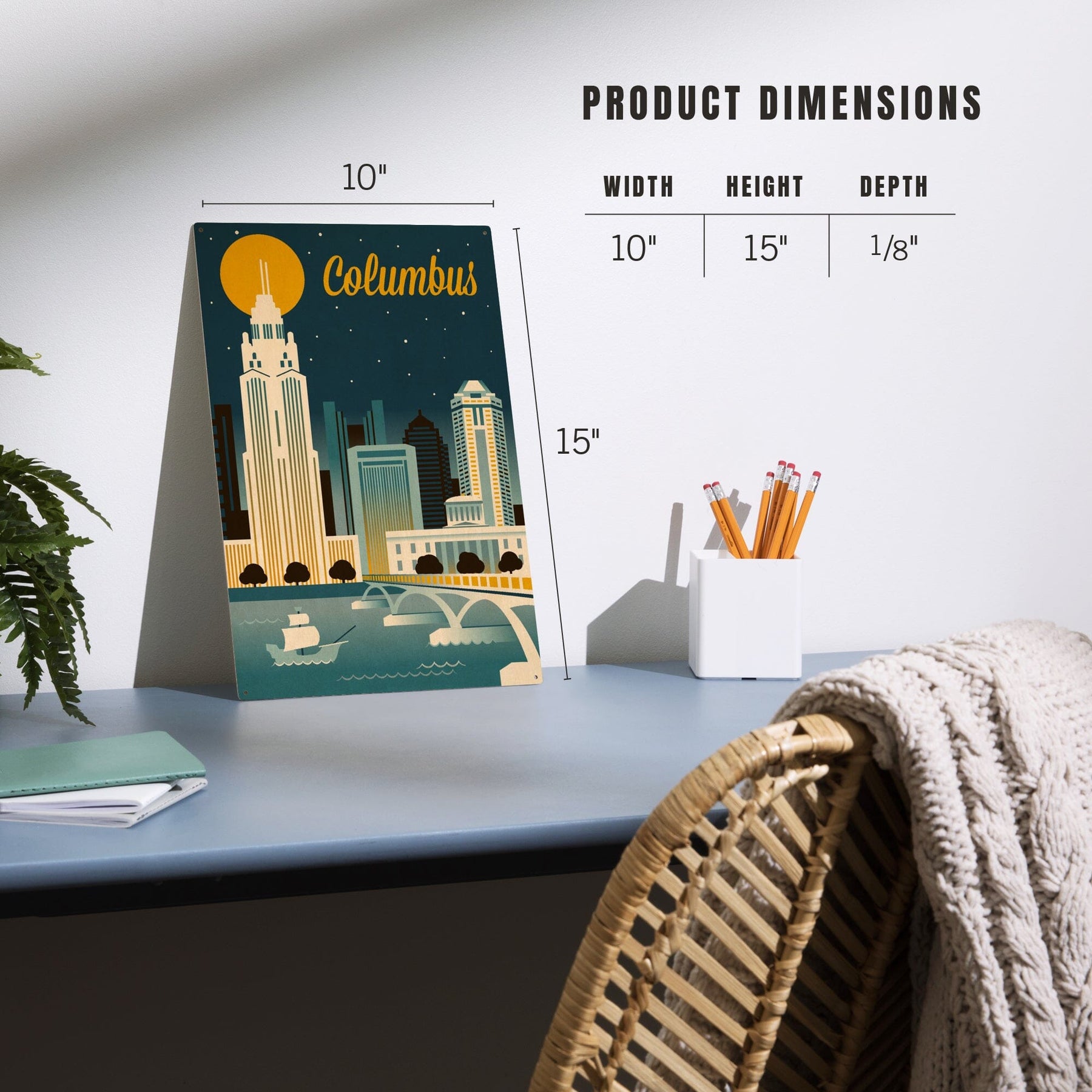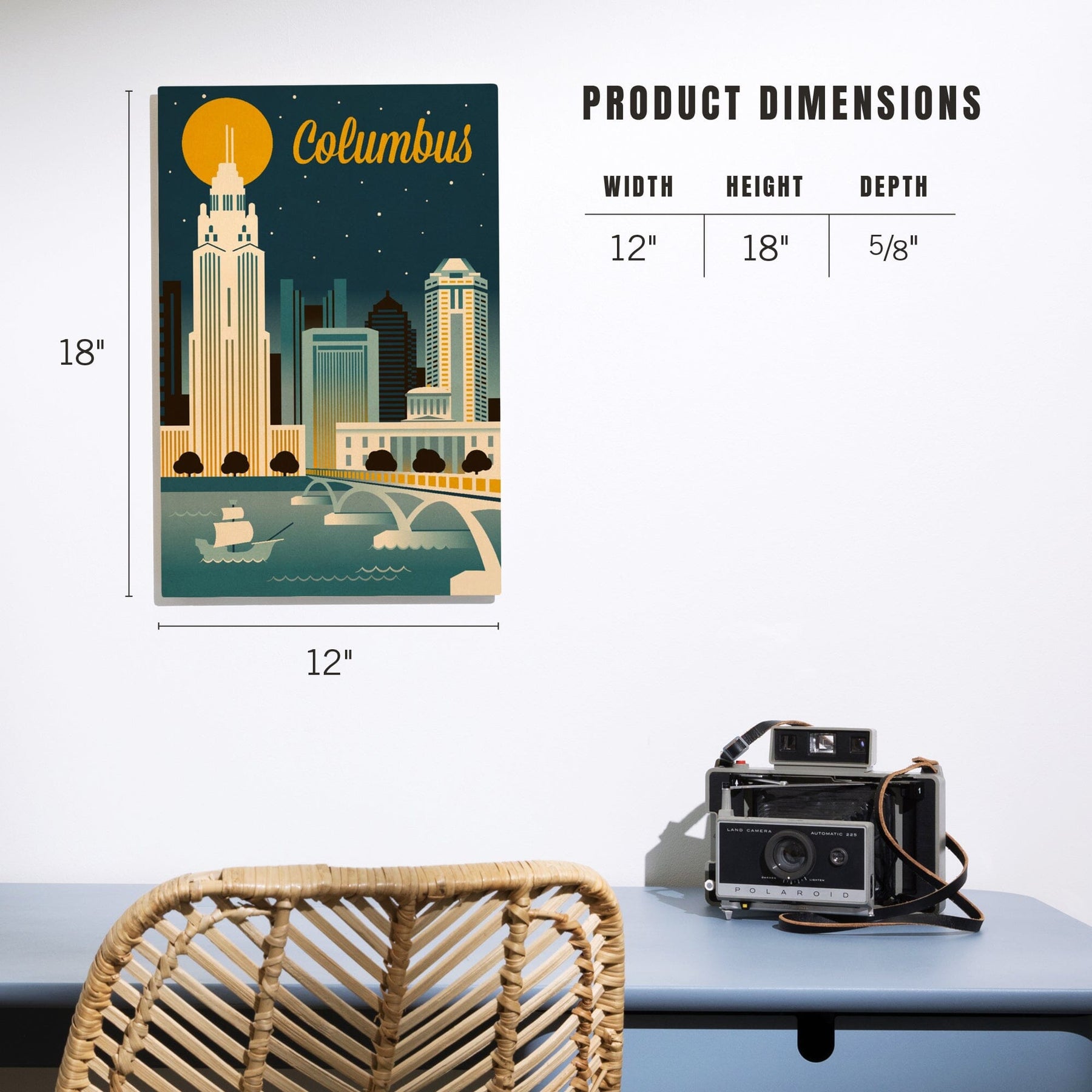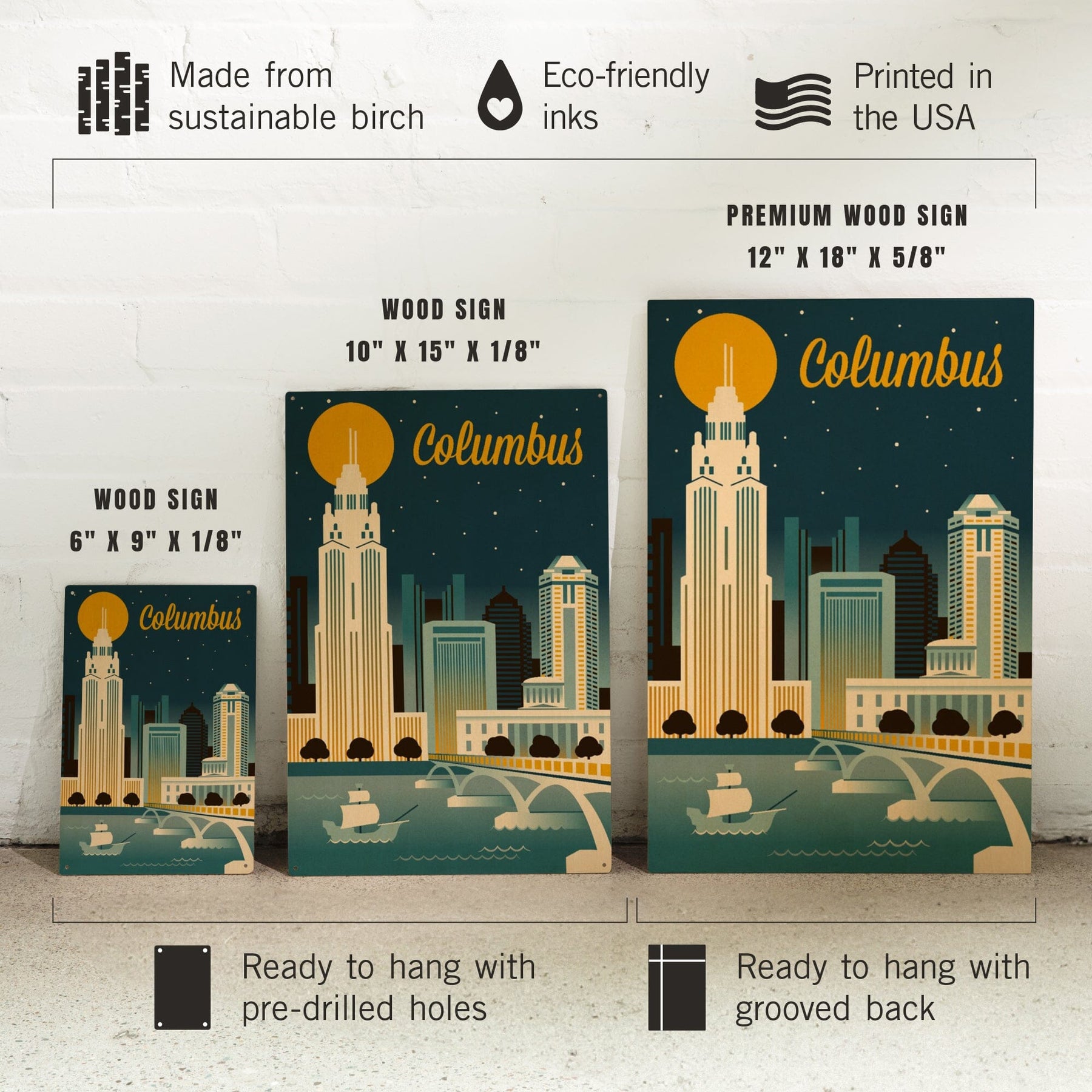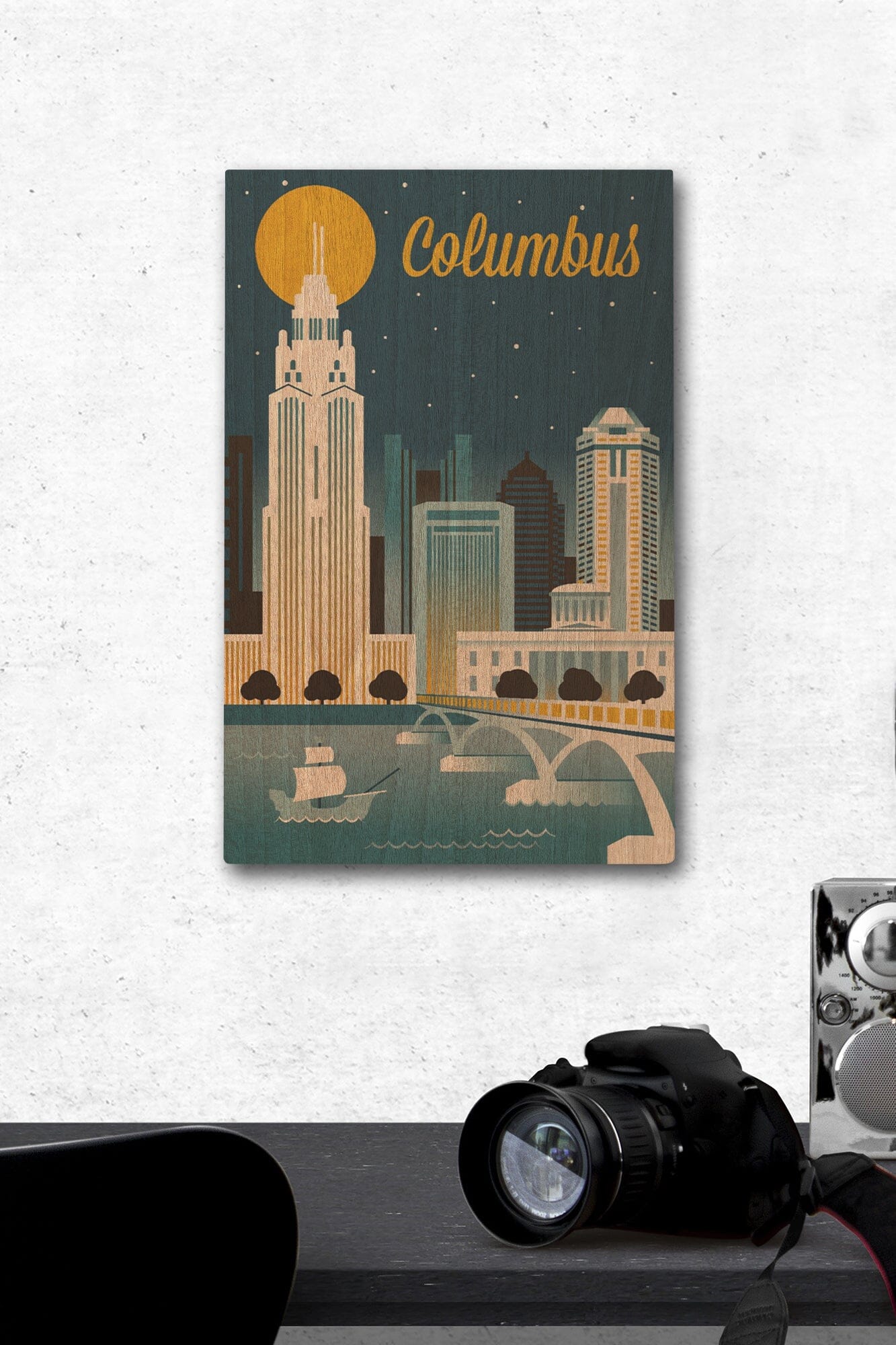 Columbus, Ohio, Retro Skyline Series, Lantern Press Artwork, Wood Signs and Postcards