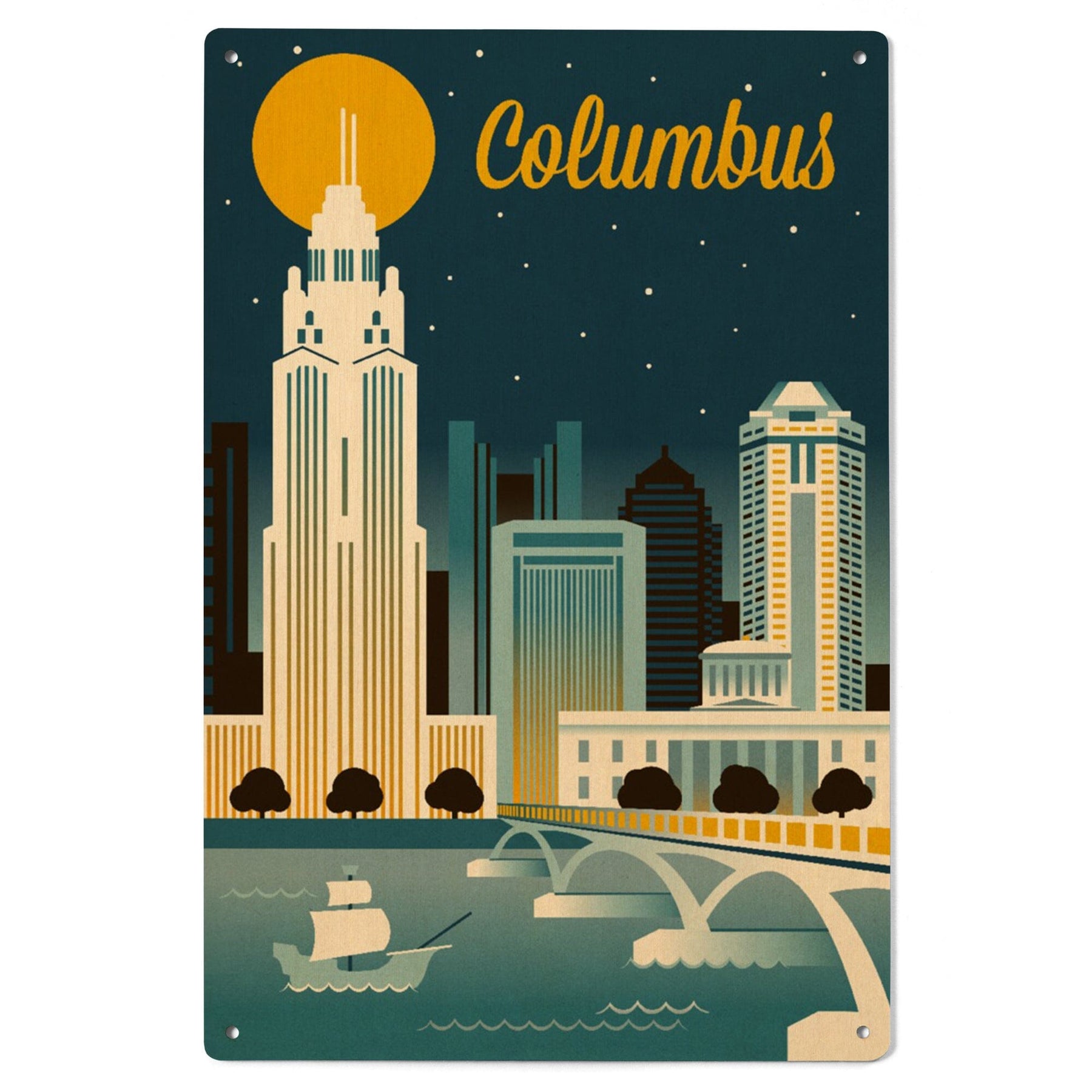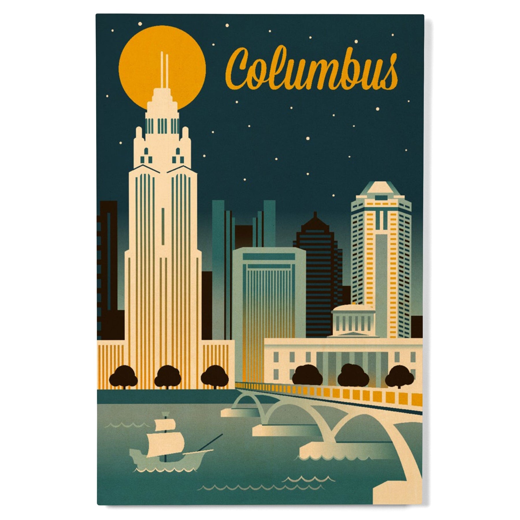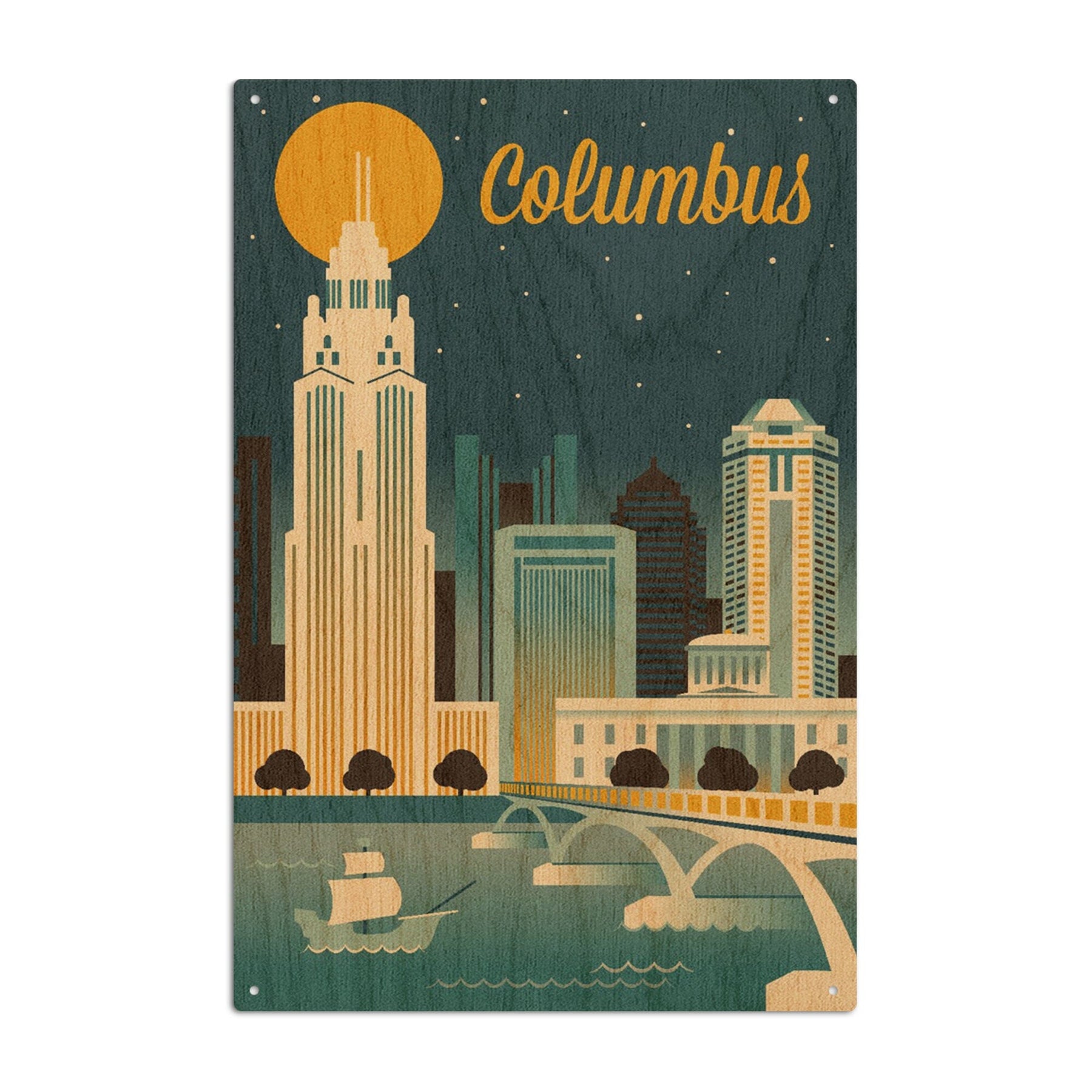 Columbus, Ohio, Retro Skyline Series, Lantern Press Artwork, Wood Signs and Postcards - Lantern Press