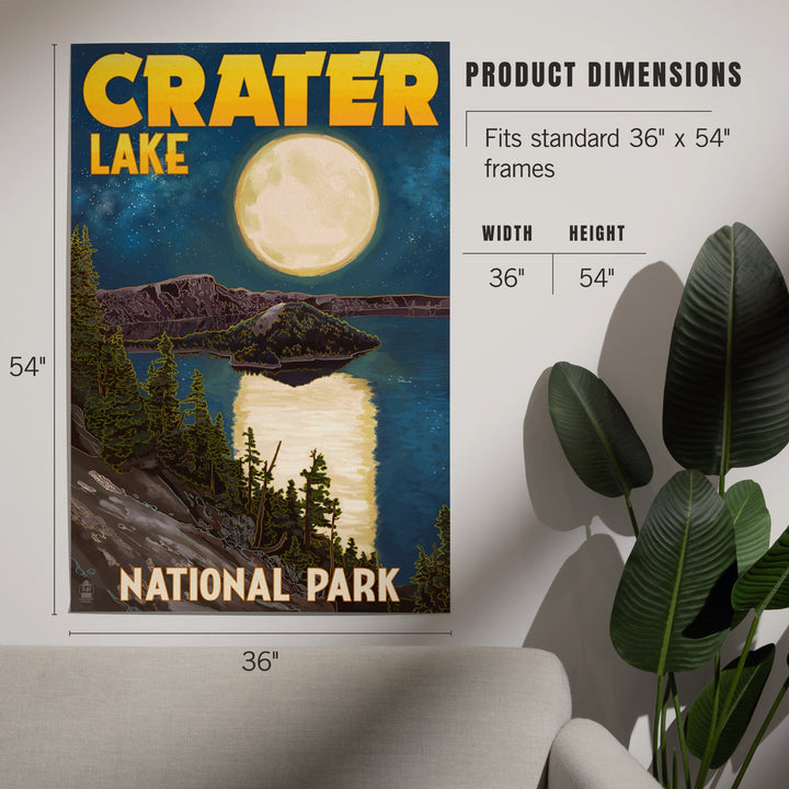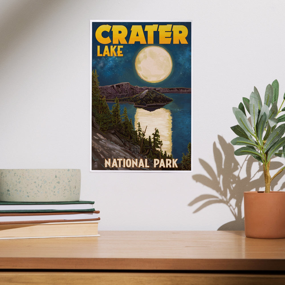 Crater Lake National Park, Oregon, Lake and Full Moon, Art & Giclee Prints - Lantern Press