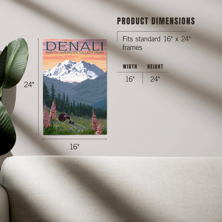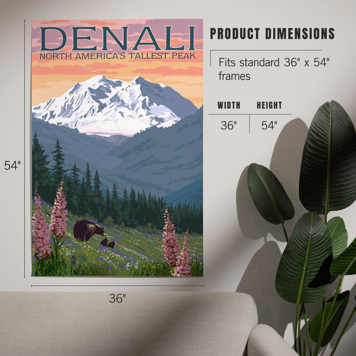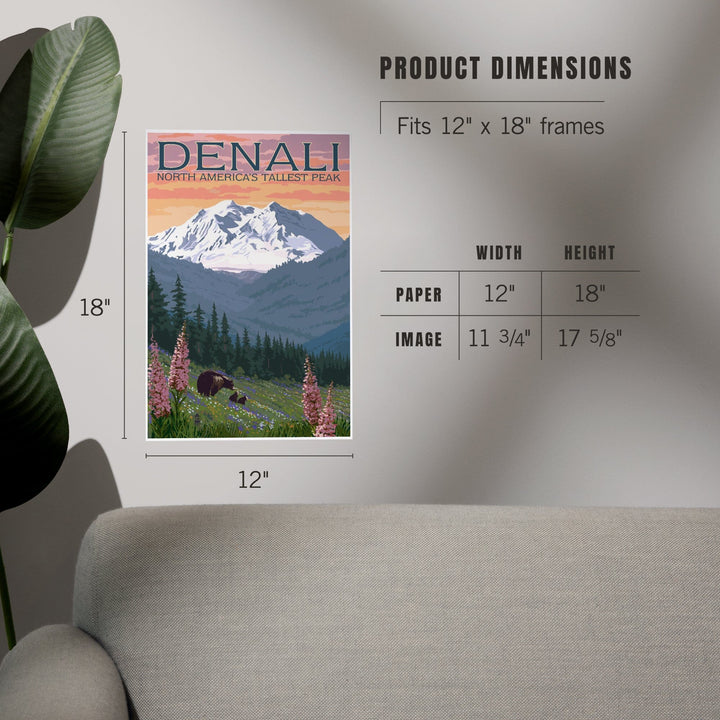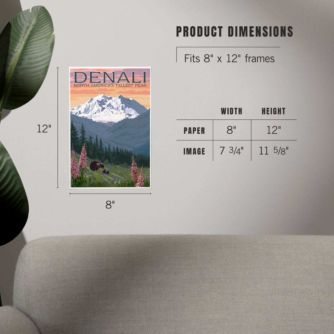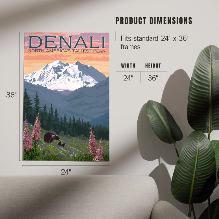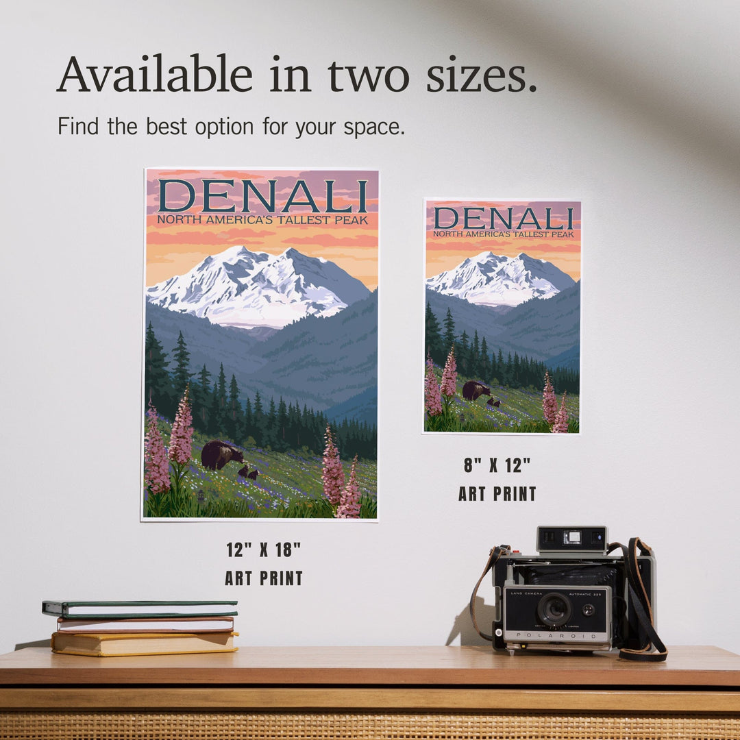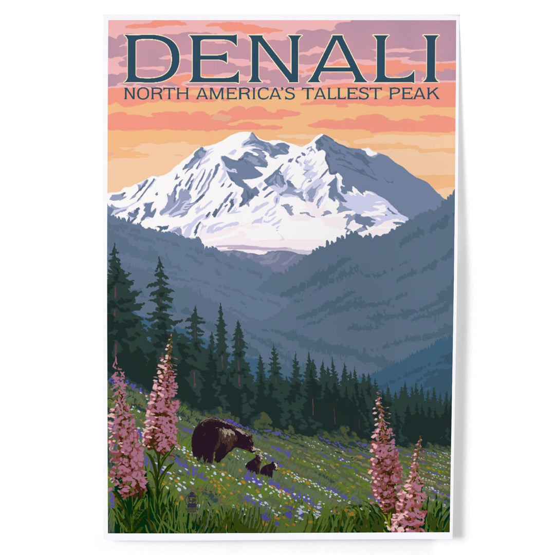 Denali, Alaska, North America's Tallest Peak, Bears and Spring Flowers, Art & Giclee Prints - Lantern Press