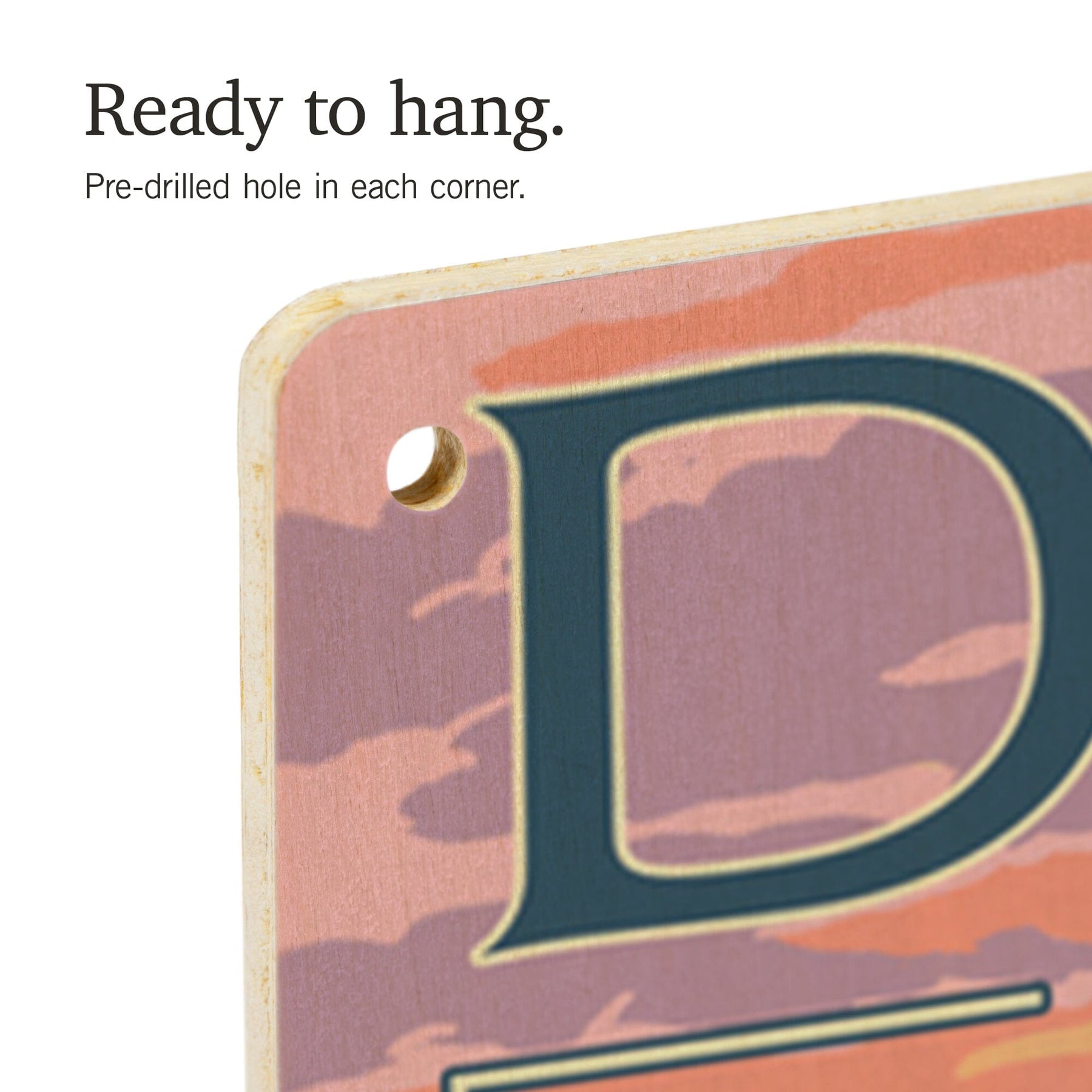 • Hole in each corner, ready to hang