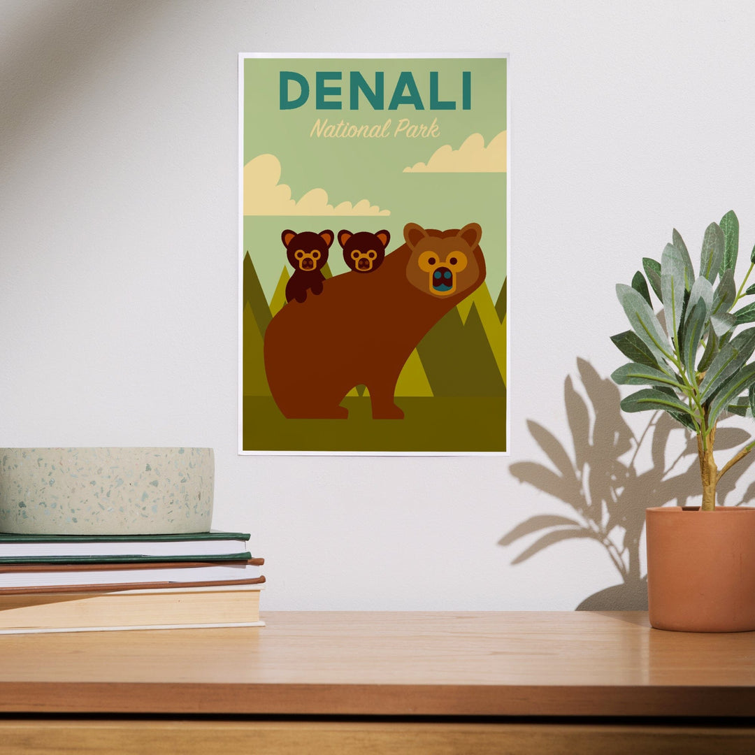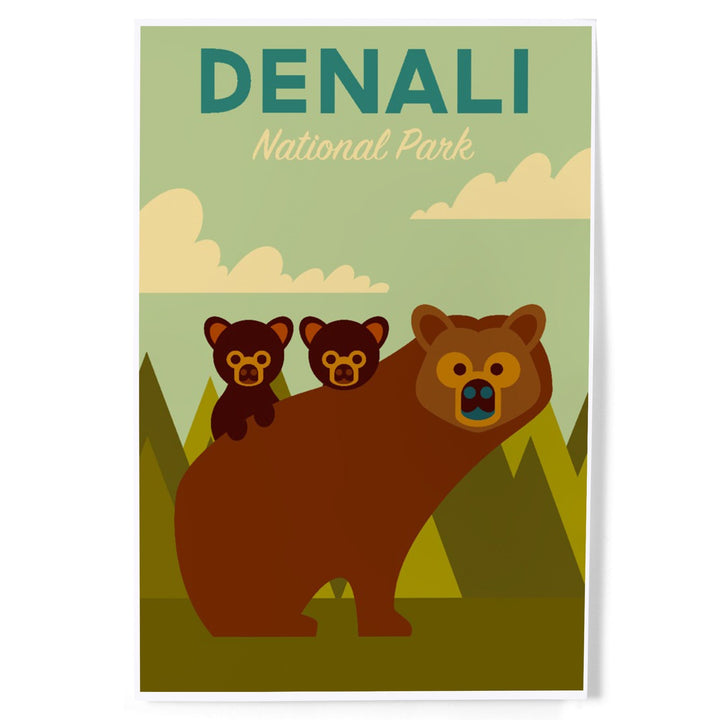 Denali National Park, Alaska, Bear and Cubs, Geometric, Art & Giclee Prints - Lantern Press