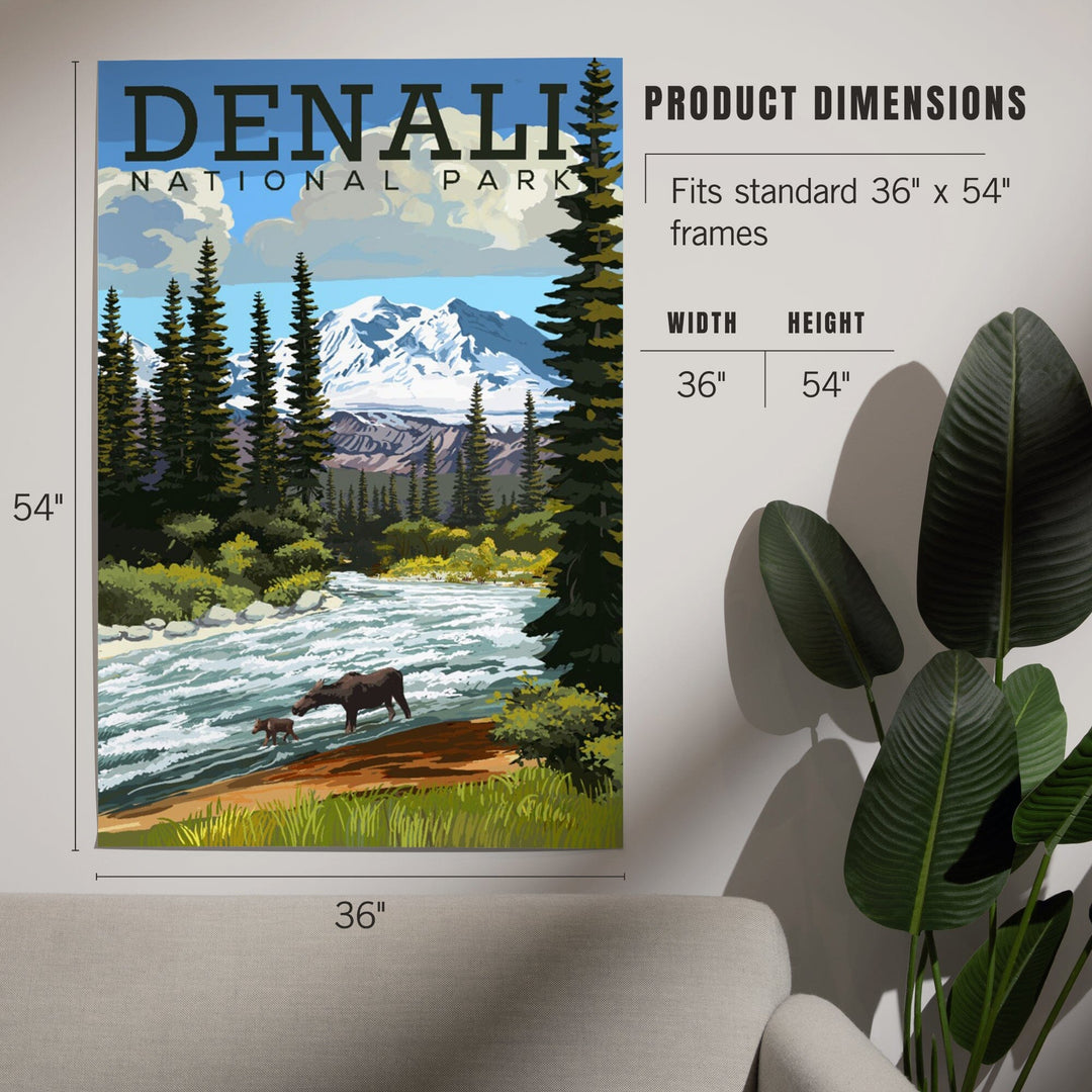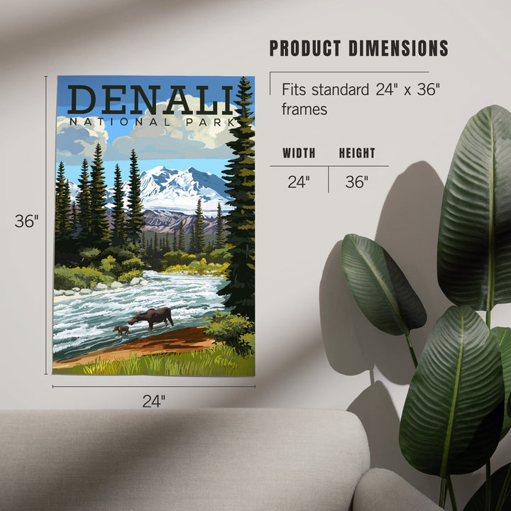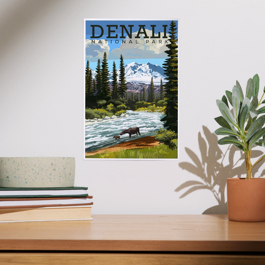 Denali National Park, Alaska, Moose and River Rapids, Art & Giclee Prints - Lantern Press