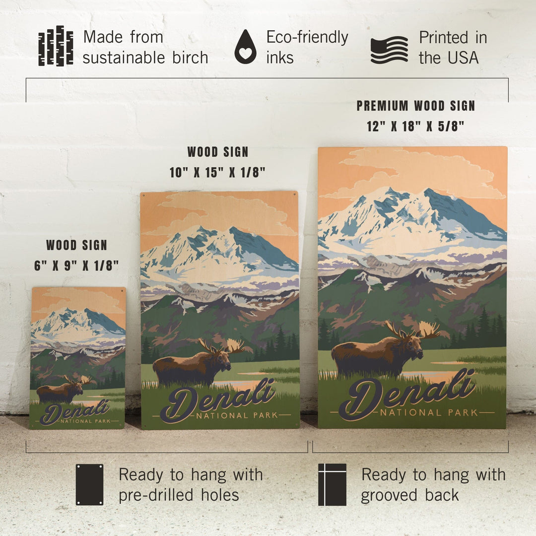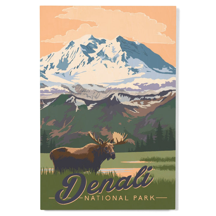 Denali National Park, Alaska, Moose & Mountains, Lantern Press Artwork, Wood Signs and Postcards