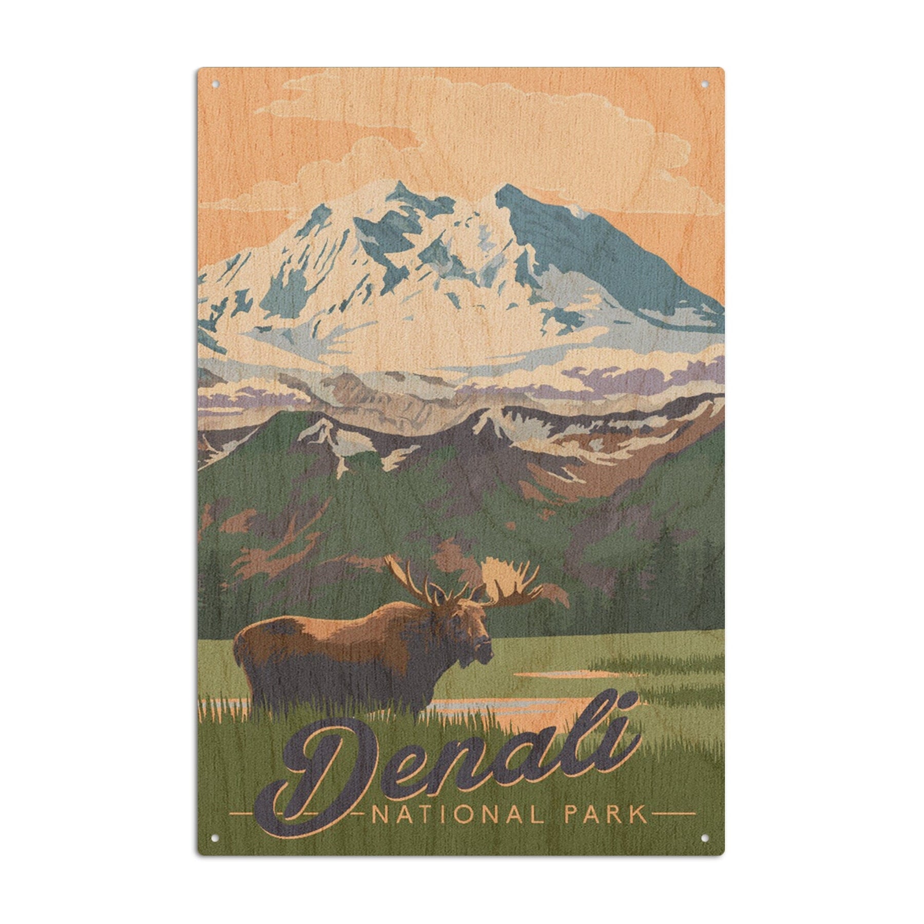 Denali National Park, Alaska, Moose & Mountains, Lantern Press Artwork, Wood Signs and Postcards - Lantern Press