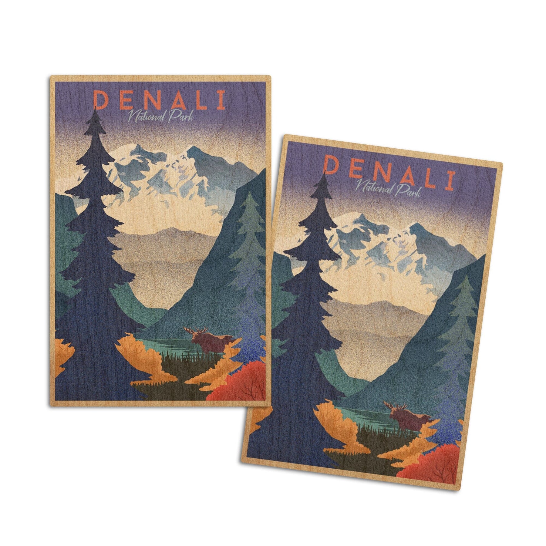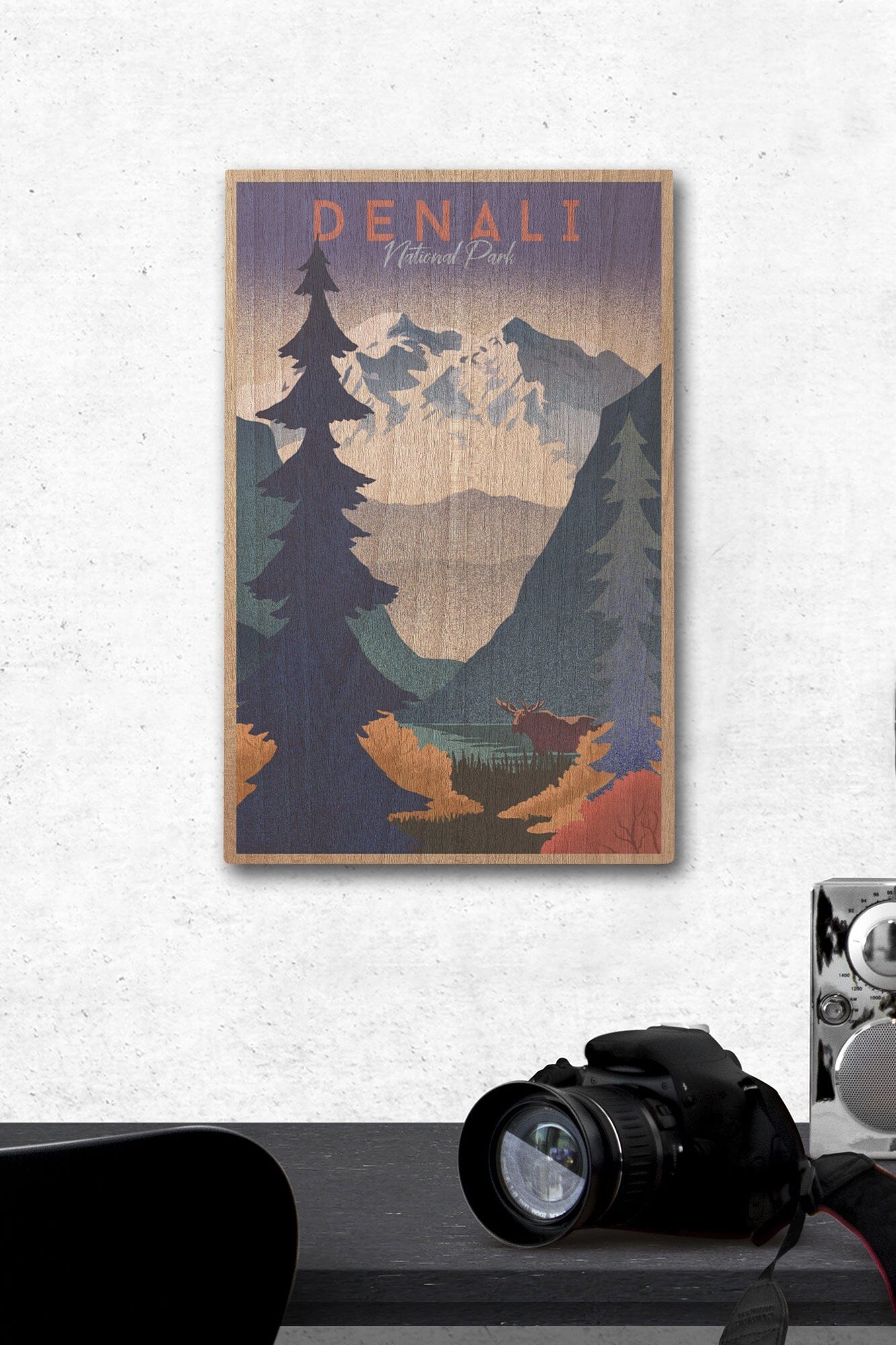 Denali National Park, Alaska, Mountain Scene, Lithograph, Lantern Press Artwork, Wood Signs and Postcards - Lantern Press