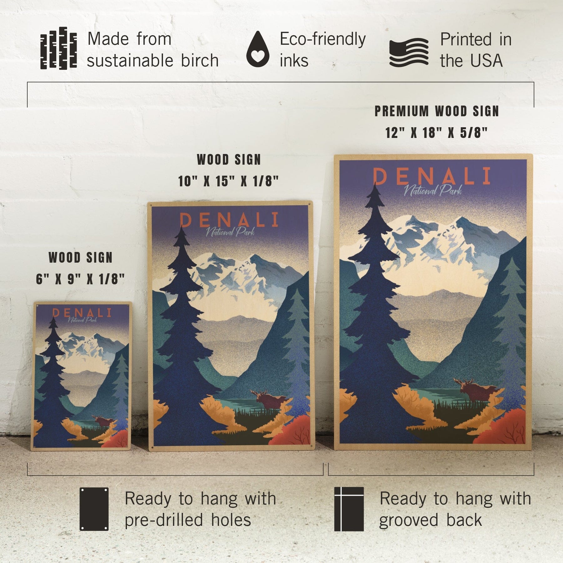 Denali National Park, Alaska, Mountain Scene, Lithograph, Lantern Press Artwork, Wood Signs and Postcards