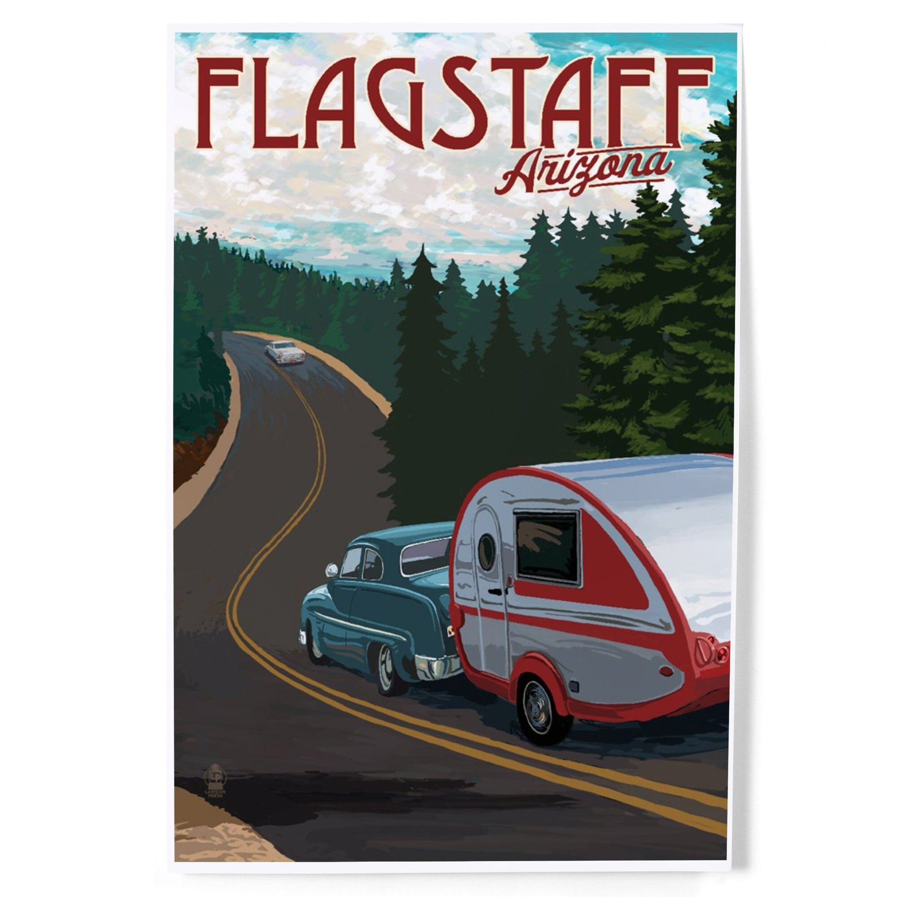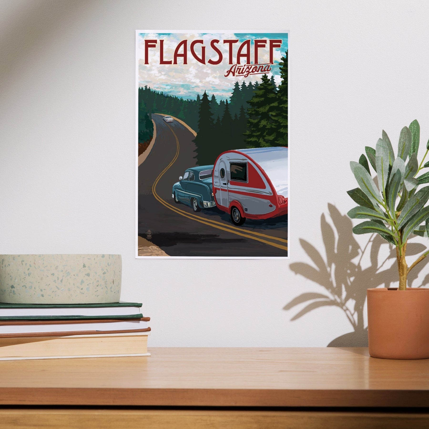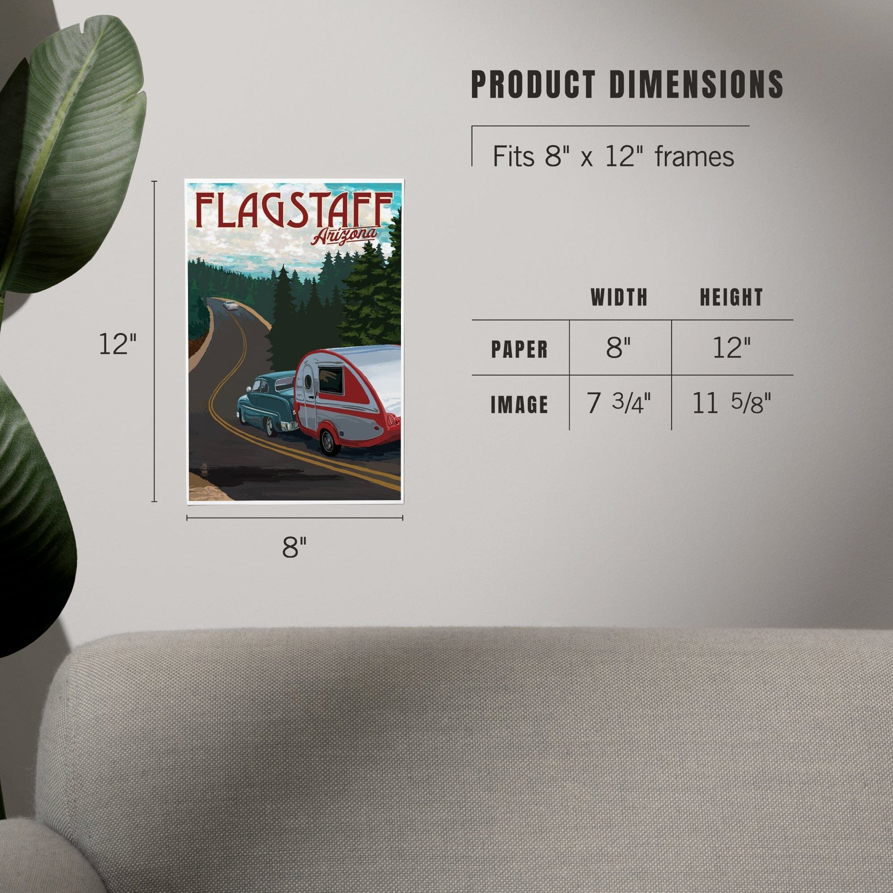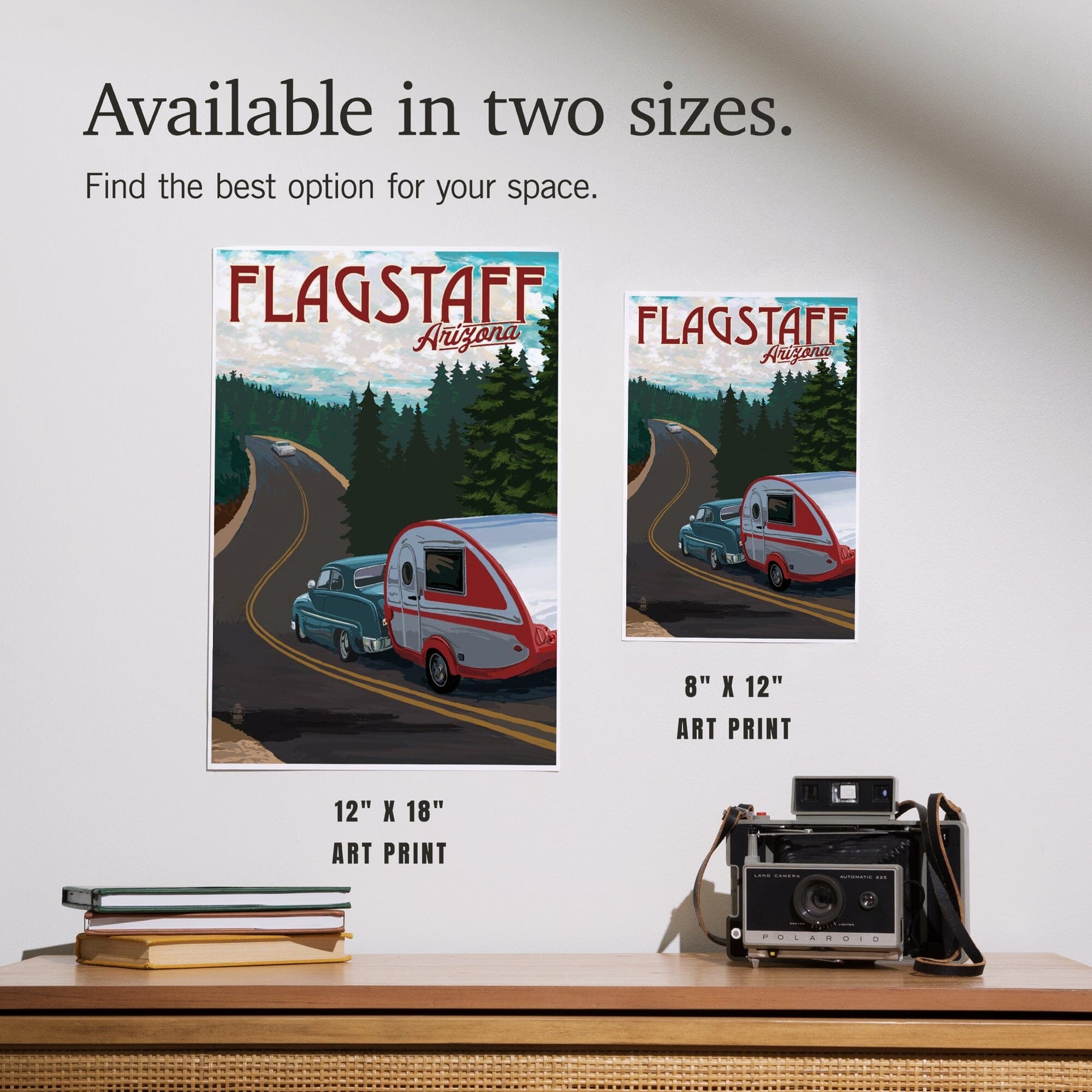 Flagstaff, Arizona, Retro Camper on Road, Art & Giclee Prints - Lantern Press