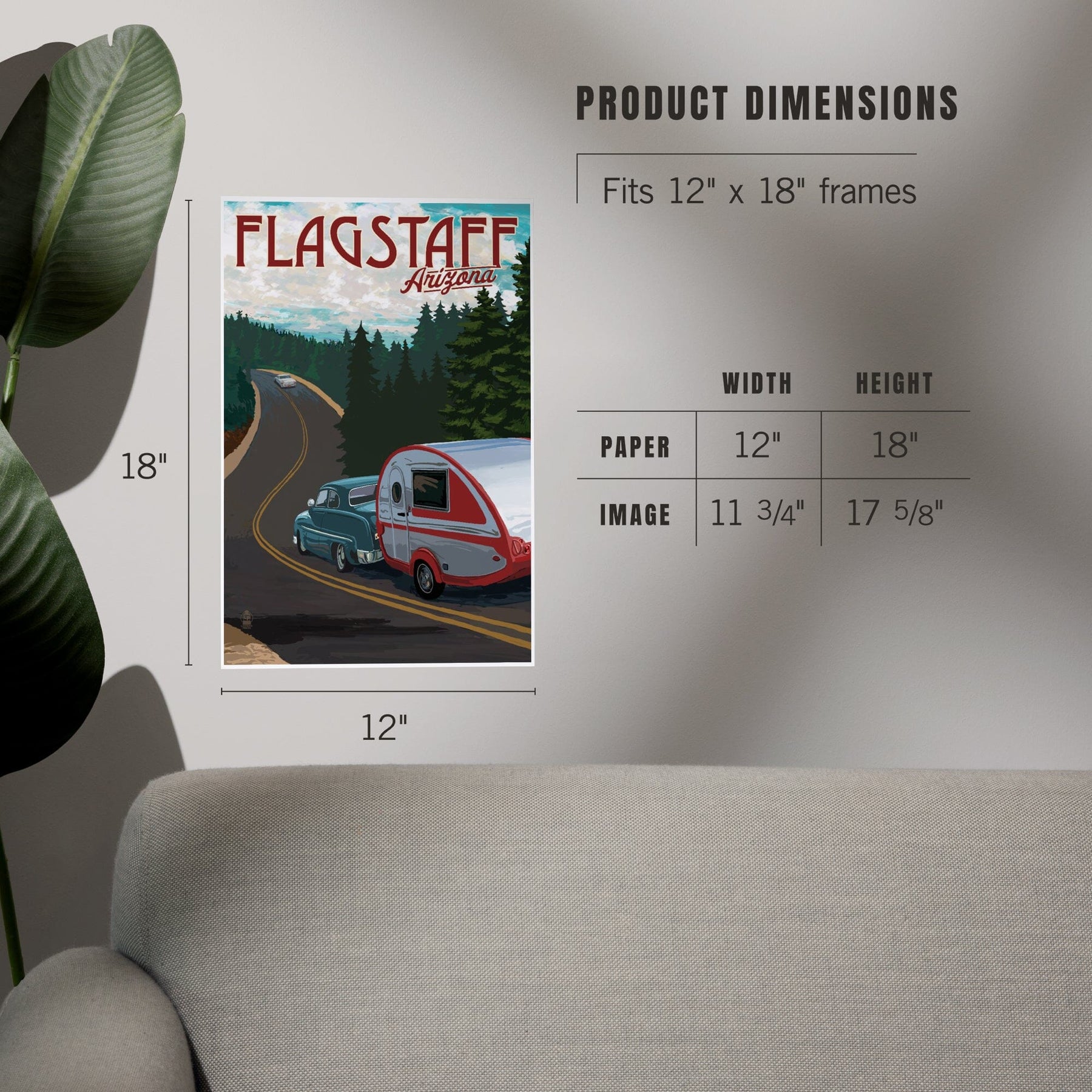 Flagstaff, Arizona, Retro Camper on Road, Art & Giclee Prints