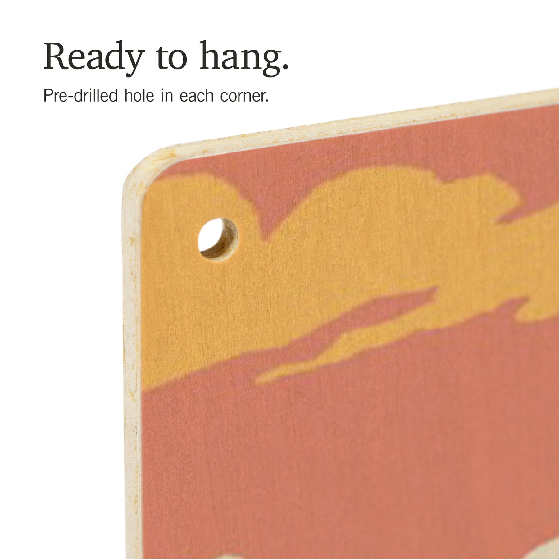 • Hole in each corner, ready to hang