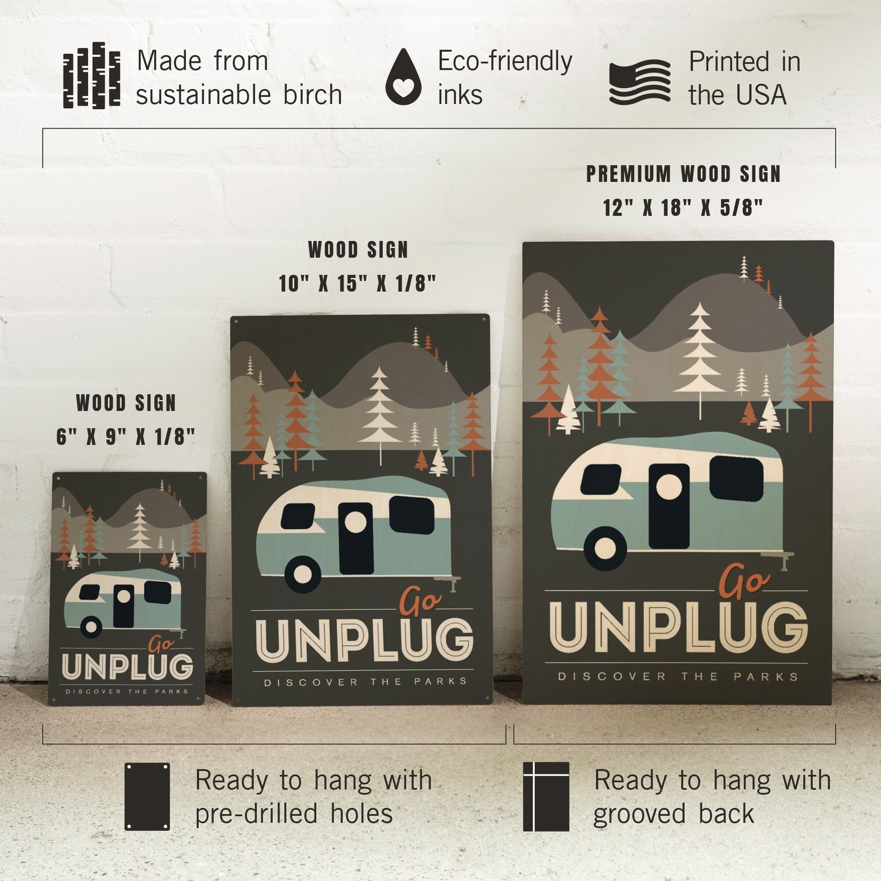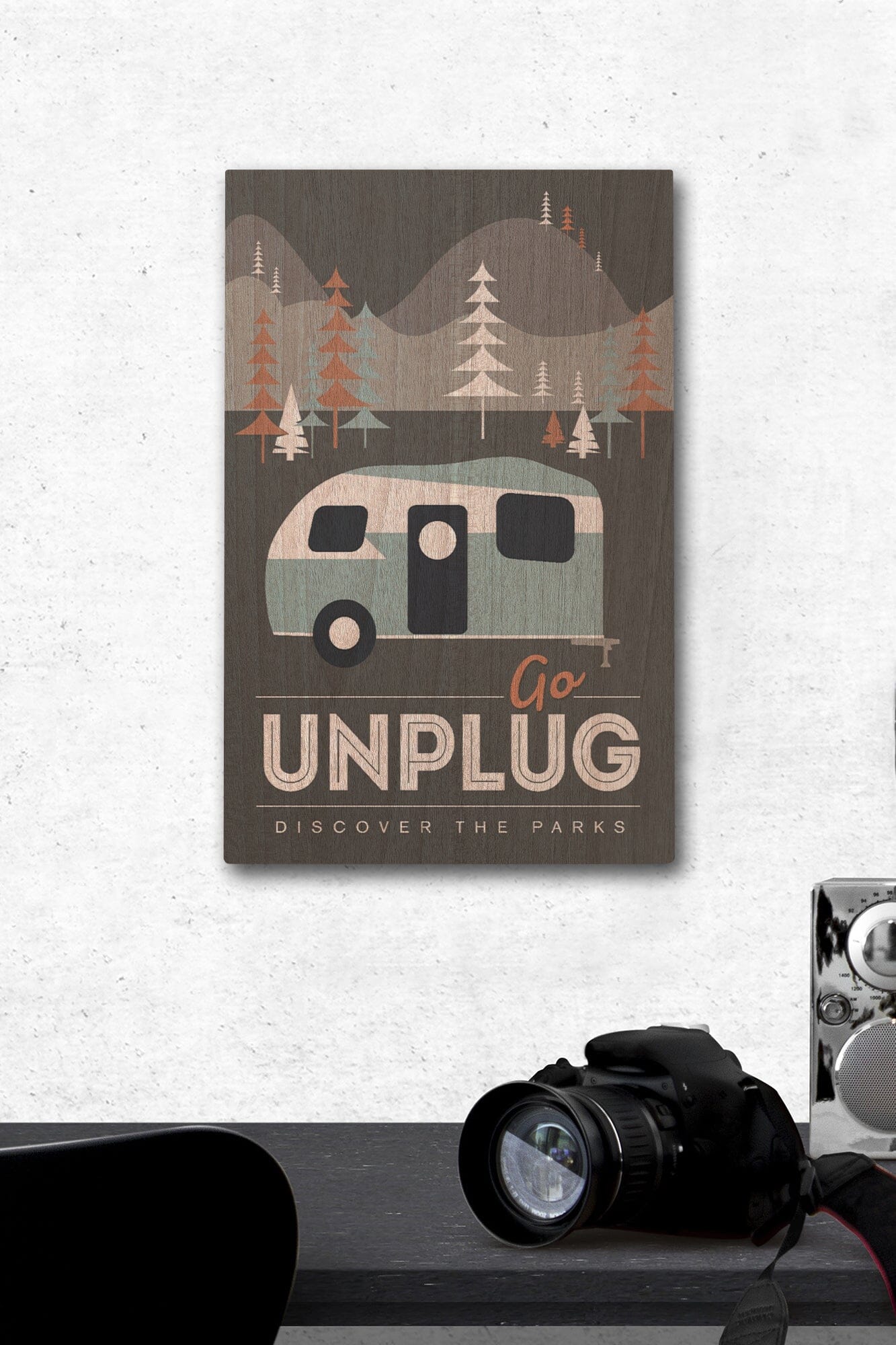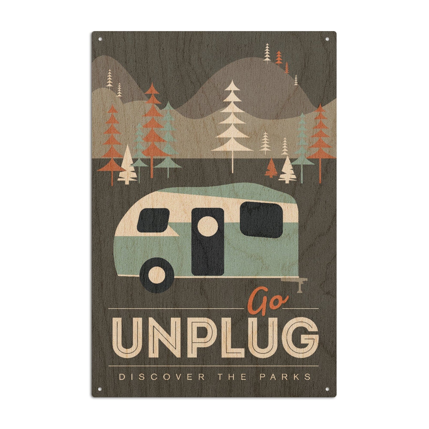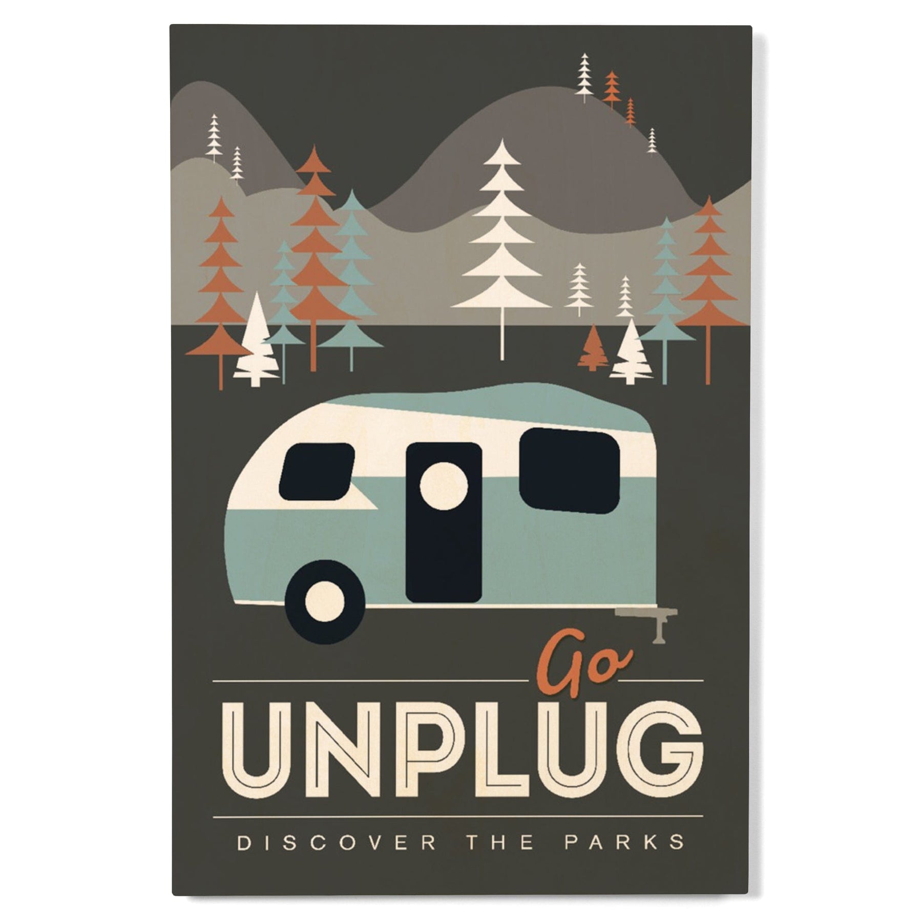 Go Unplug (Camper), Discover the Parks, Vector Style, Lantern Press Artwork, Wood Signs and Postcards