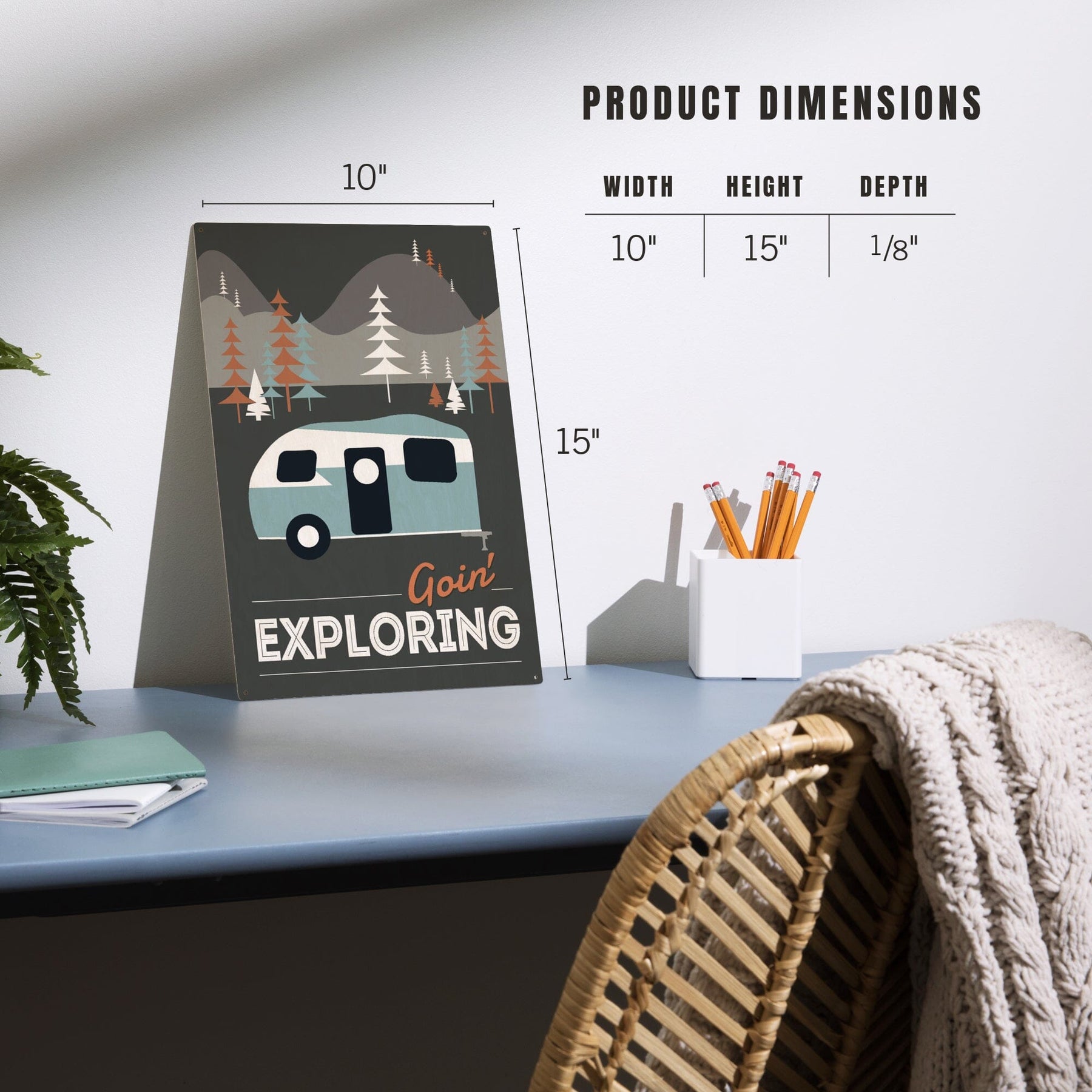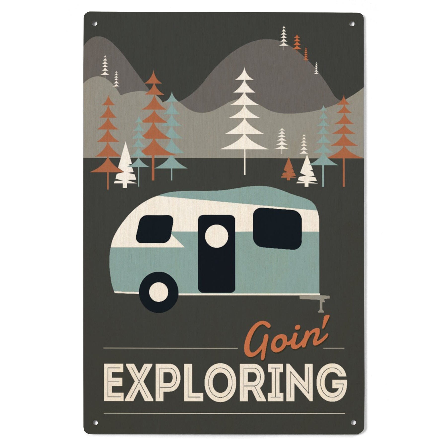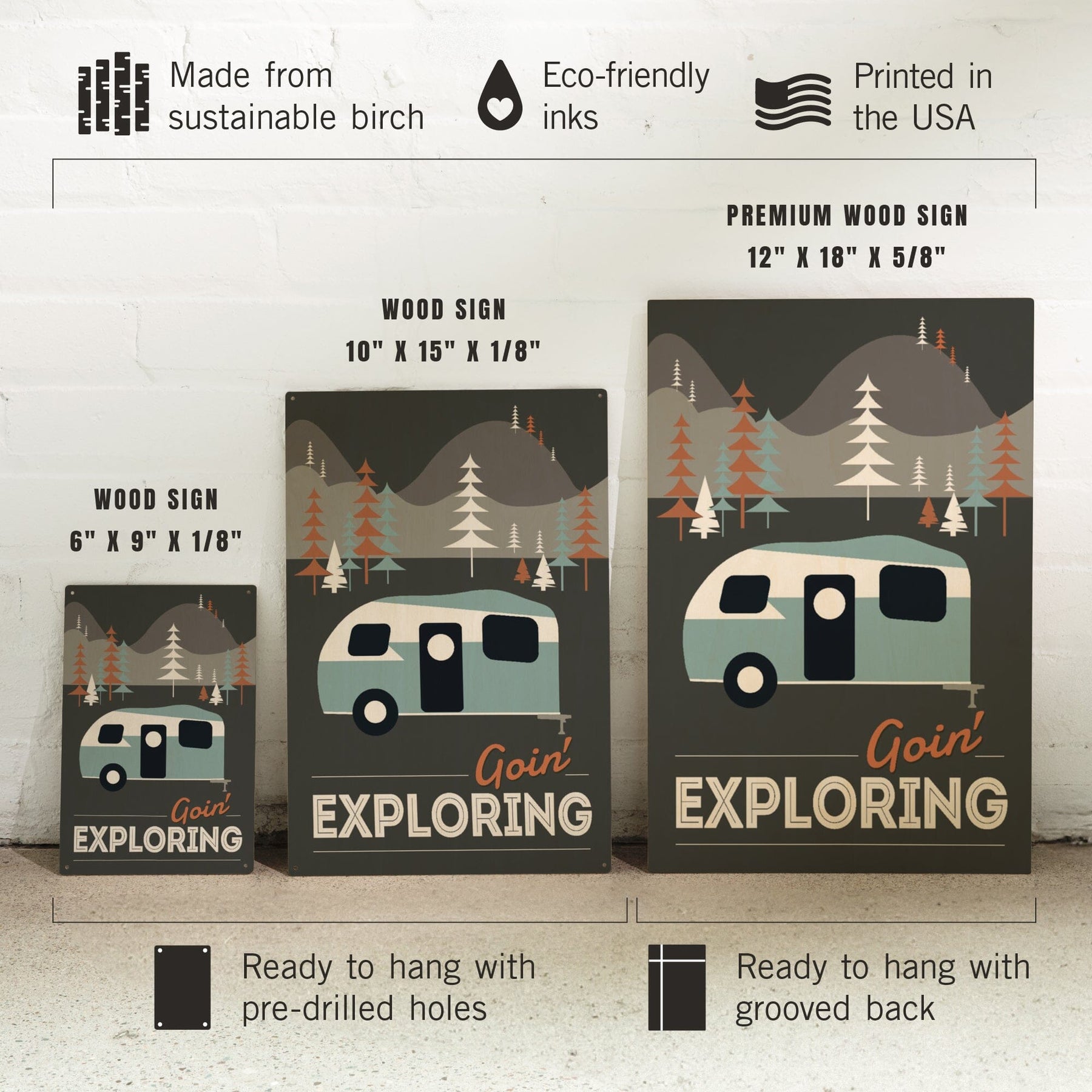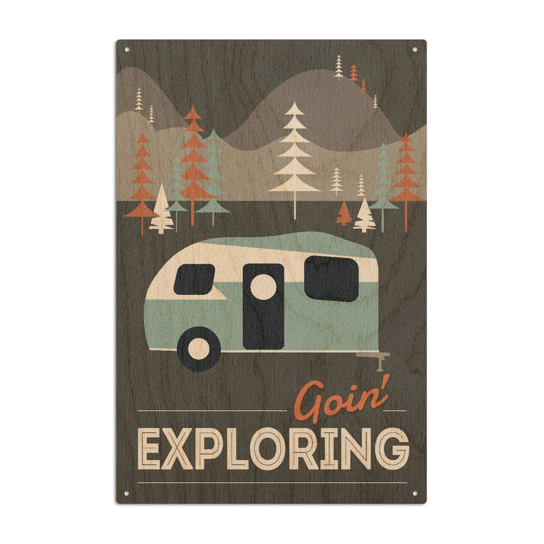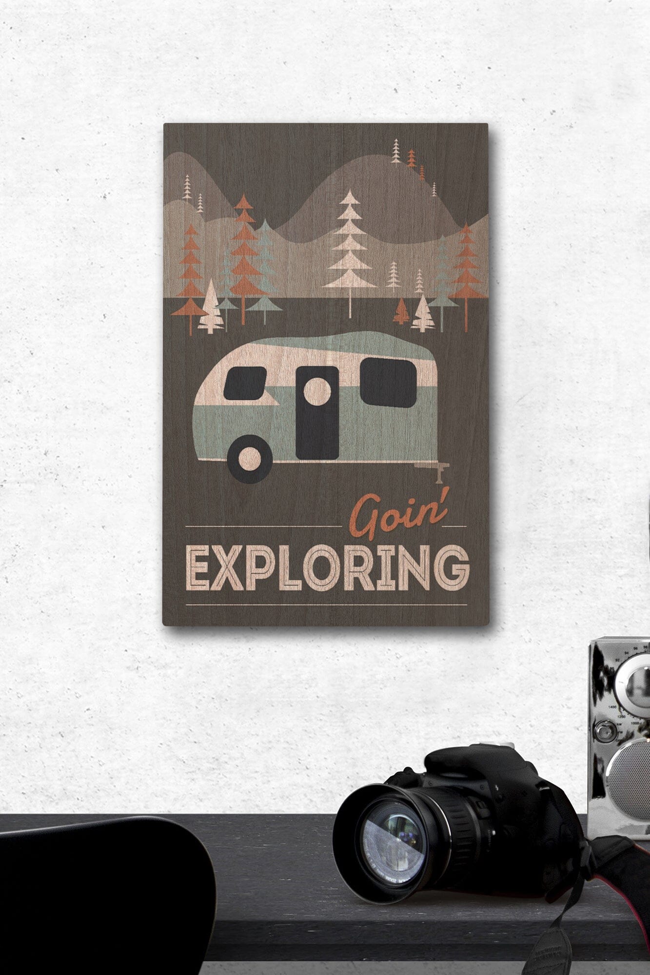 Goin' Exploring, Retro Camper, Lantern Press Artwork, Wood Signs and Postcards