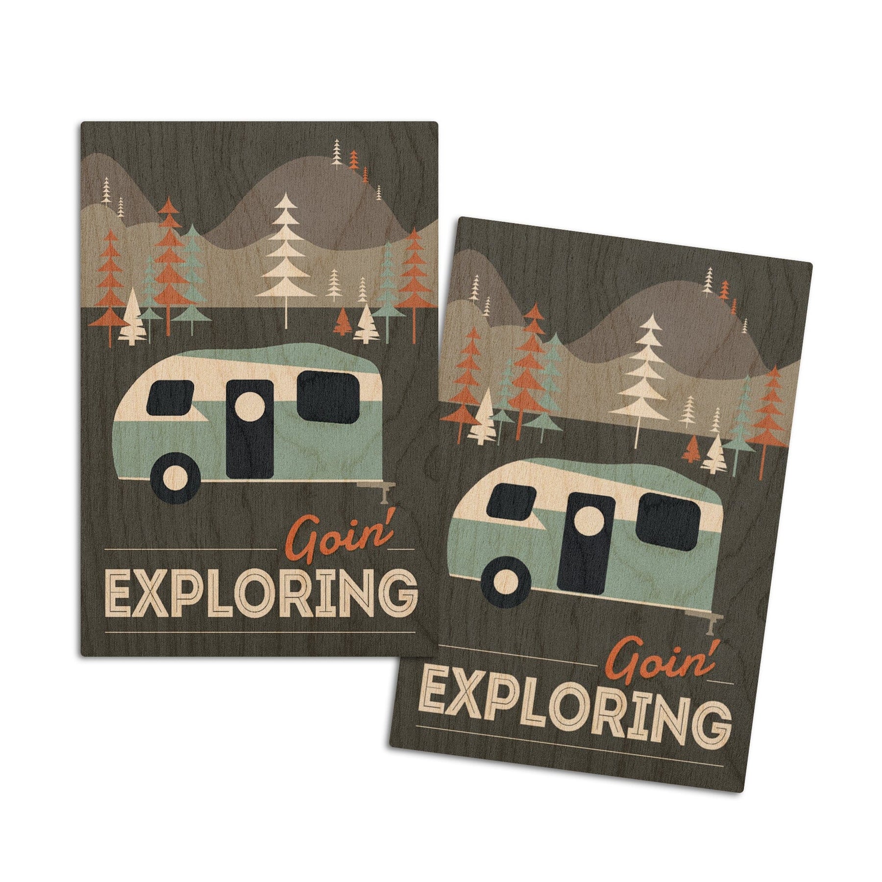 Goin' Exploring, Retro Camper, Lantern Press Artwork, Wood Signs and Postcards - Lantern Press