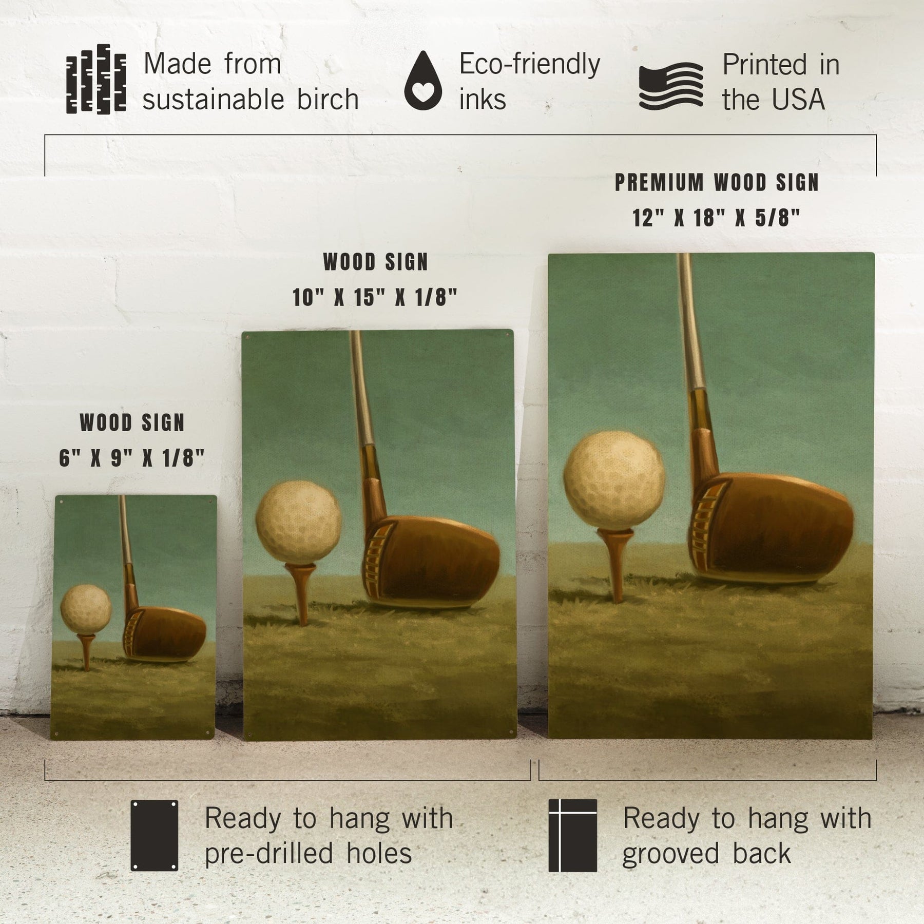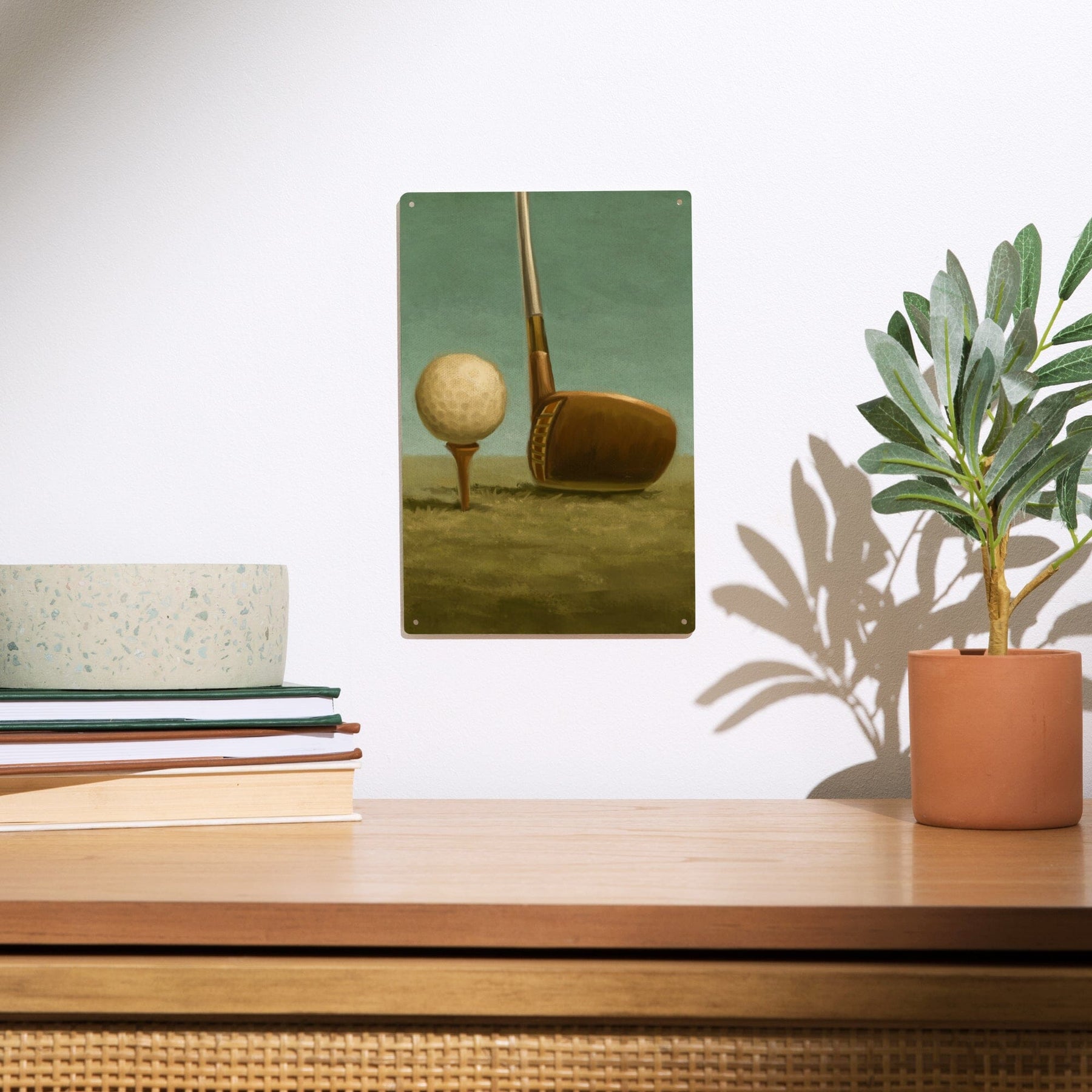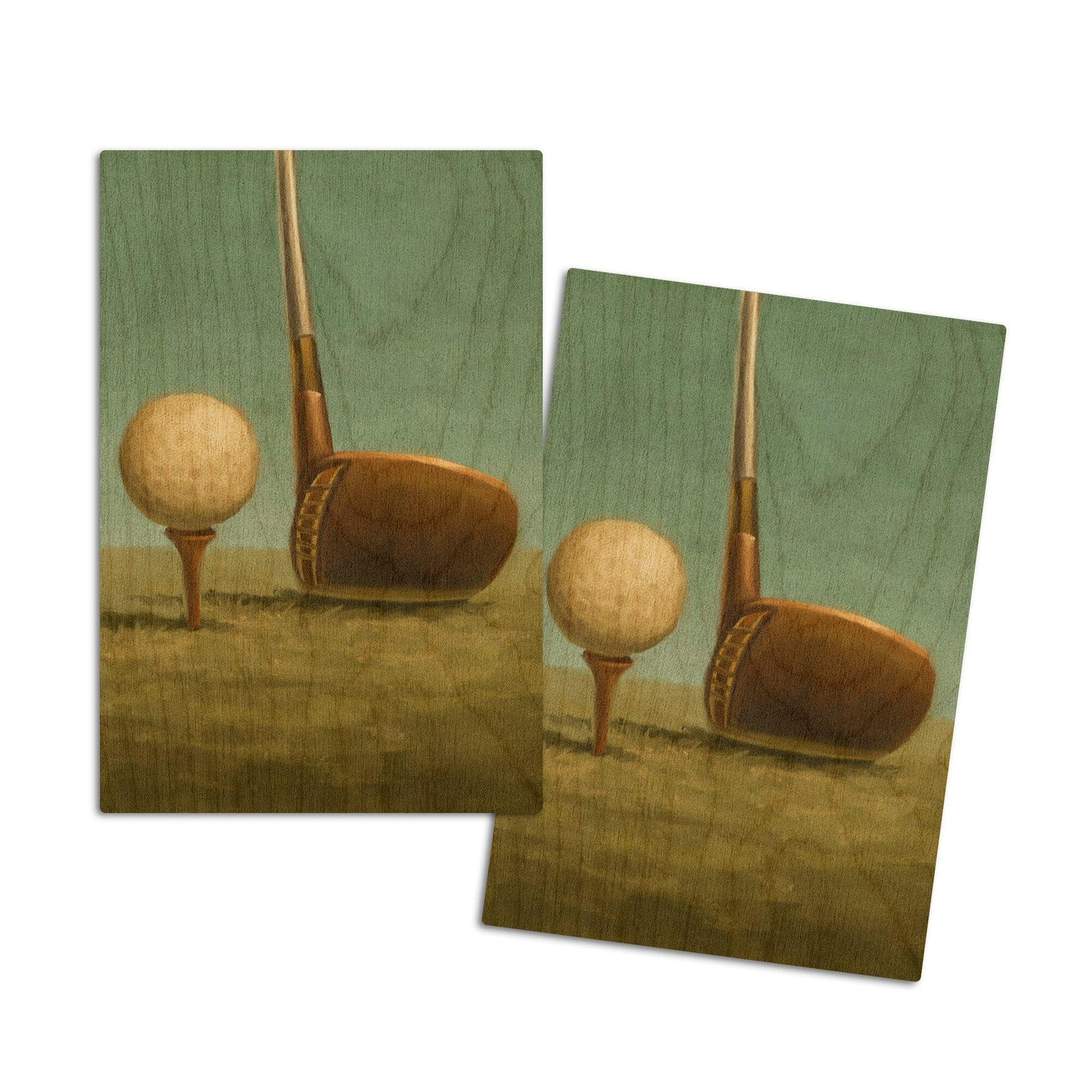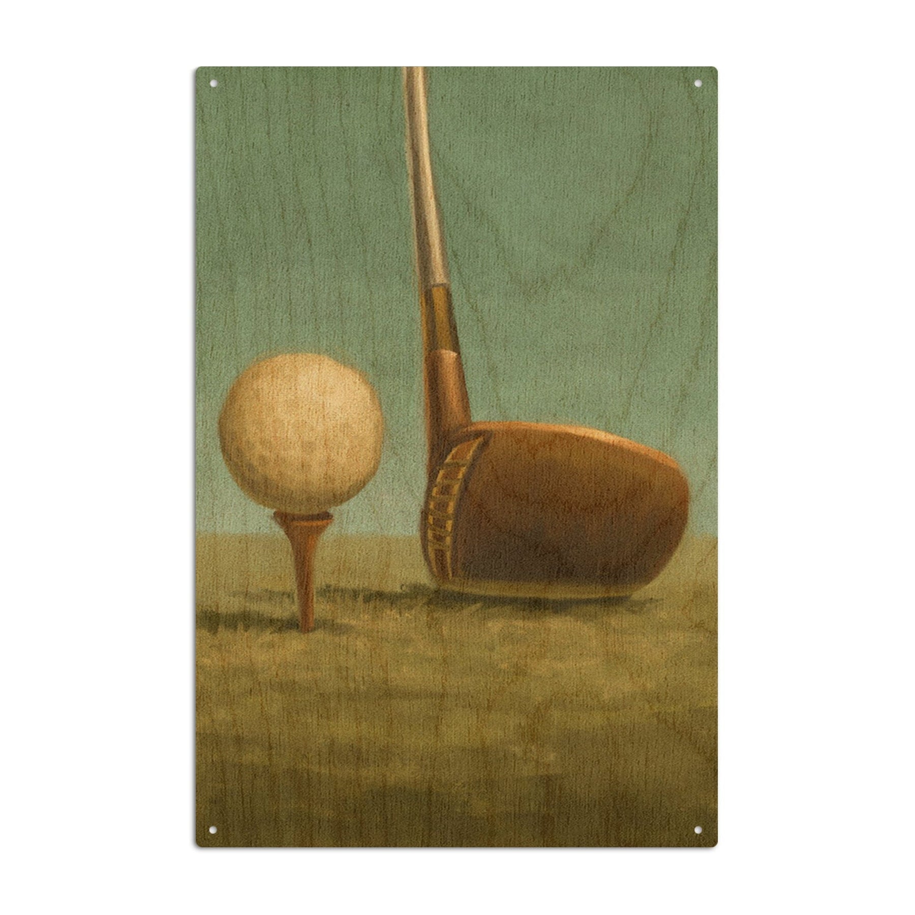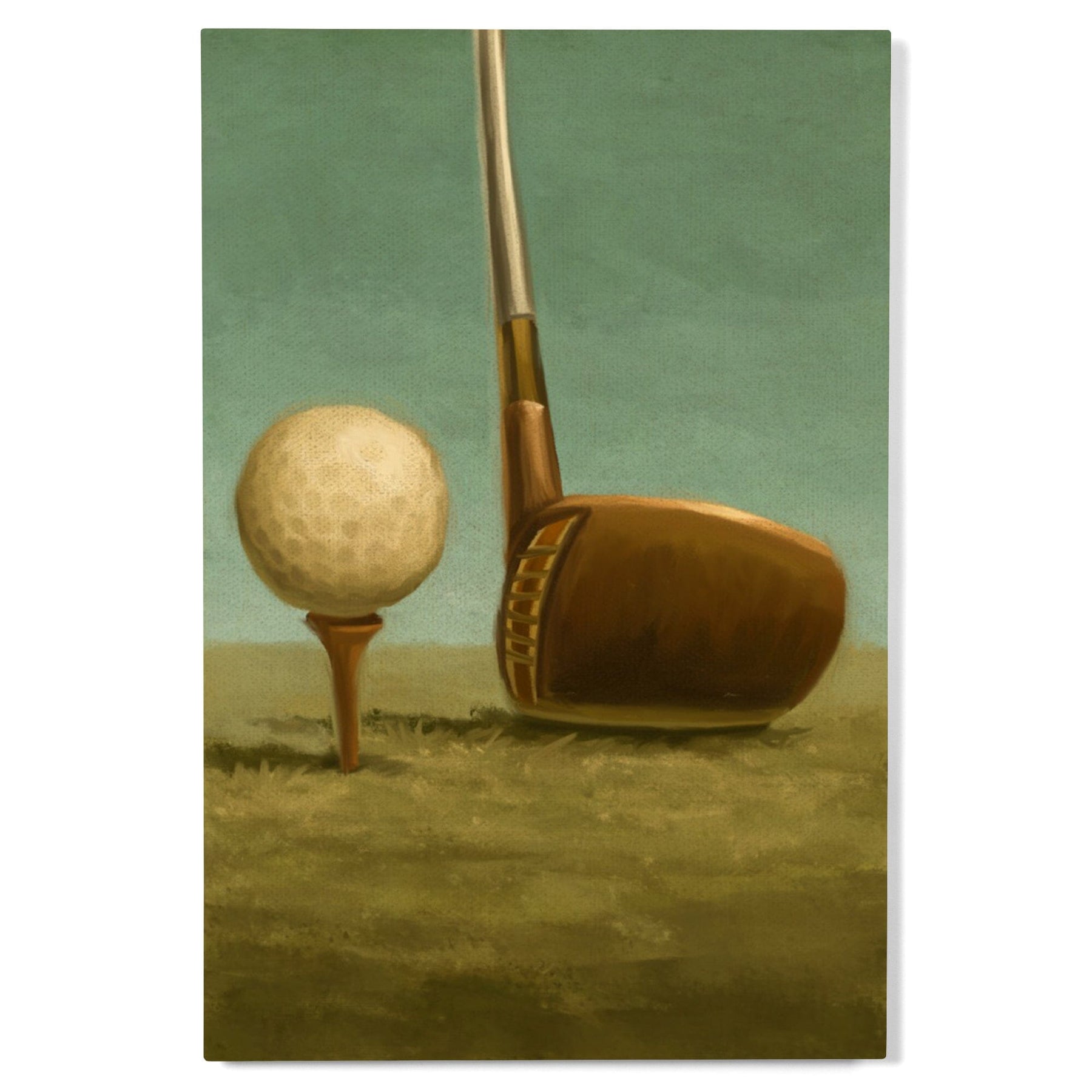 Golf, Tee & Club, Oil Painting, Lantern Press Artwork, Wood Signs and Postcards - Lantern Press