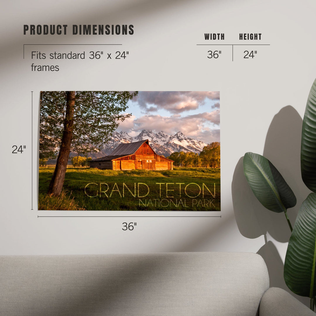 Grand Teton National Park, Wyoming, Barn and Tree, Art & Giclee Prints - Lantern Press