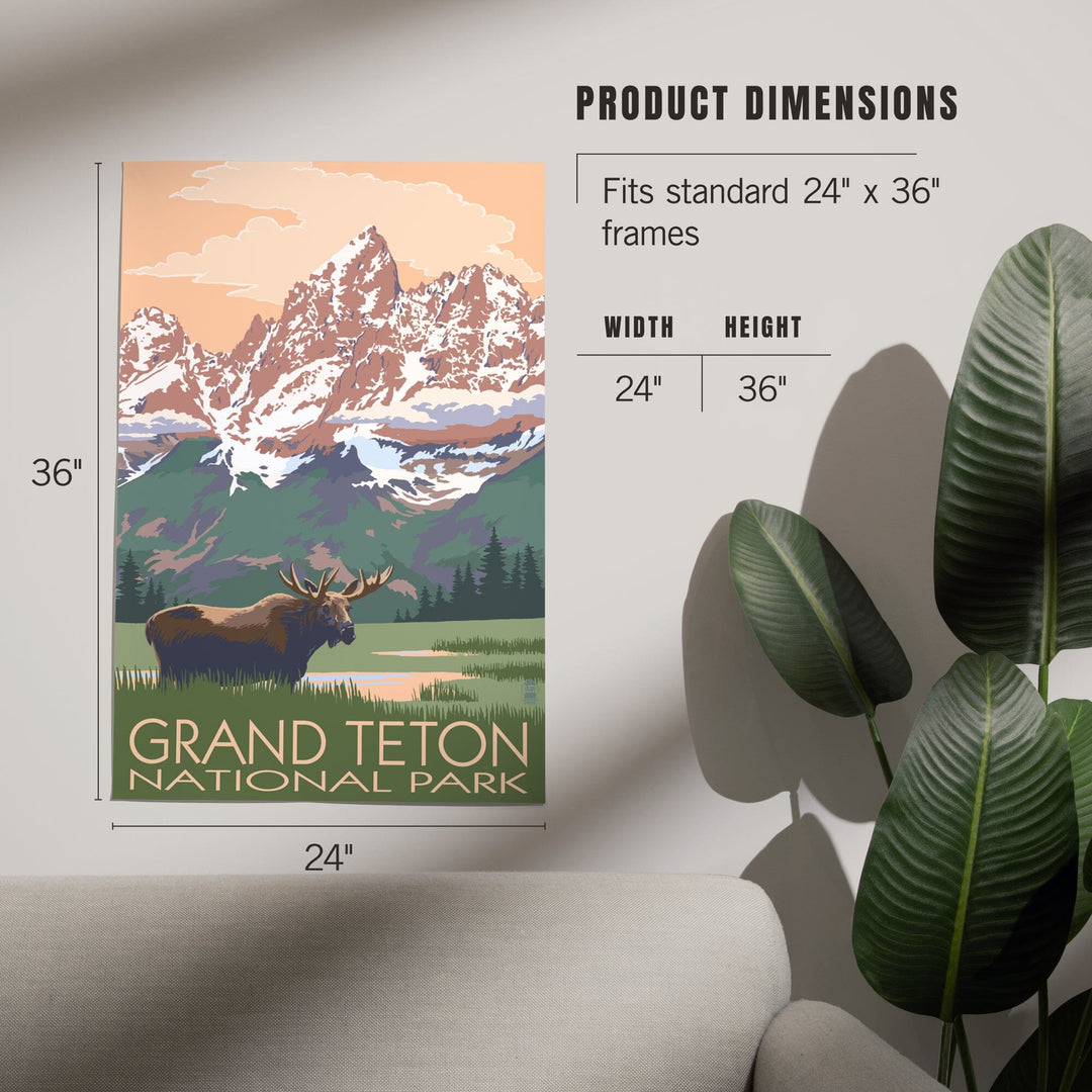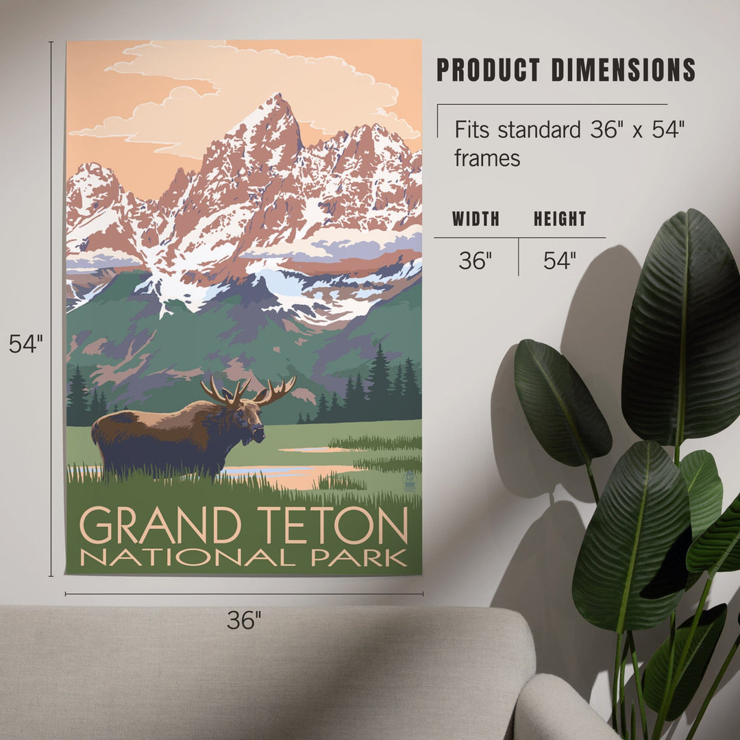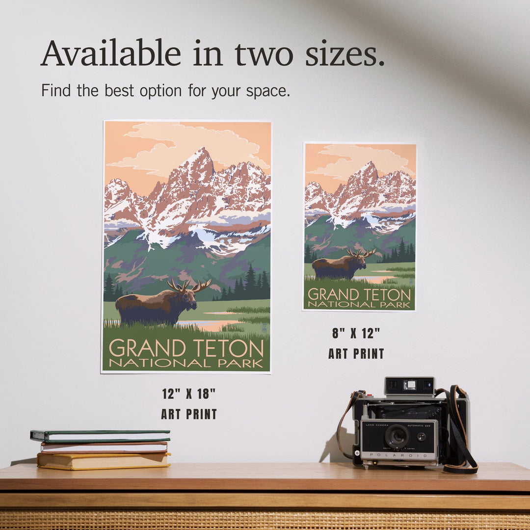 Grand Teton National Park, Wyoming, Moose and Mountains, Art & Giclee Prints - Lantern Press