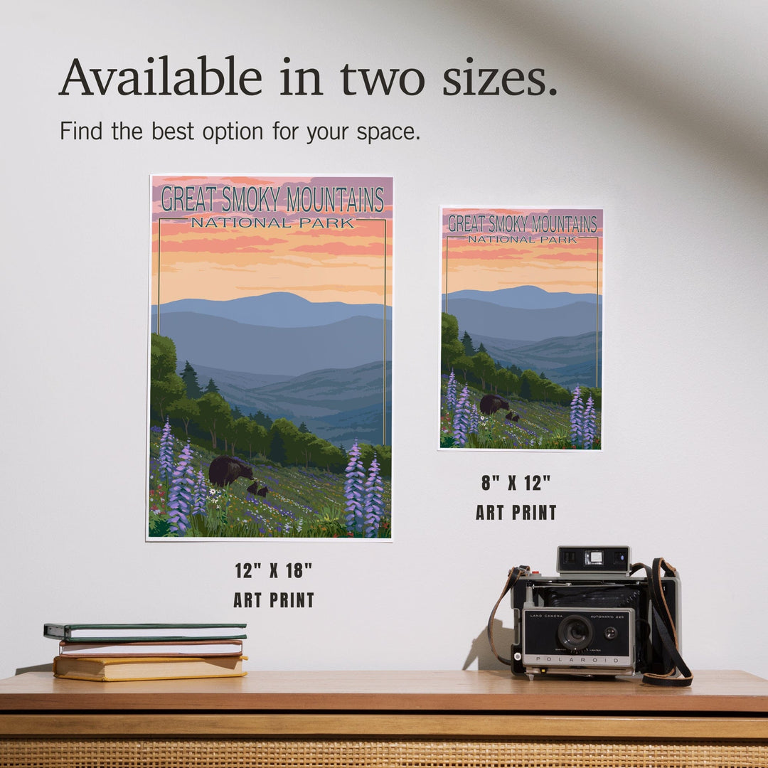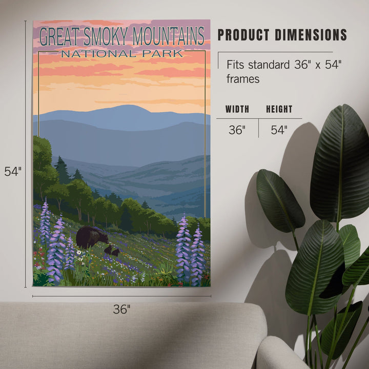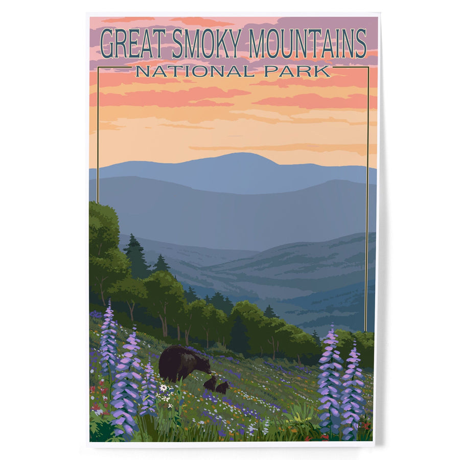 Great Smoky Mountains National Park, Bear and Spring Flowers, Art & Giclee Prints - Lantern Press