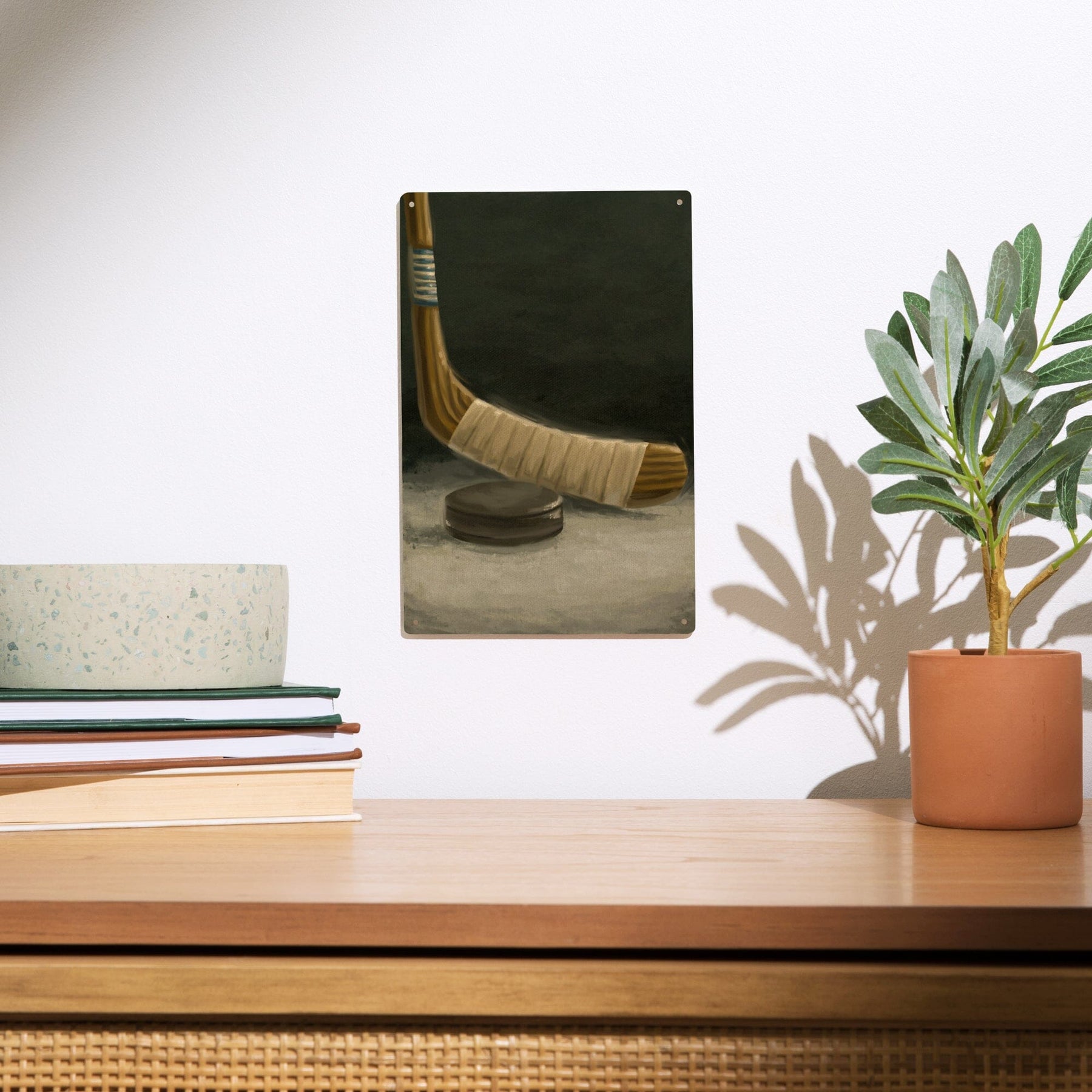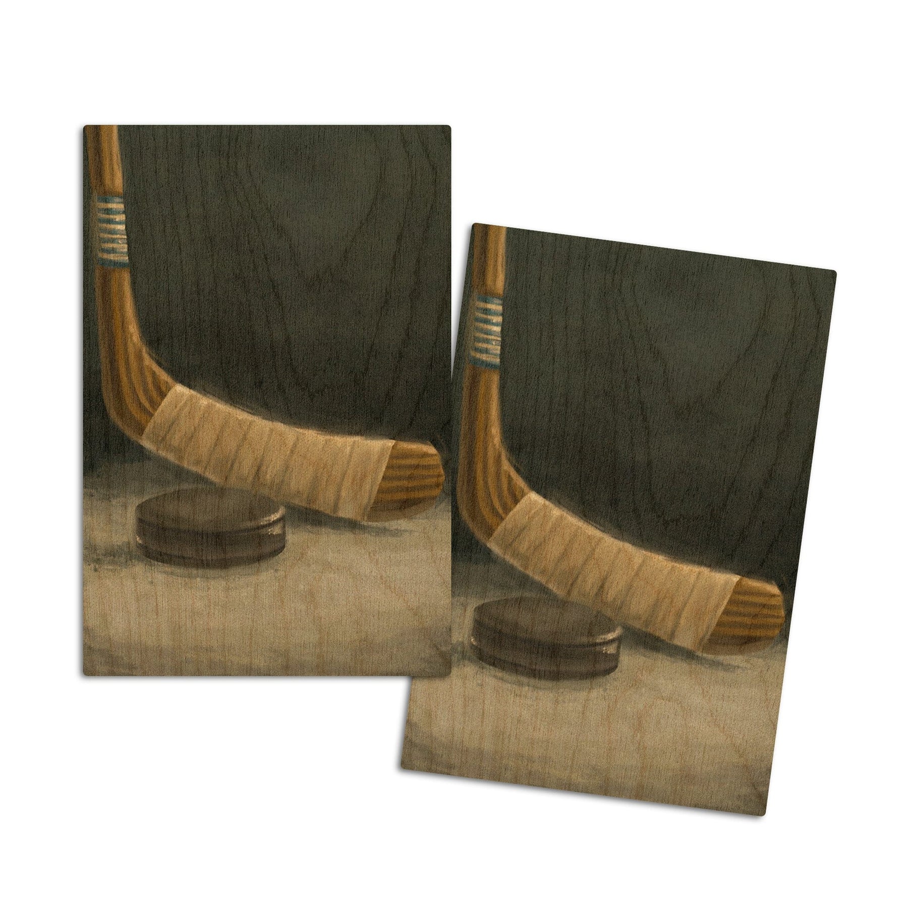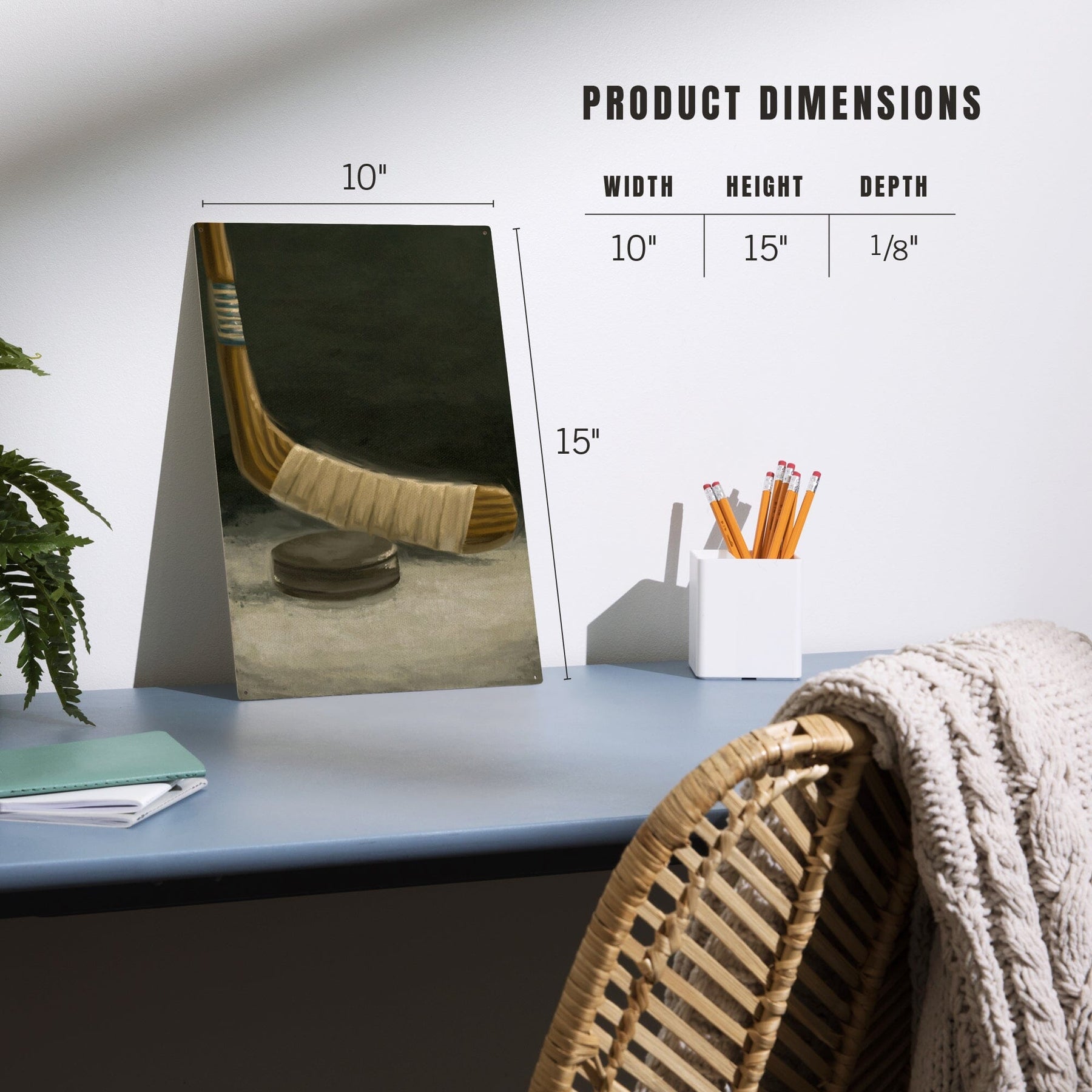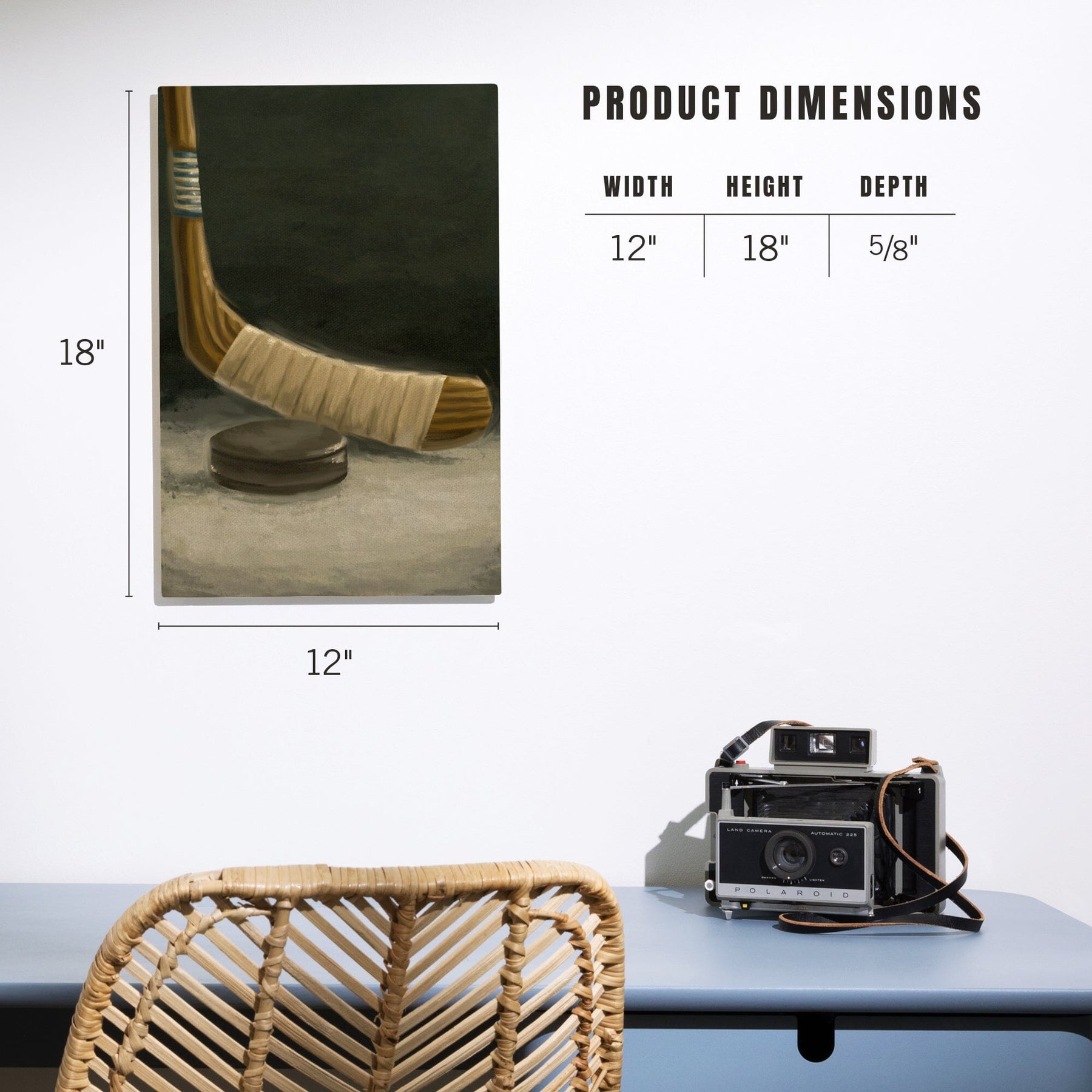 Hockey Stick & Puck, Oil Painting, Lantern Press Artwork, Wood Signs and Postcards