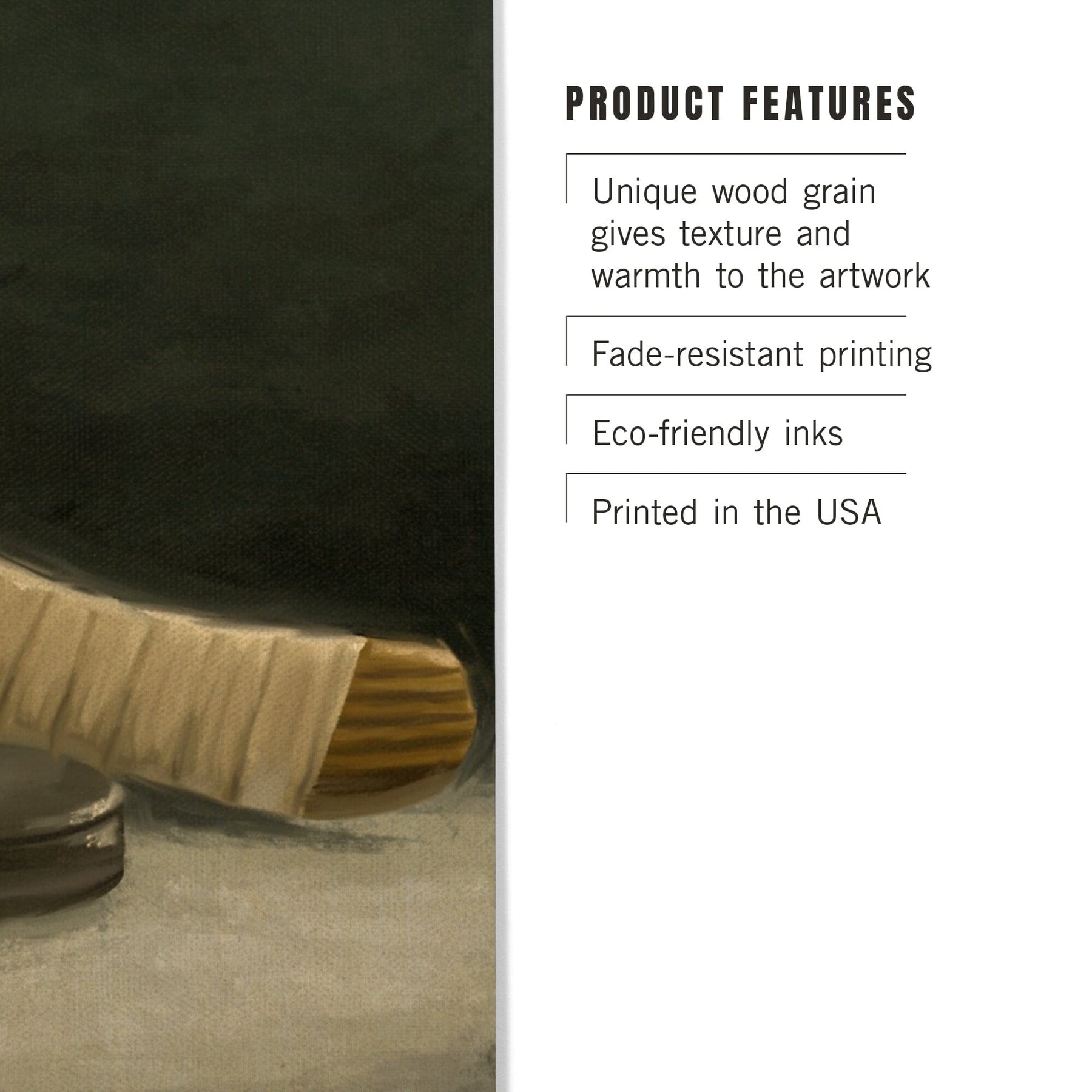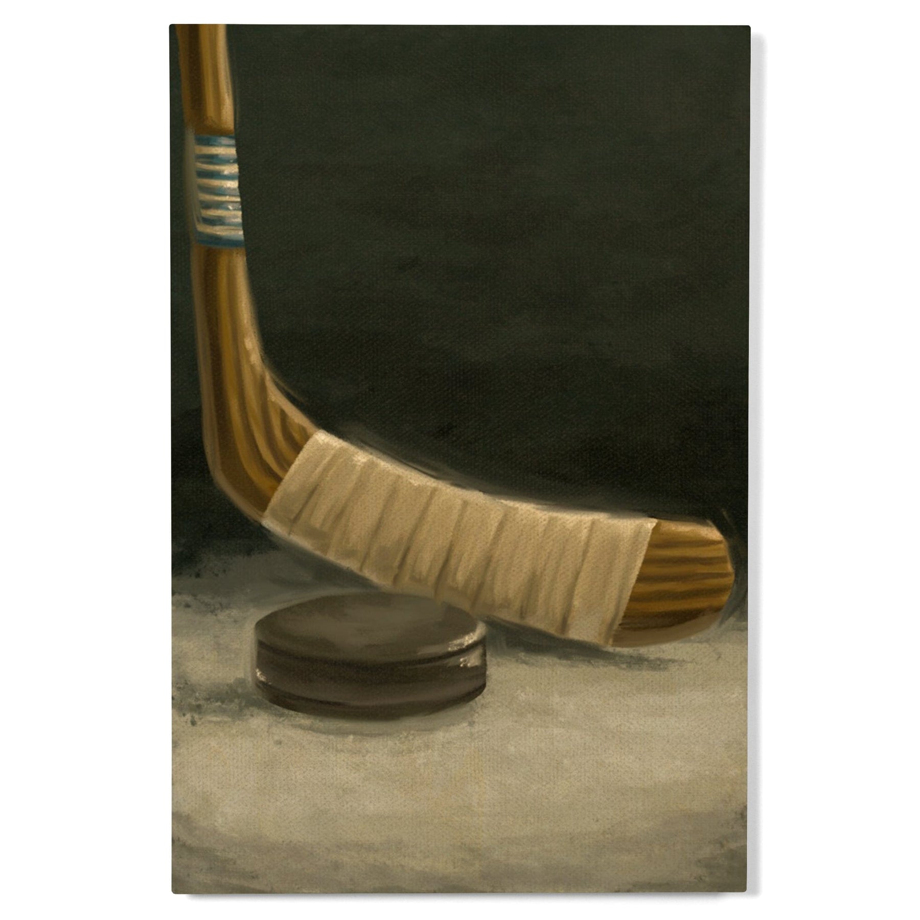 Hockey Stick & Puck, Oil Painting, Lantern Press Artwork, Wood Signs and Postcards - Lantern Press
