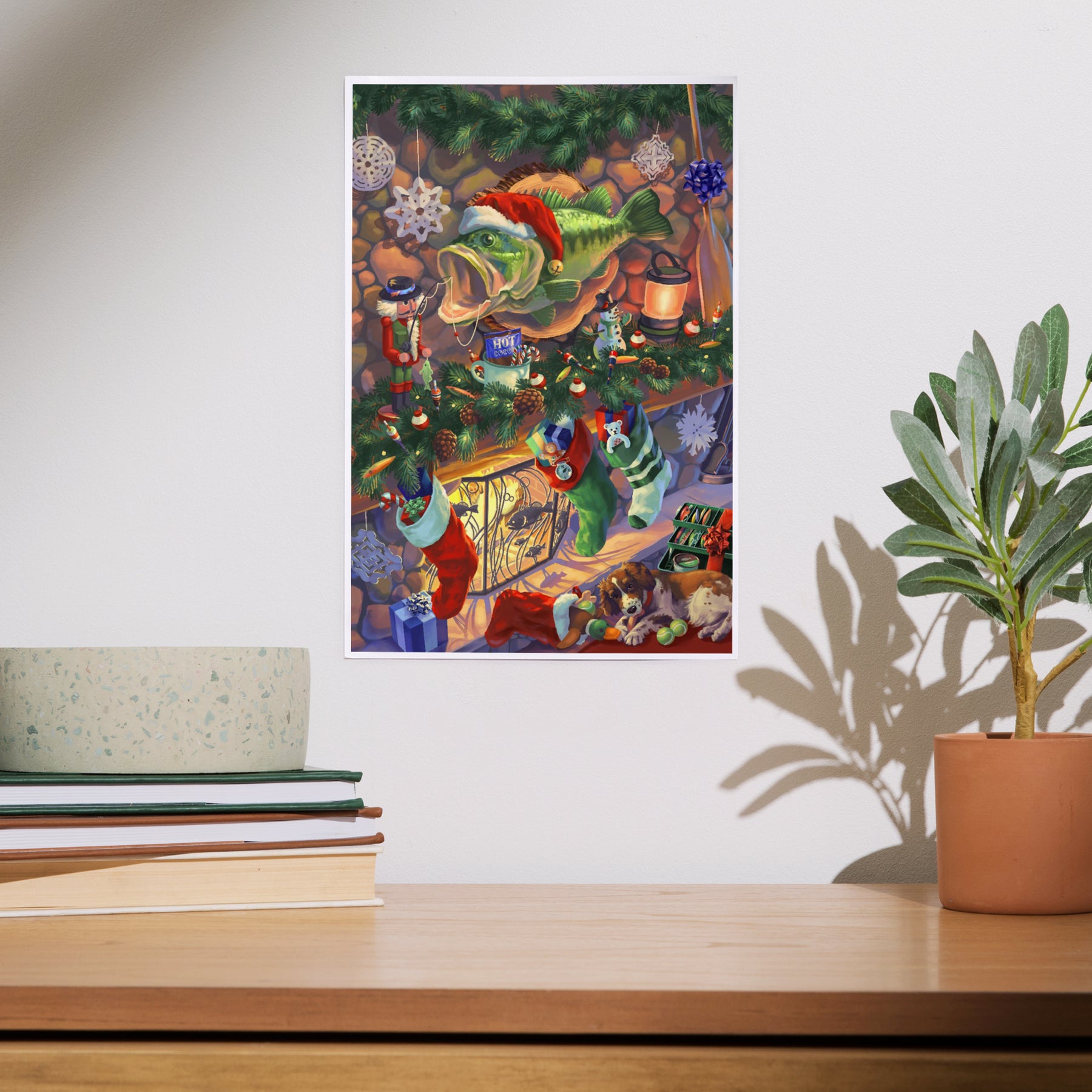 Hooked on Holidays, Oil Painting, Christmas Bass, Image Only, Art & Giclee Prints