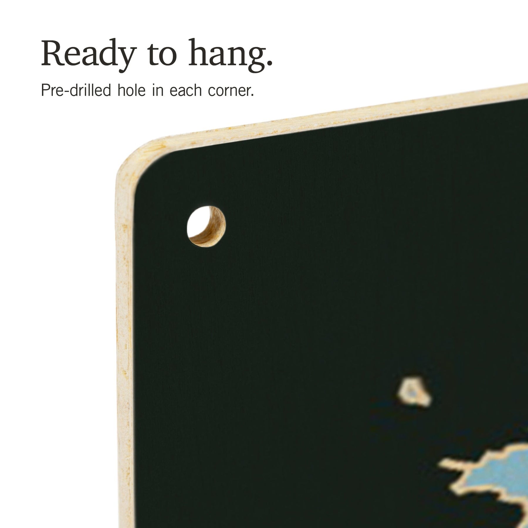 • Hole in each corner, ready to hang