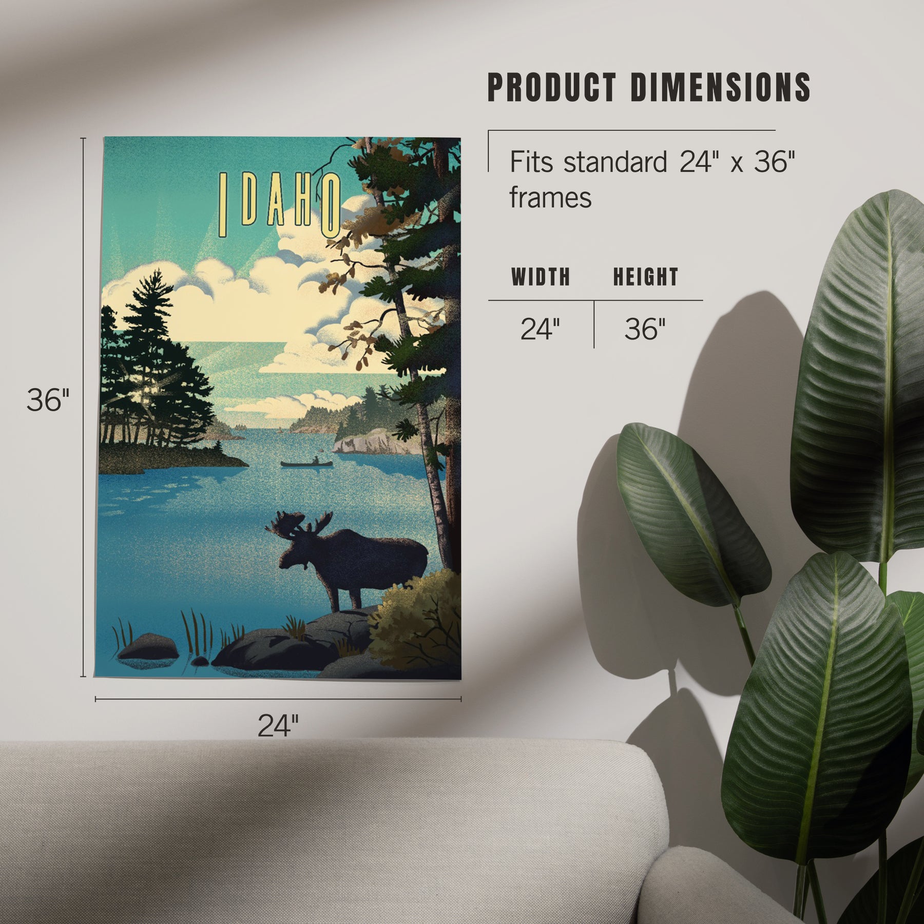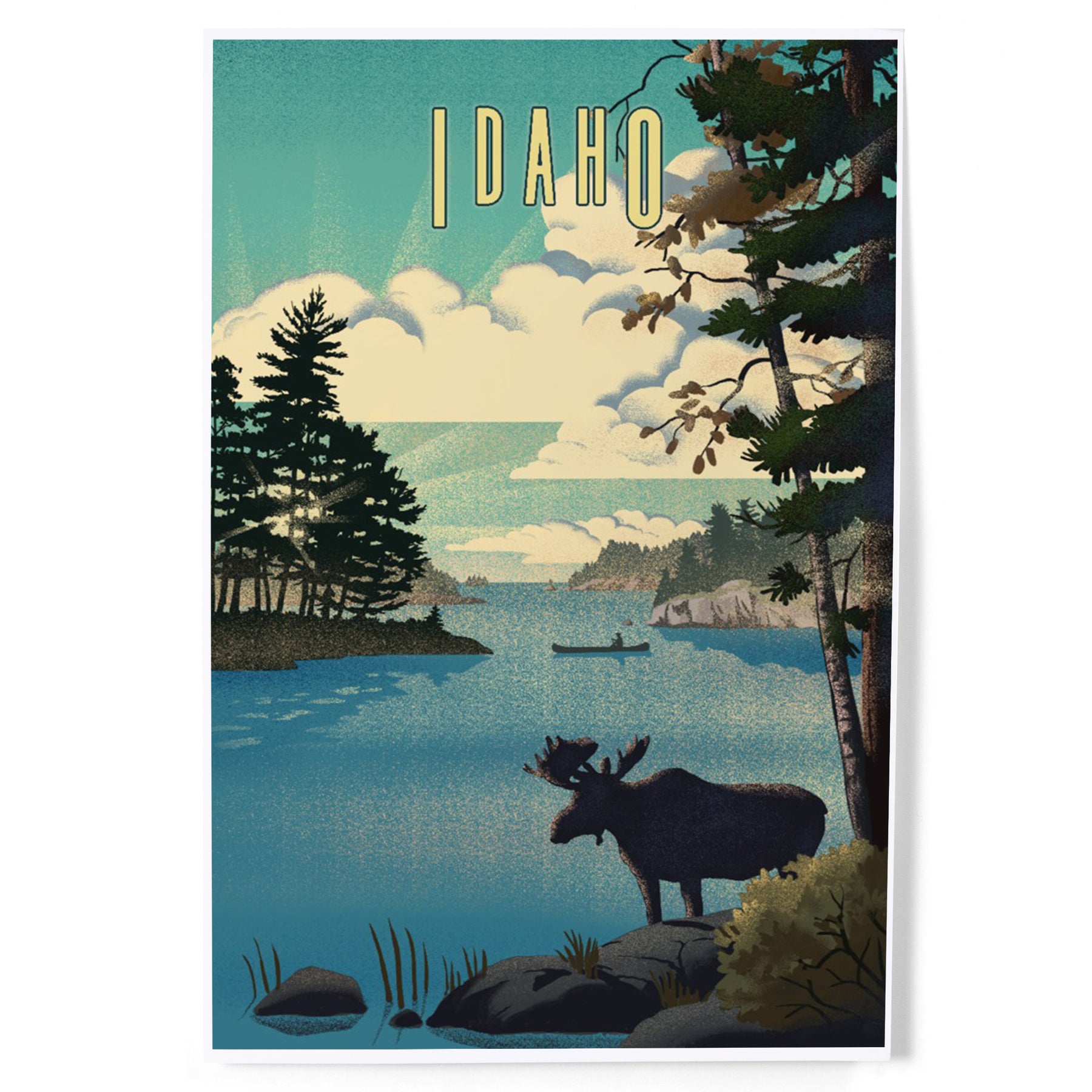 Idaho, Moose and Lake, Lithograph, Art & Giclee Prints Art Lantern Press