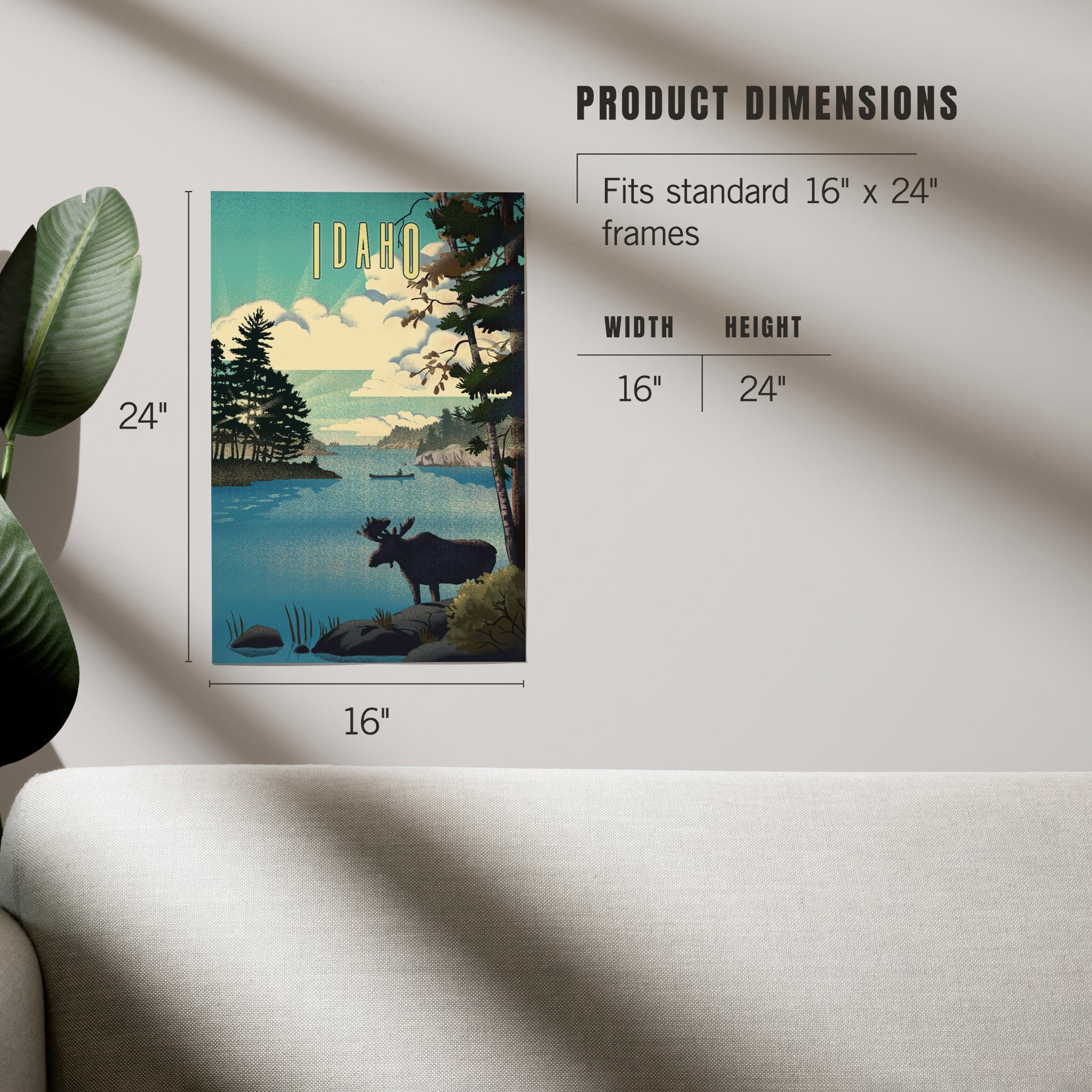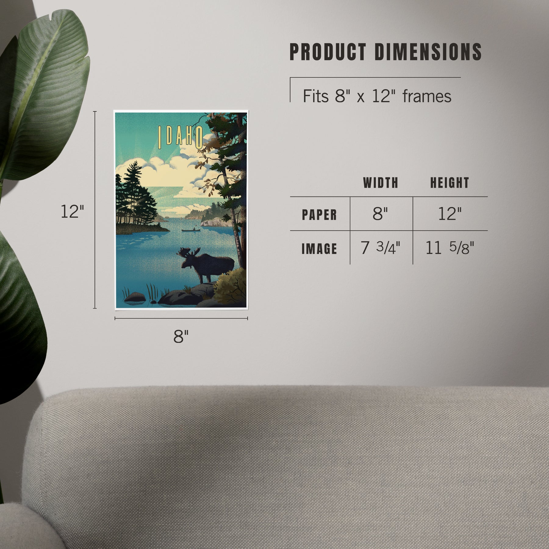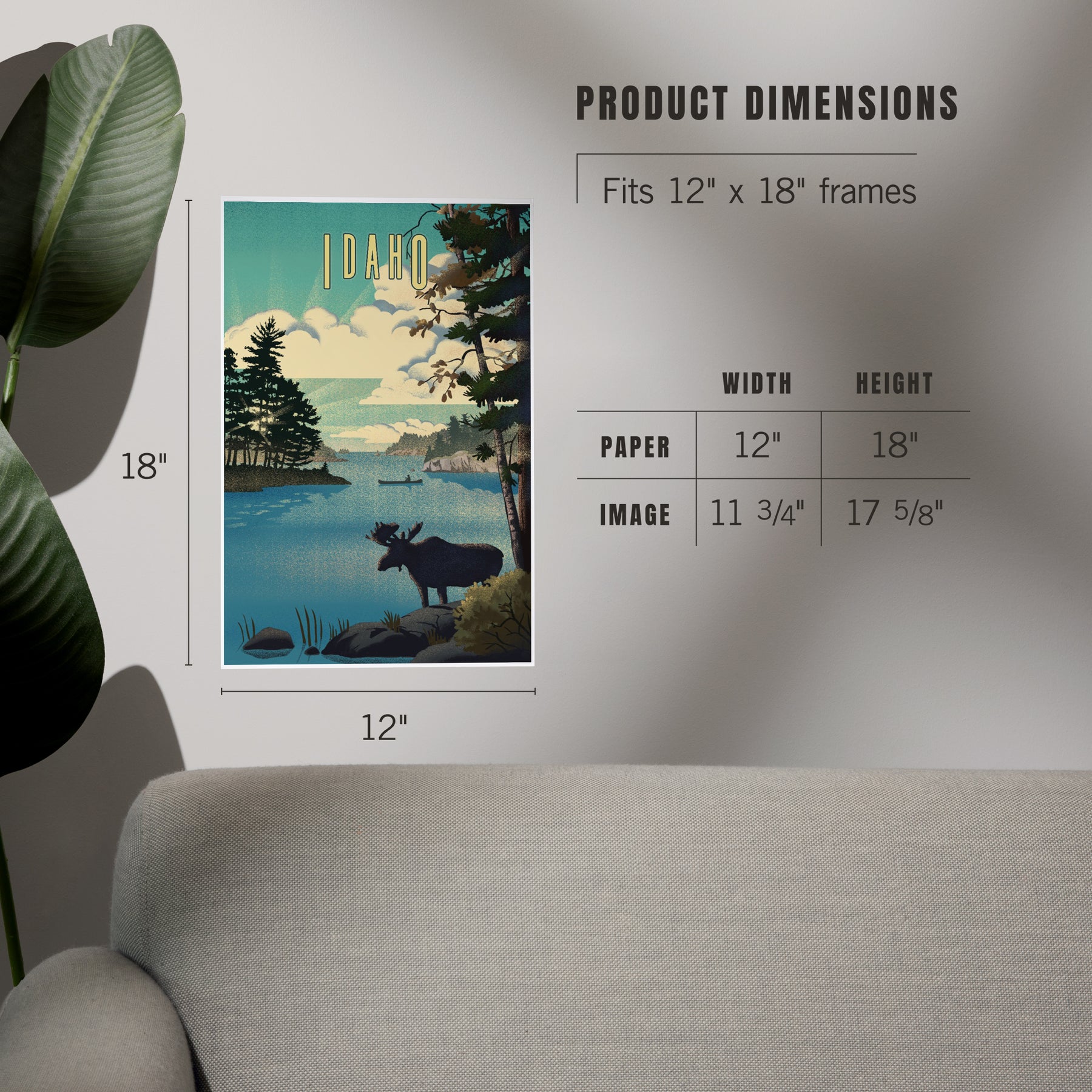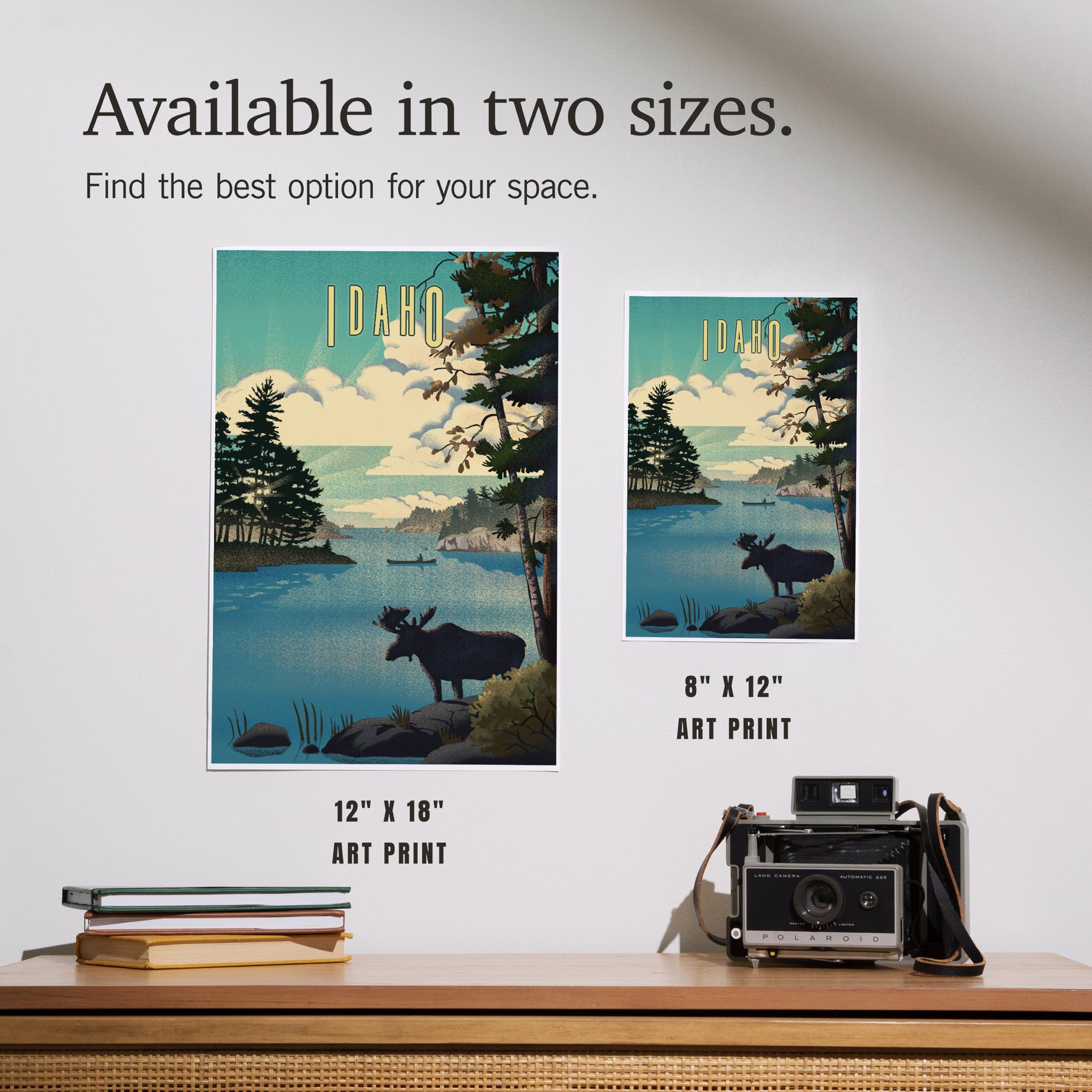 Idaho, Moose and Lake Lithograph, Art & Giclee Prints Art Lantern Press