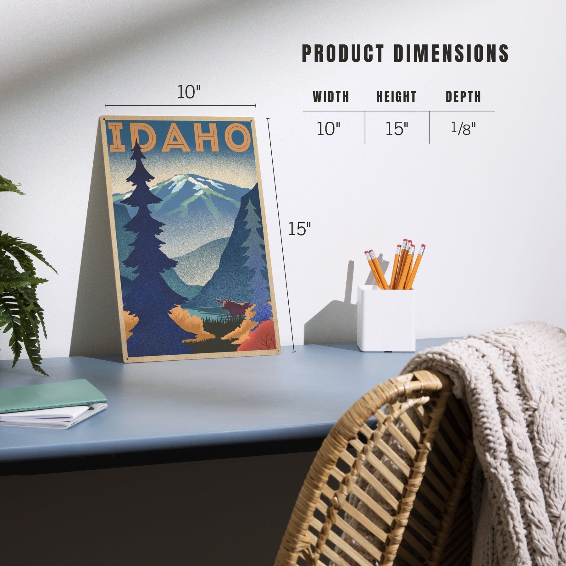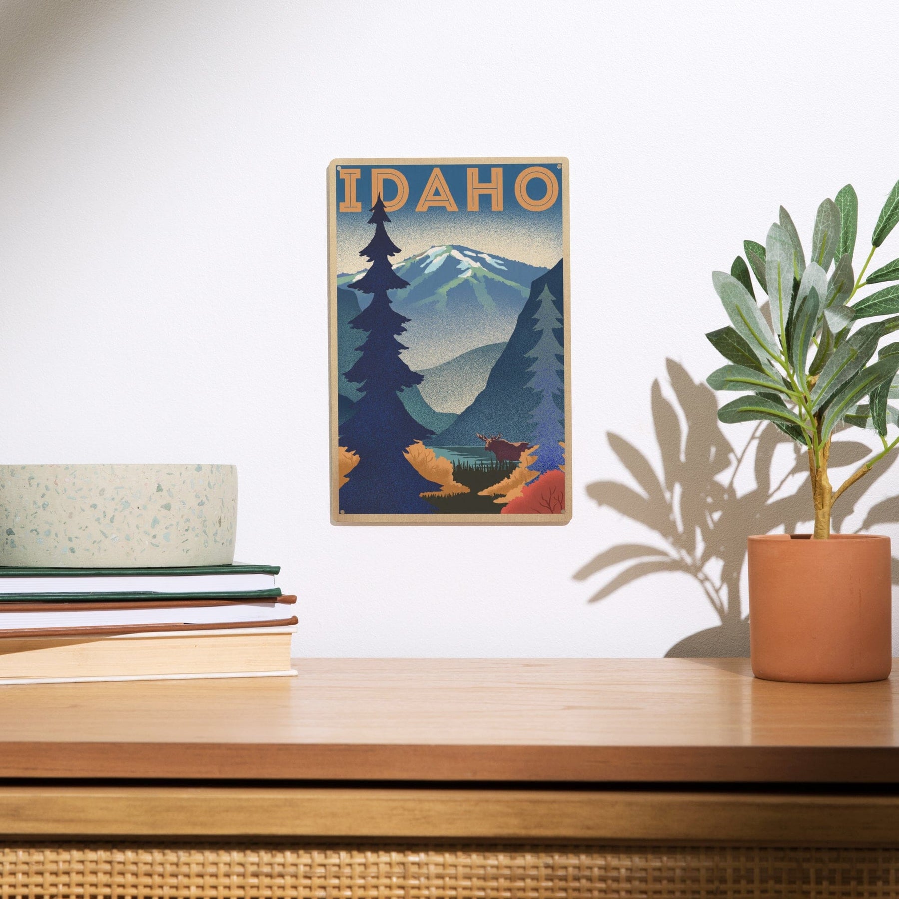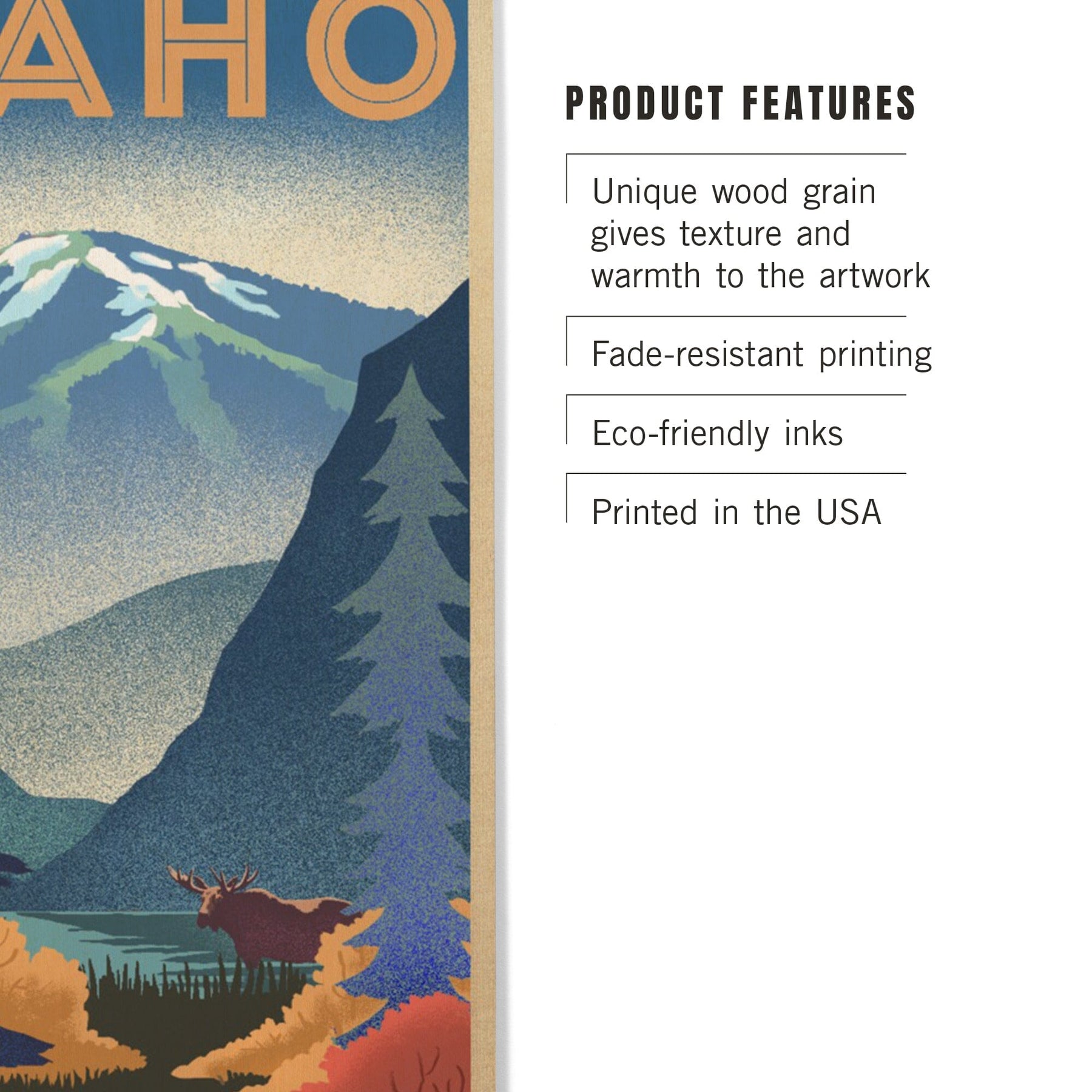 Idaho, Moose & Mountain, Lithograph, Lantern Press Artwork, Wood Signs and Postcards - Lantern Press